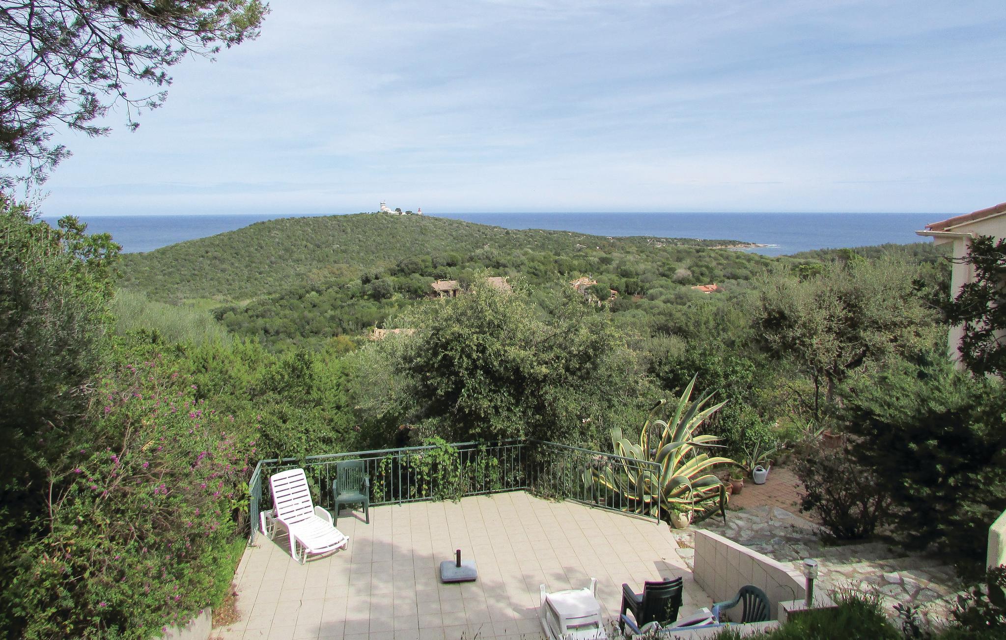 Dette feriebolig er omgivet af den korsikanske maki, og er den ene halvdel af en villa, som ligger i et privat indhegnet boligkompleks. Århundredgamle grønne egetræer kaster en behagelig skygge over de store terrasse, og der venter en fri udsigt til havet og det storslåede fyrtårn La Chiappa. De tre soveværelser ligger ud til den samme side som terrassen, og fra det lille soveværelse øverst er der en vidunderlig udsigt til havet. Kun få minutter herfra ligger de paradisiske, populære strande La Chiappa, Palombaggia, Rondinara og Santa Giulia. Deres turkisblå vand og hvide sand opfylder jeres hede feriedrømme. Få minutters kørsel herfra ligger Port Vecchio med sin havn og flere butikker. Til en aktiv ferie kan I finde forskellige vandsportsaktiviteter langs strandene, og hvis I bare vil slappe af, så kan I leje en solseng. Få minutters kørsel herfra venter Port Vecchio med sin havn og flere butikker. Helt mod syd finder I Bonifacio med sit stræde, der er erklæret til verdensarv af UNESCO, hvis høje kalkstensklipper er en sjælden og overvældende seværdighed.