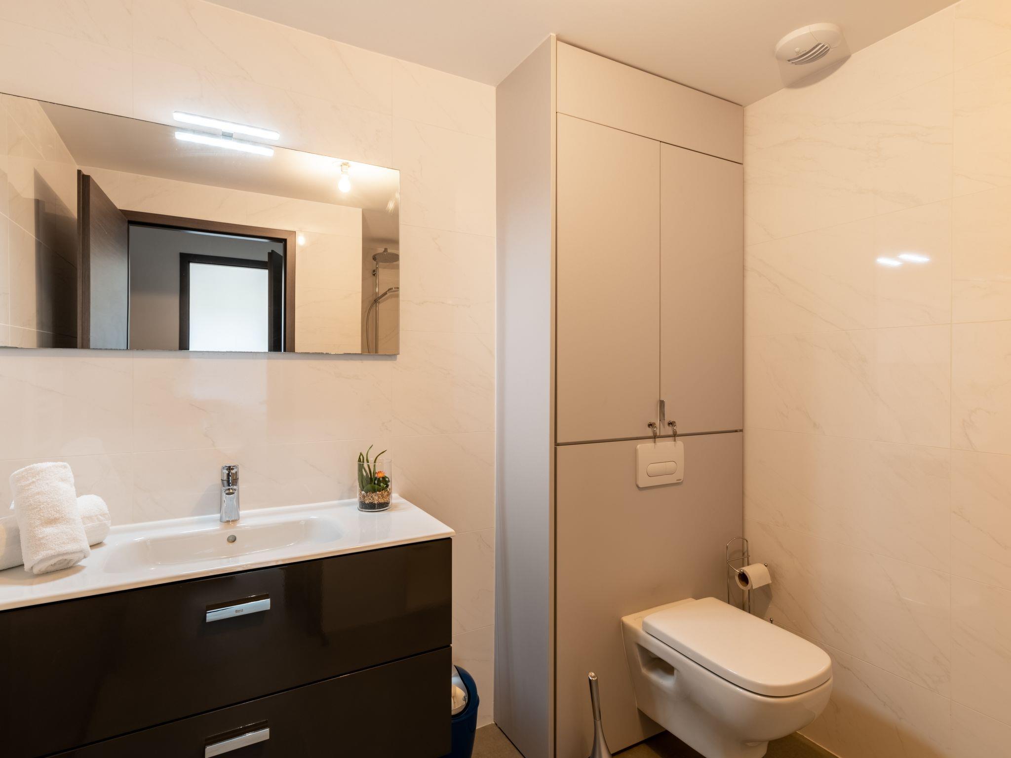 2-room apartment 51 m2 on 2nd floor. Very beautiful and modern furnishings: living/dining room with 1 double sofabed (140 cm, length 190 cm), TV (flat screen). Exit to the terrace. 1 room with 1 french bed (160 cm, length 200 cm). Open kitchen (4 hot plates, oven, dishwasher, toaster, kettle, microwave, freezer, electric coffee machine). Shower/WC. Electric heating, air-conditioning. Terrace 9 m2. Terrace furniture. Facilities: washing machine. Internet (WiFi, free). Please note: suitable for families. Non-smokers only. Smoke alarm. 2A24700038341