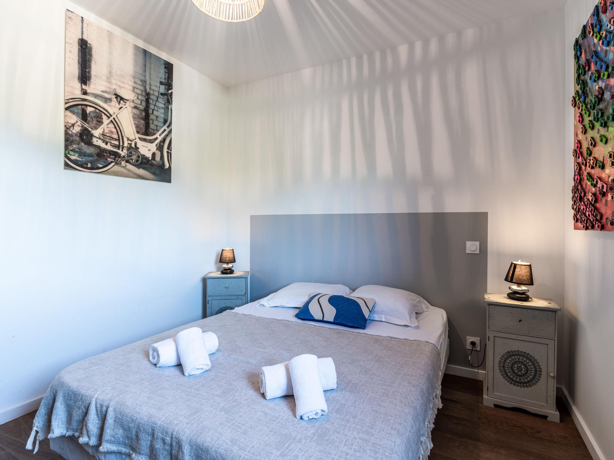3-room apartment 58 m2 on 1st floor. Comfortable and tasteful furnishings: living/dining room with 1 double sofabed (140 cm, length 190 cm), TV (flat screen). Exit to the balcony. 1 room with 1 french bed (160 cm, length 190 cm), TV (flat screen). 1 room with 1 french bed (140 cm, length 190 cm). Open kitchen (4 hot plates, oven, dishwasher, toaster, kettle, microwave, freezer, electric coffee machine). Bath/WC. Electric heating, air-conditioning. Balcony 12 m2. Balcony furniture. Facilities: washing machine. Internet (WiFi, free). Please note: apartment courtyard side. Non-smokers only. Smoke alarm. 2A24700020027
