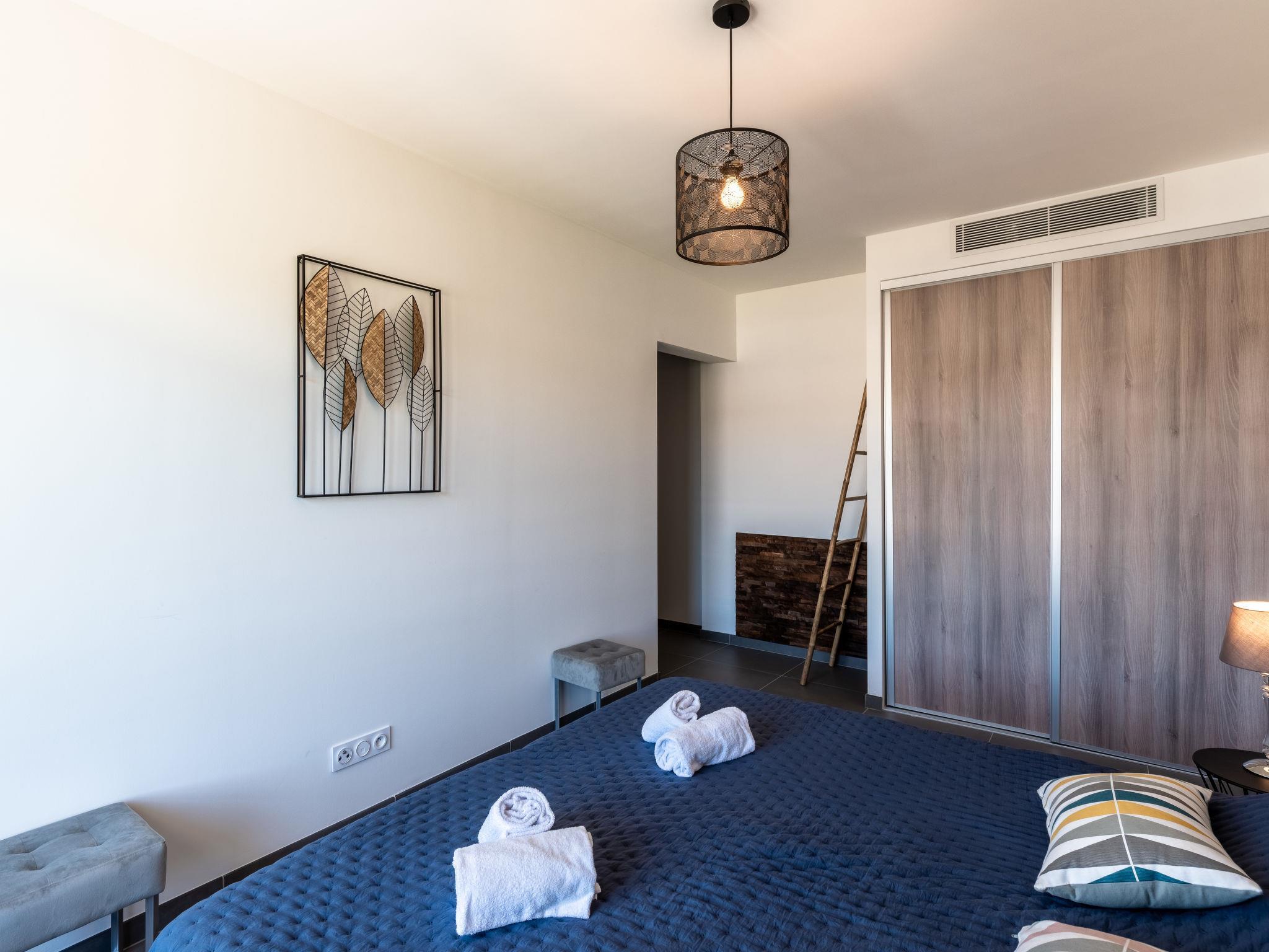 5-room apartment 137 m2 on 3rd floor. Very beautiful and modern furnishings: living/dining room with TV (flat screen). Exit to the terrace. 1 room with 1 french bed (160 cm, length 200 cm), shower. Exit to the terrace. 1 room with 1 french bed (160 cm, length 200 cm), shower/WC. Exit to the terrace. 1 room with 2 beds (90 cm, length 190 cm). 1 room with 2 beds (90 cm, length 200 cm). Open kitchen (oven, dishwasher, 3 induction hot plates, toaster, kettle, microwave, freezer, electric coffee machine, Capsules for coffee machine (Tassimo)). Exit to the terrace. Shower, sep. WC. Electric heating, air-conditioning. Large terrace 120 m2. Deck chairs (2). Beautiful view of the mountains. Facilities: washing machine, dryer, iron. Internet (WiFi, free). Parking space n 731 at the house. Please note: non-smokers only. Smoke alarm. Plancha. 2A2470013588E