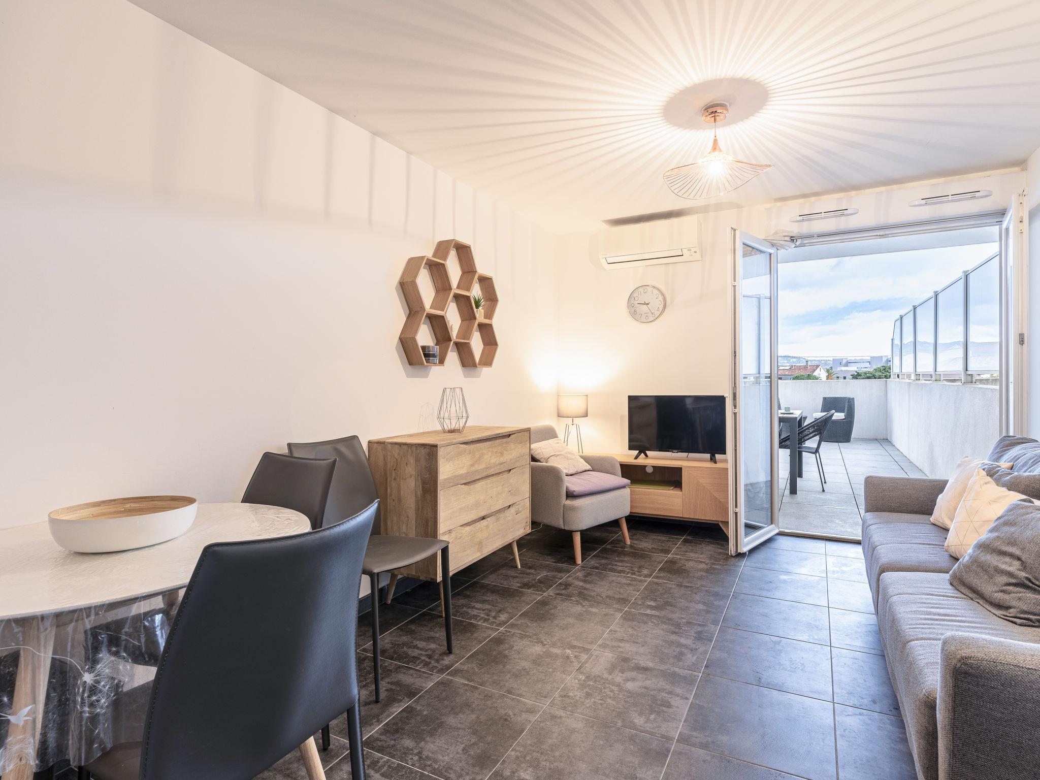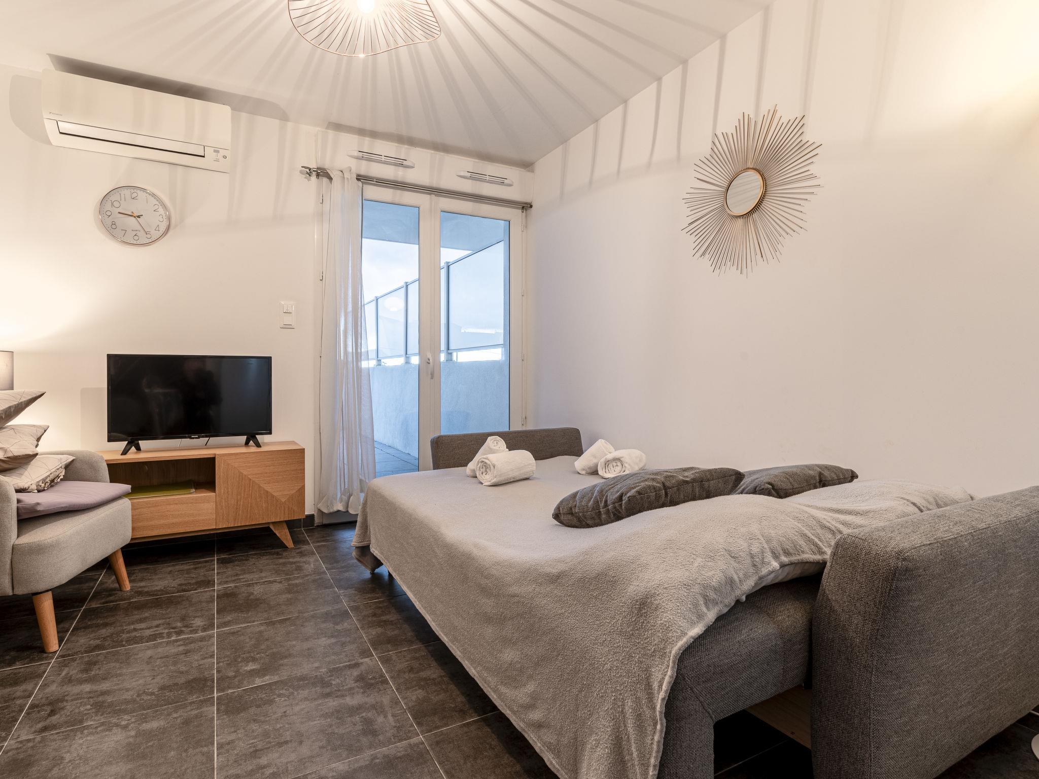 "La Boétie A", 1-room apartment 25 m2, on the ground floor. Living/sleeping room with panoramic window with 1 double sofabed (140 cm, length 190 cm), TV (flat screen), air conditioning. Exit to the terrace. Kitchenette (oven, 1 ceramic glass hob hotplate, 4 gas rings, kettle, microwave, electric coffee machine, Capsules for coffee machine (SENSEO) extra). Shower/WC. Electric heating, air-conditioning. Terrace 21 m2, east facing position. Terrace furniture, deck chairs (2). Facilities: washing machine. Internet (WiFi, extra). Parking space n 6 (1 car). Please note: non-smokers only. Smoke alarm. Offer by a private individual according to Art. 155, IV of CGI. 2A24700016270
