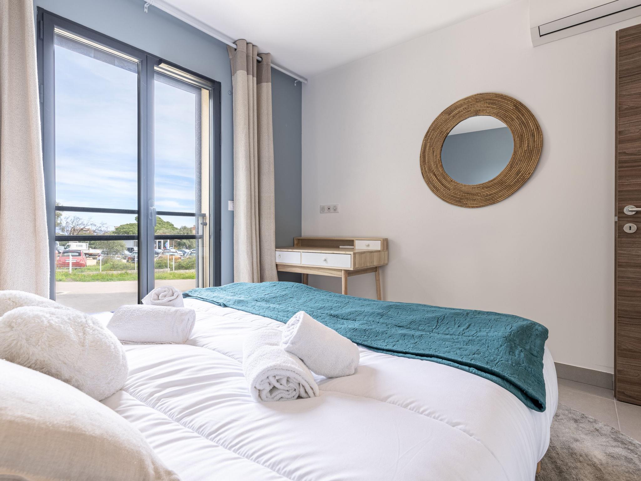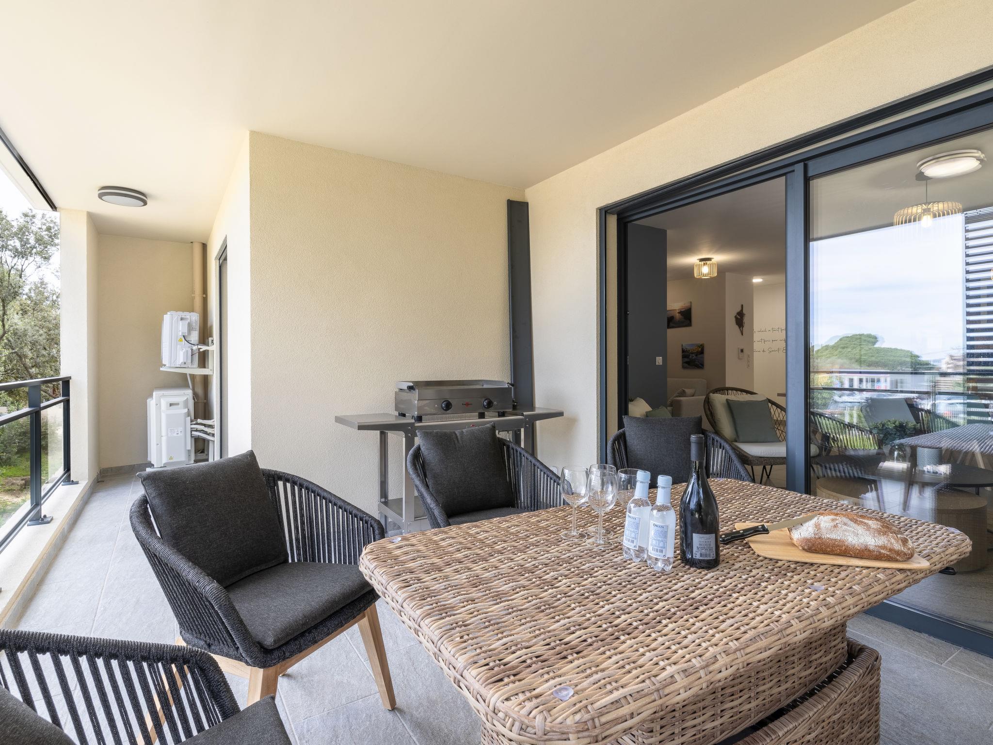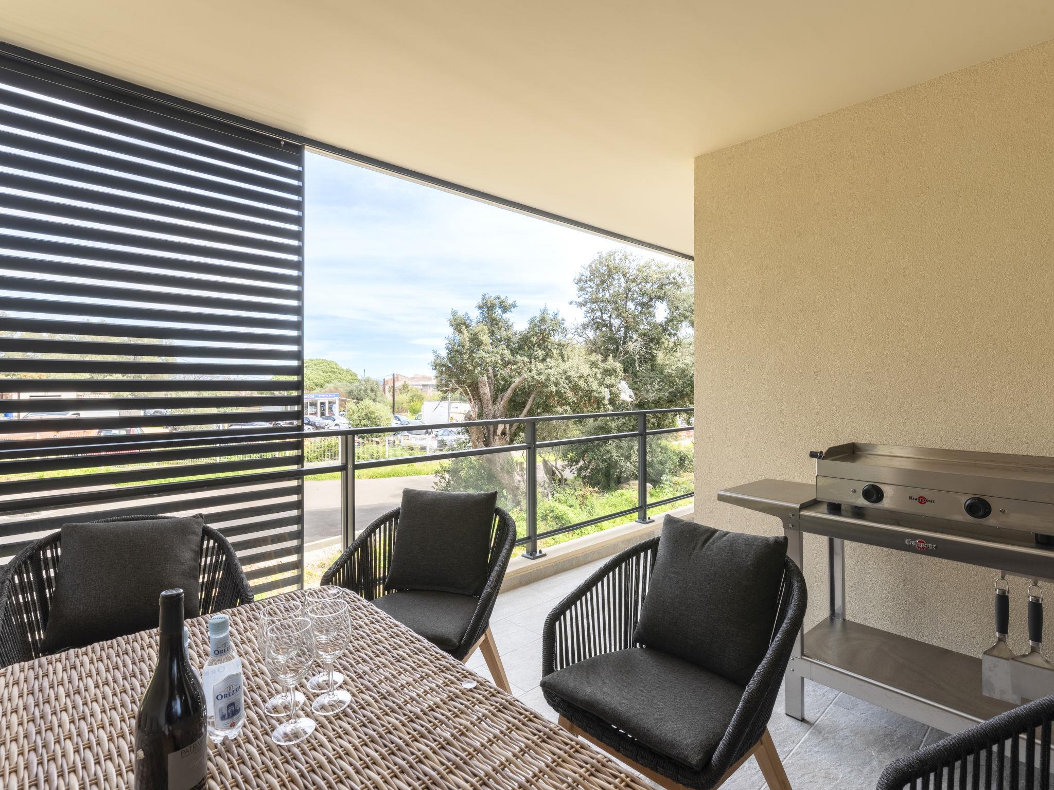Residence "Vignola 2", built in 2024. In the centre of Porto-Vecchio, in a central, quiet position, 500 m from the sea, 3 km from the beach, north facing position. Private: terrace (16 m2), garden furniture, barbecue, parking. Grocery 100 m, supermarket, restaurant 400 m, bus stop "Citadina" 50 m. Sports harbour 400 m. Nearby attractions: Plage de Cala Verde 3 km, Plage de Santa Giulia 7 km, Plage de Palombaggia 10 km, Bonifacio 28 km. Well-known lakes can easily be reached: Lac de L'Ospedale 24 km. Hiking paths: Les Aiguilles de Bavella 49 km. Please note: car recommended. Object suitable for 4 adults + 1 child.
