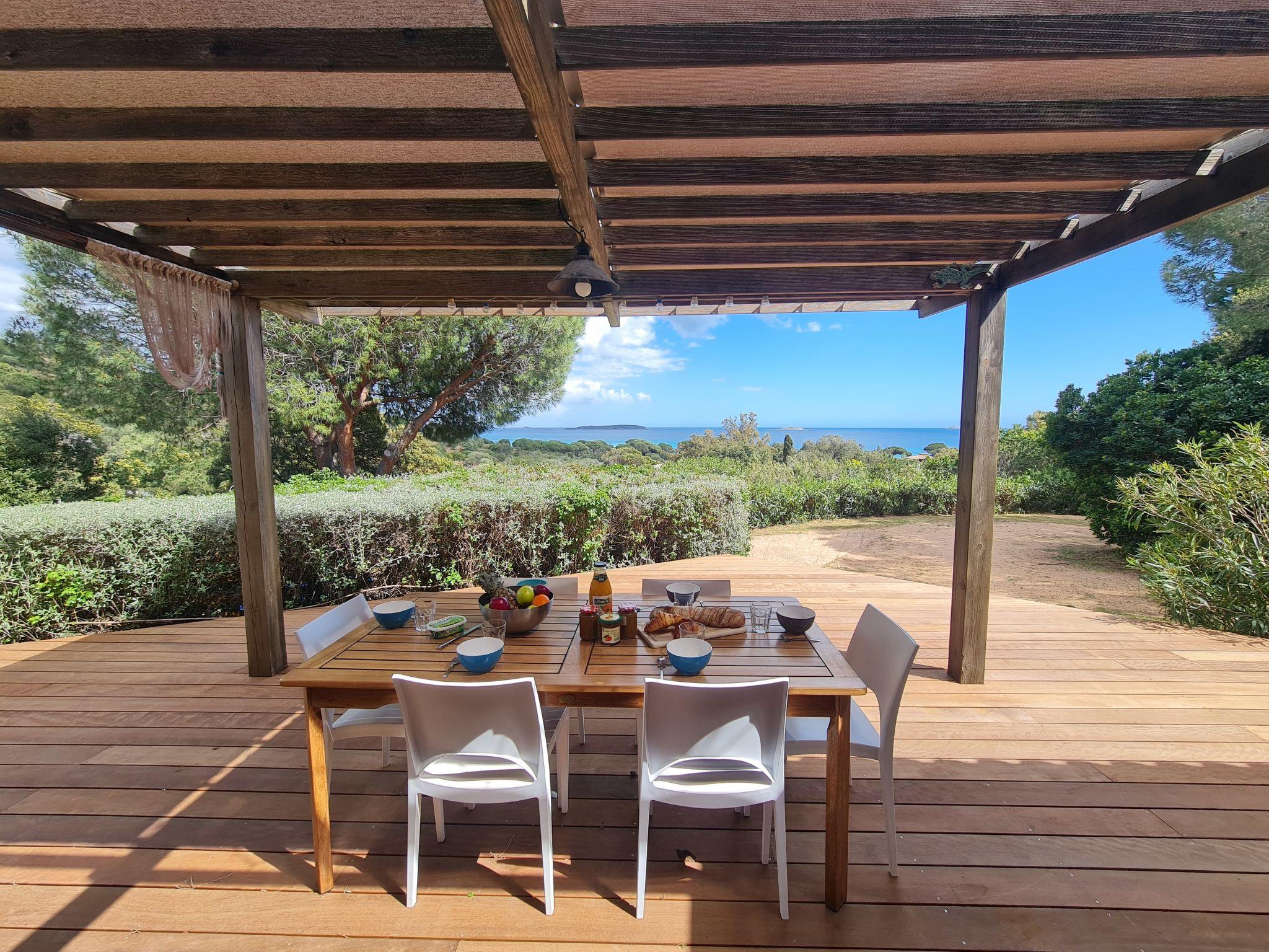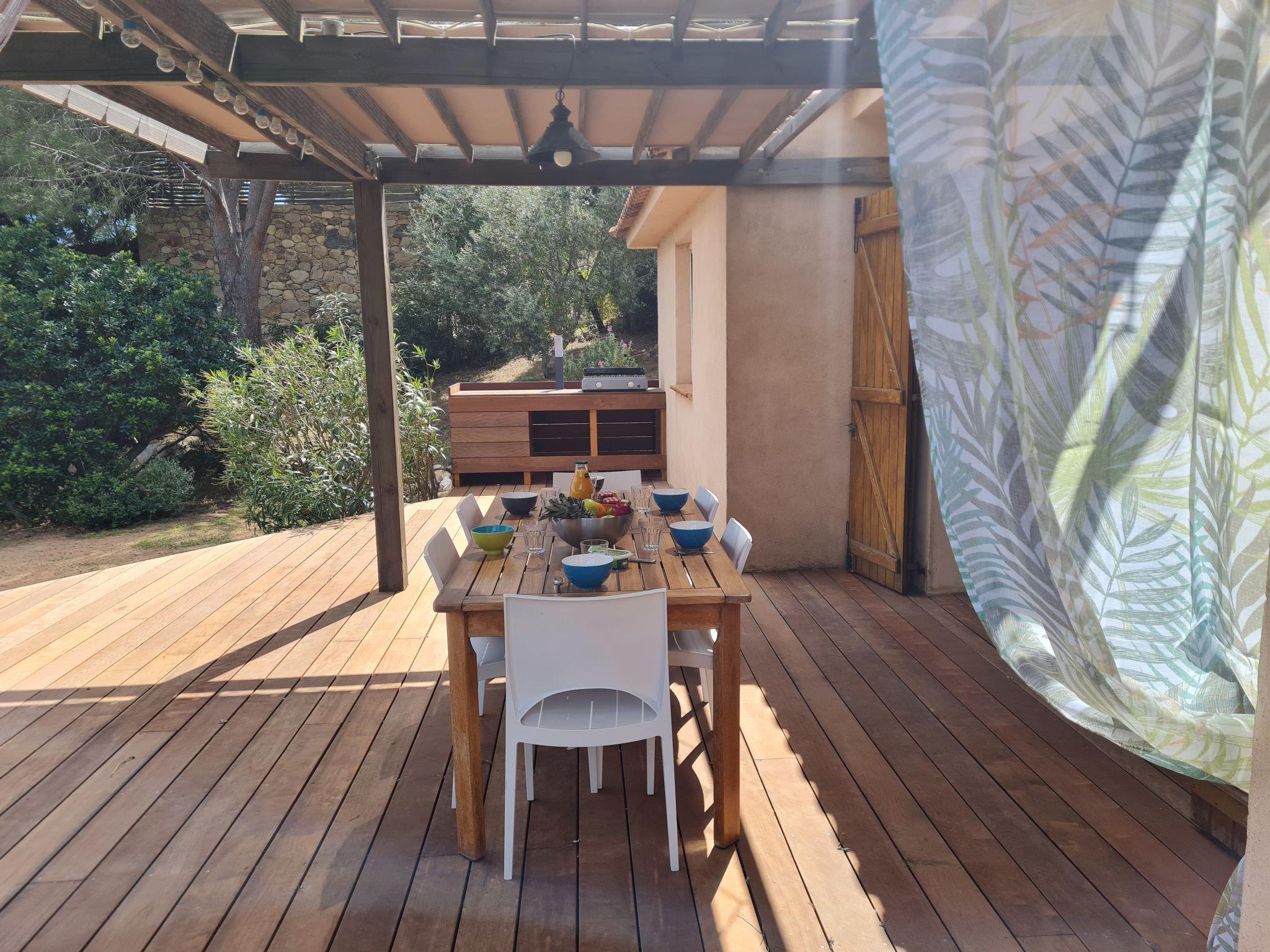 Single-family house. In the resort 10 km from the centre of Porto-Vecchio, on top of a hill, 500 m from the sea, 500 m from the beach, road to cross. Private: property 1'400 m2 (fenced), parking (for 2 cars) on the premises. Supermarket 6 km, shopping centre 11 km, restaurant 500 m, bus stop 6.5 km, sandy beach "Plage de Palombaggia" 500 m. Sports harbour 9 km. Nearby attractions: Centre ville de Porto-Vecchio 10 km, Plage de Santa Giulia 8 km, Bonifacio 26 km. Well-known lakes can easily be reached: Lac de l'Ospédale 20 km. Hiking paths: Aiguilles de Bavella 48 km. Please note: car recommended.