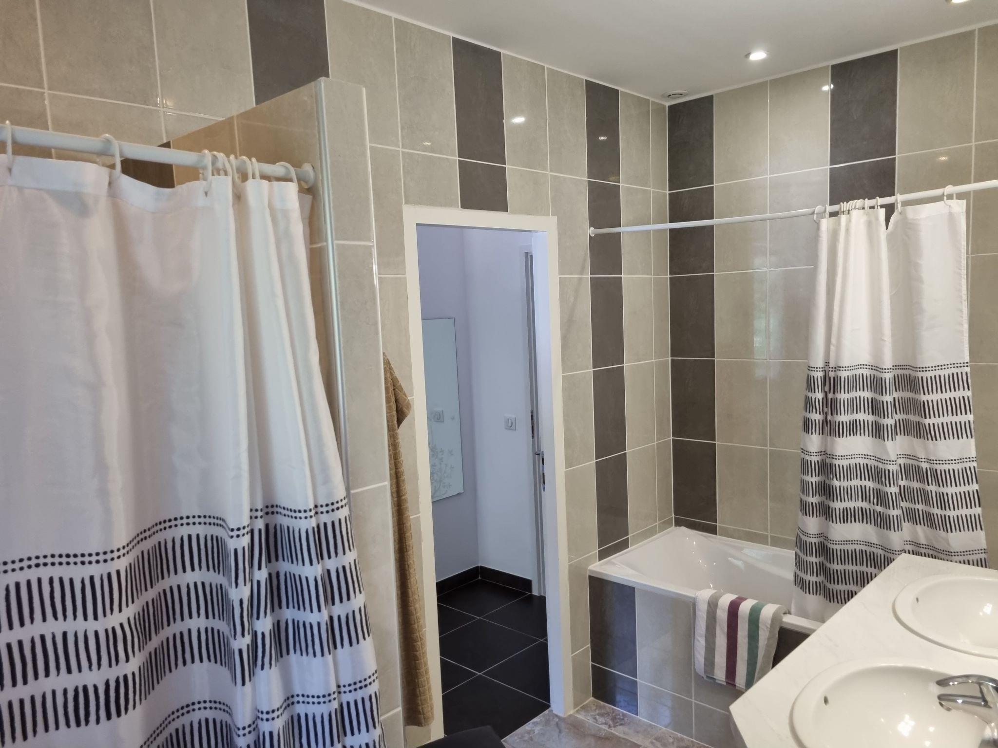 The villa comprises 3 bedrooms (king-size beds), 2 bathrooms, 1 separate WC, 1 very bright living room with large picture windows, 1 fully-equipped kitchen/dining room with bar opening onto the living room and 1 utility room. The bedrooms and living room are equipped with reversible air conditioning (hot and cold).