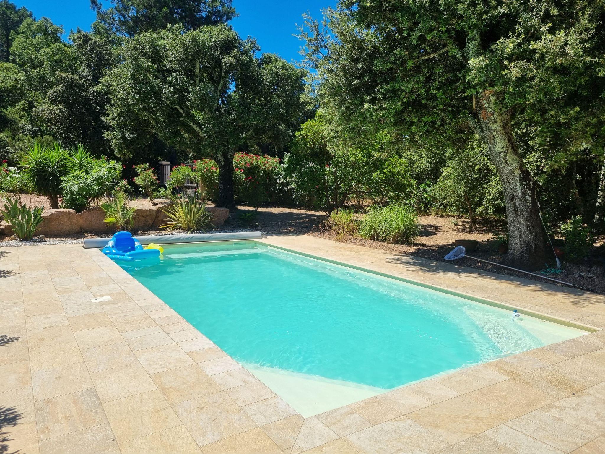 A large 60 m2 covered terrace is equipped with a barbecue, an electric plancha and an outdoor fitted kitchen area with outdoor lounge overlooking a 3800 m2 private garden planted with trees (pines, oaks, arbutus, heather). The grounds are fenced with an entrance and automatic gate. Access to the house is private.