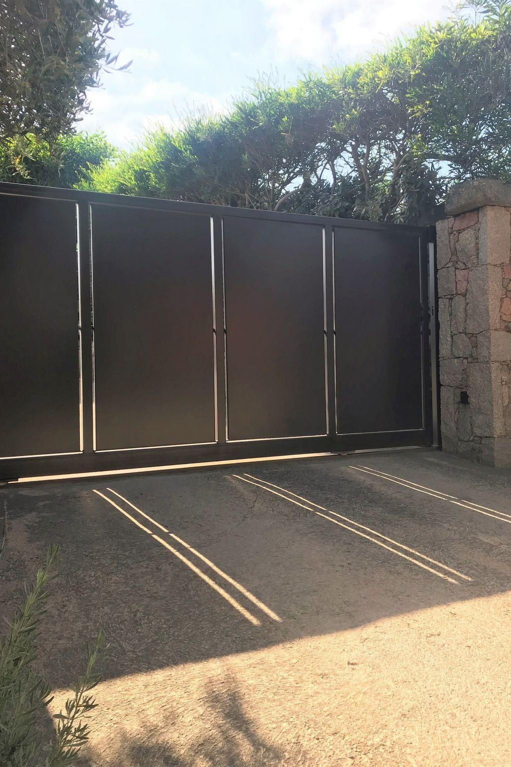 A paved garden and walkway surrounded by Mediterranean plants and trees with Corsican essences and scents.