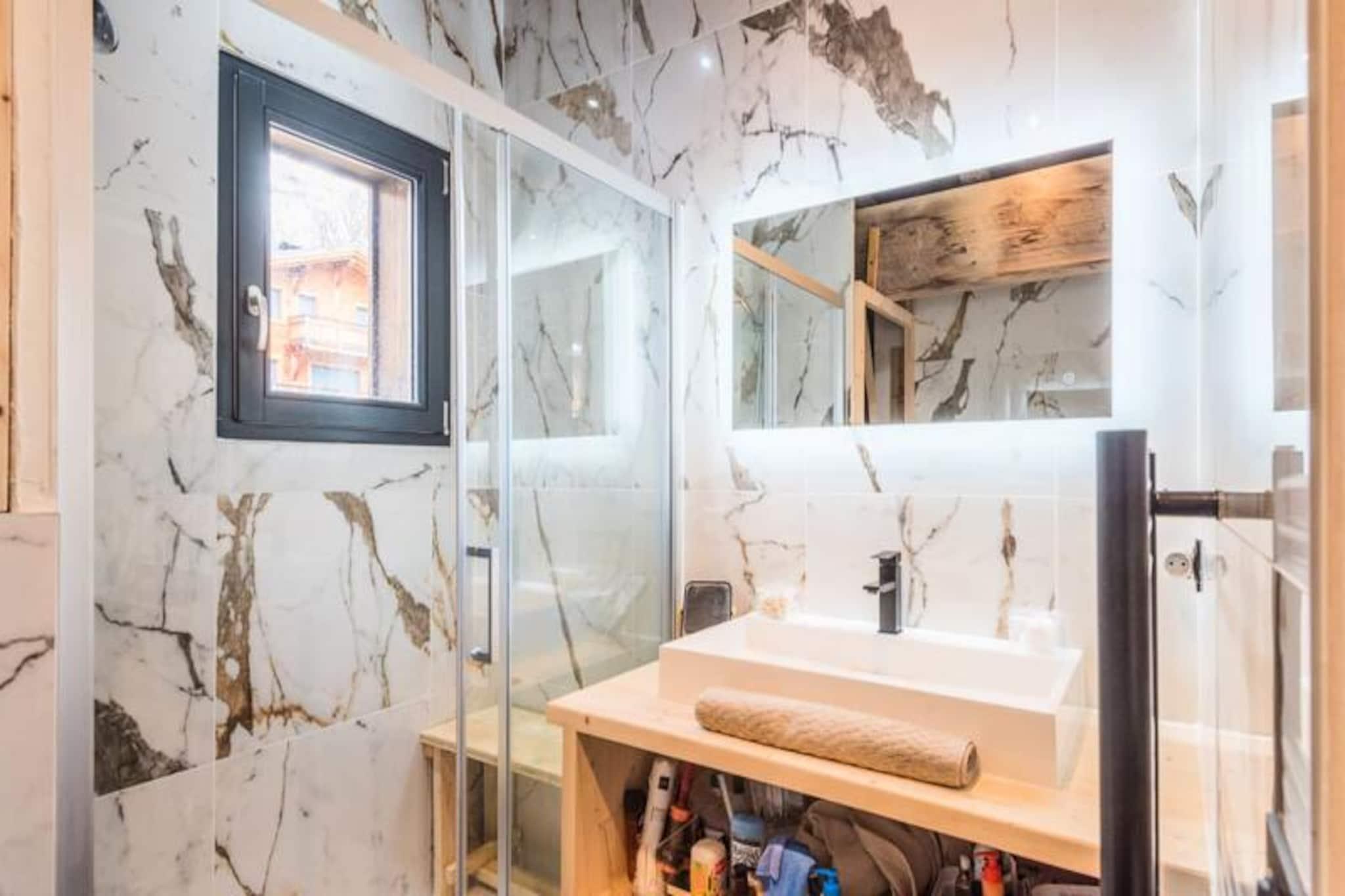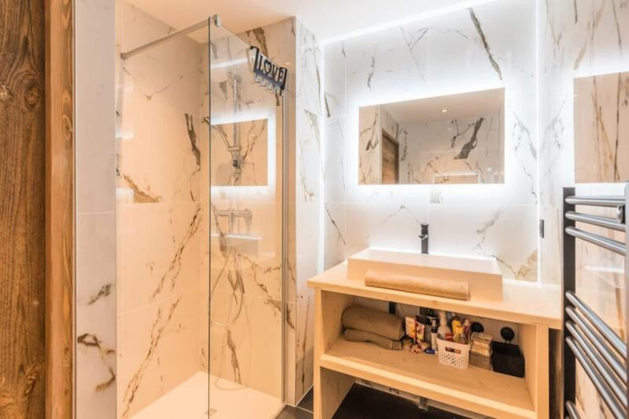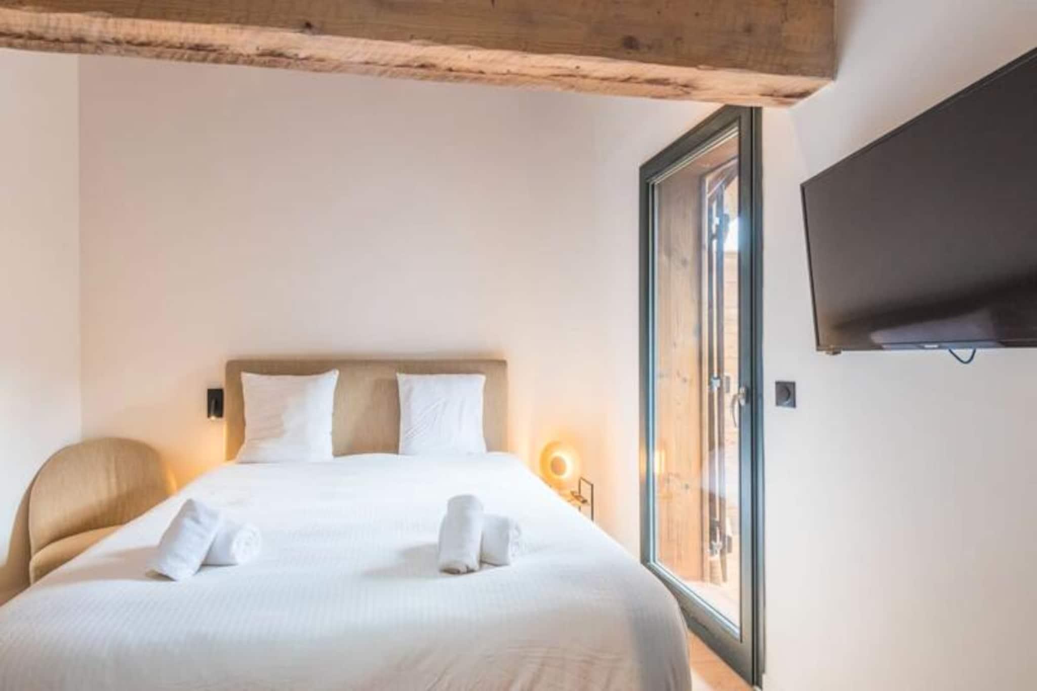 I den maleriske landsby Praz-sur-Arly, hvor de majestætiske Alper rejser sig for at hilse på himlen, tilbyder dette elegante dobbelthus et idyllisk tilflugtssted for op til otte gæster. Charmen af ??gammelt træ og moderne komfort blandes problemfrit og skaber en varm og indbydende atmosfære, perfekt til familieferier eller en ferie med venner. Her føles hvert øjeblik som en flugt ind i hjertet af naturens storhed. \n\nMed et rummeligt areal på 165 m² kan hytten prale af et gennemtænkt design. Den åbne opholdsstue har en rummelig stue og spiseplads, der åbner ud til en balkon med betagende udsigt over bjergene. Det fuldt udstyrede køkken, komplet med førsteklasses apparater såsom kaffemaskine, ismaskine og opvaskemaskine, sikrer ubesværet madlavning. Ovenpå tilbyder soveværelset en kingsize-seng og eget badeværelse, mens underetagen huser tre queensize-soveværelser, to stilfulde badeværelser med italienske brusere og yderligere faciliteter såsom et spillerum, Wi-Fi og satellit-tv. Praktiske funktioner såsom et skiskab, privat parkering og centralvarme sikrer et behageligt ophold året rundt. \n\nPraz-sur-Arly ligger i hjertet af Haute-Savoie og tilbyder direkte adgang til skiområdet Espace Diamant, der kan prale af 192 km pister for vintersportsentusiaster. Om sommeren forvandles regionen til et paradis for vandrere, mountainbikere og eventyrlystne med aktiviteter som paragliding og rafting. Landsbyens savoyard-charme afspejles i dens traditionelle arkitektur, lokale markeder og gourmetrestauranter, der serverer raffinerede retter lavet af regionale råvarer. \n\nUanset om du er tiltrukket af spændingen ved alpine eventyr eller bjergenes fredfyldte skønhed, lover denne hytte en uforglemmelig ferie fyldt med komfort, stil og de franske alpers tidløse charme.