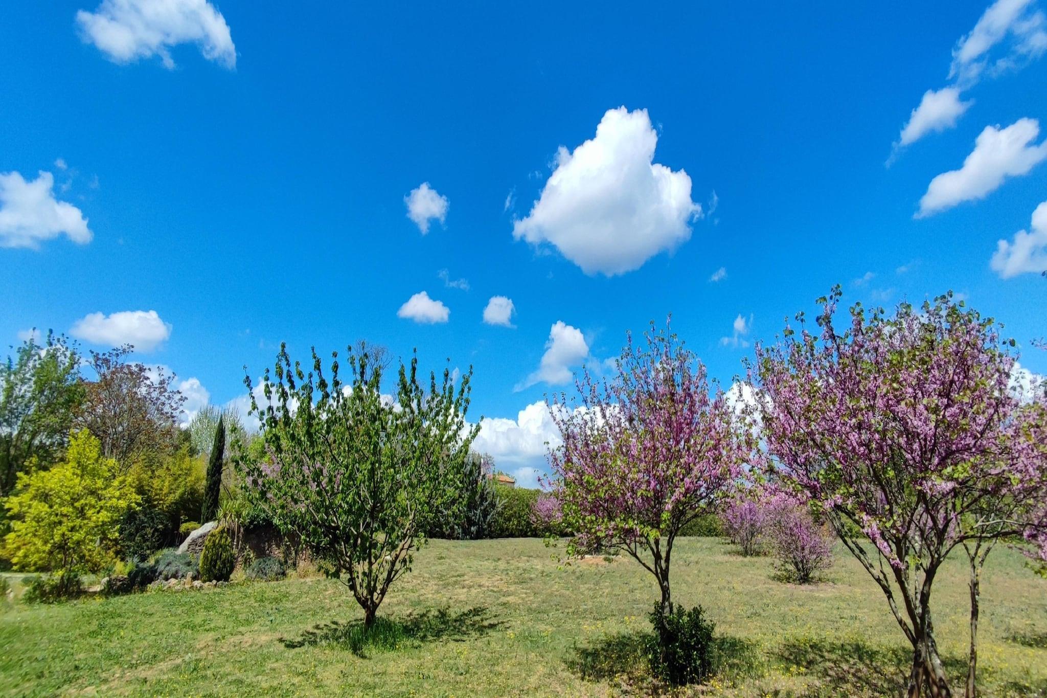 Denne villa, der ligger i en frodig anlagt park på 2,5 hektar, tilbyder en rolig oase omgivet af fyrreskove, garrigues og en fælles swimmingpool. Ideel til familier eller venner, er det et paradis af afslapning, natur og komfort. Ejendommen har to uafhængige boliger, og denne annonce inviterer dig til at nyde en af dem - komplet med rummelige interiører og direkte adgang til haven og terrassen. Indenfor kan villaen prale af en indbydende stueetage med et fuldt udstyret køkken, spiseplads og stue, der åbner ud mod naturen. En korridor fører til tre hyggelige soveværelser, et badeværelse og et toilet. Ovenpå tilbyder et ekstra soveværelse med eget toilet og en panoramaterrasse en fantastisk udsigt over ejendommens naturlige skønhed. Ud over villaen inviterer regionen til udforskning. Gå en tur gennem naturskønne stier, oplev charmerende landsbyer og forkæl dig selv med vinsmagning på nærliggende vinmarker. Uanset om du slapper af ved poolen eller nipper til lokale årgangsvine på terrassen, indfanger dette fredelige tilflugtssted essensen af det sydfranske liv. Bemærk: Swimmingpoolen vil ikke være tilgængelig før den 15. maj 2026.