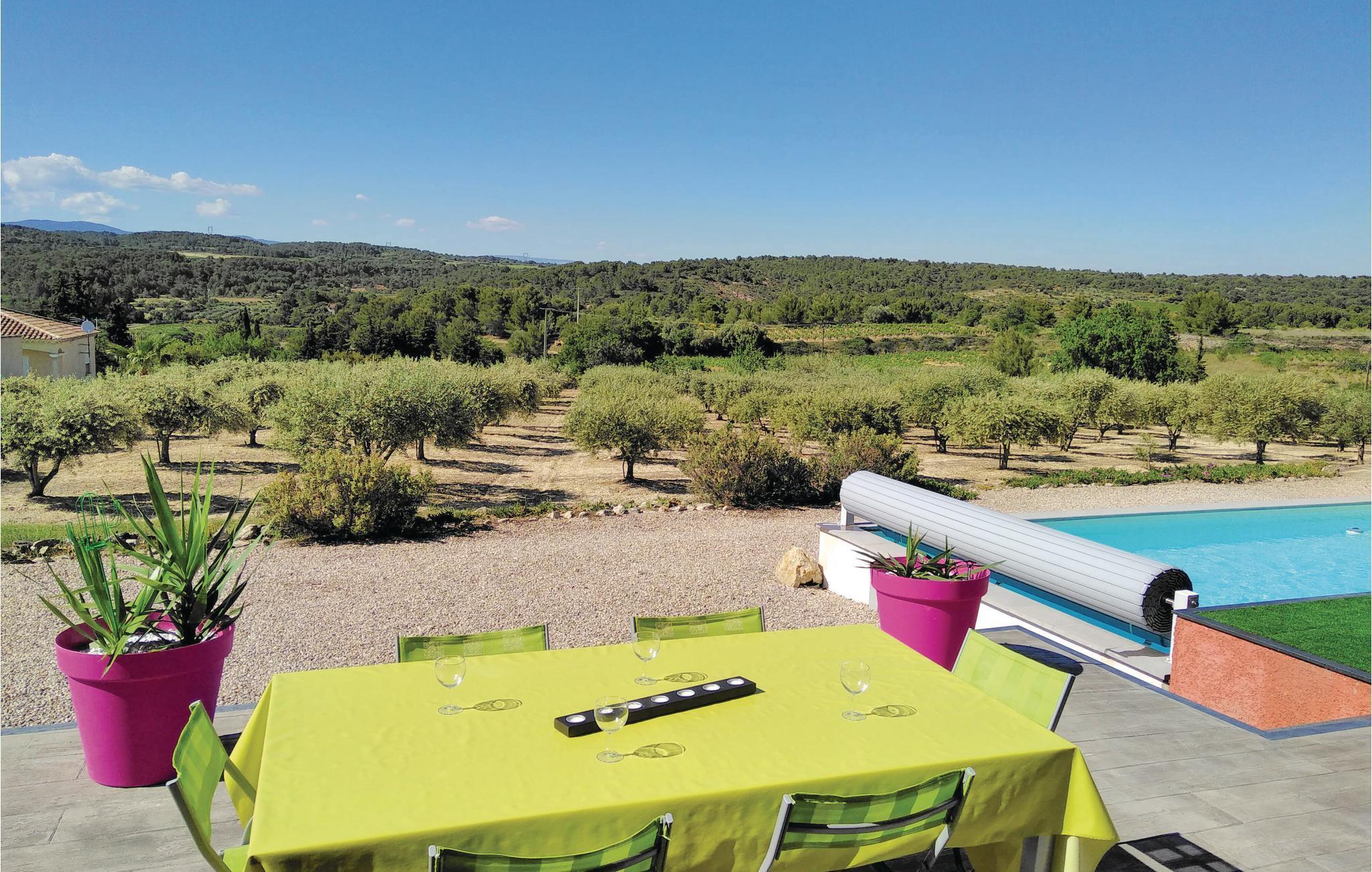 Rummeligt feriehus på en stor grund med pool og fantastisk udsigt! Denne ejendom ligger i landsbyen Quarante i Languedoc-Roussillon, midt i vinmarkerne og med udsigt over de fjerne bjerge.