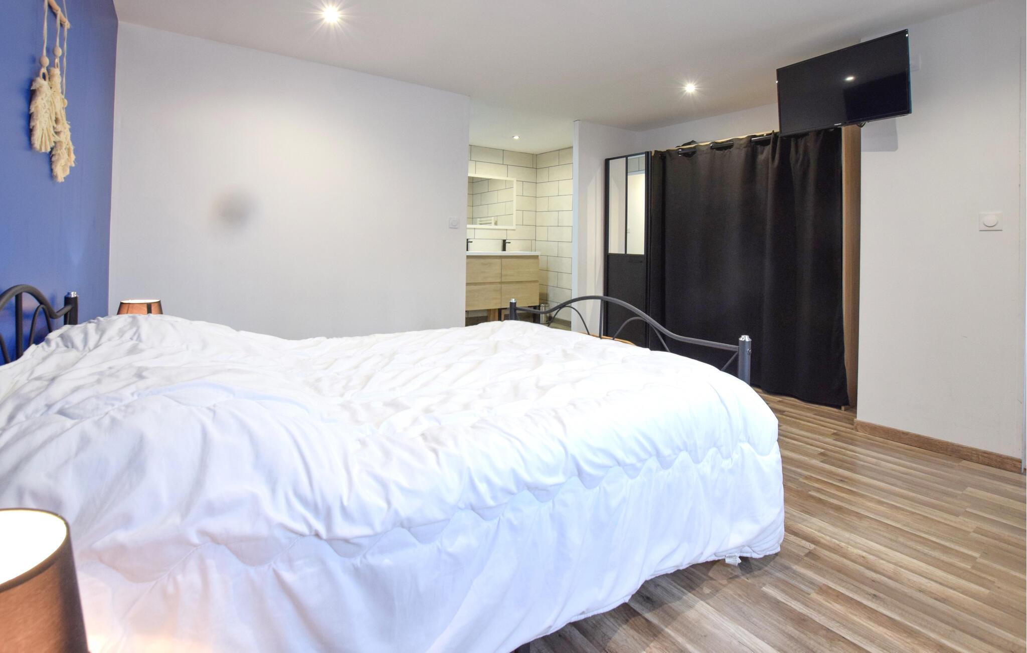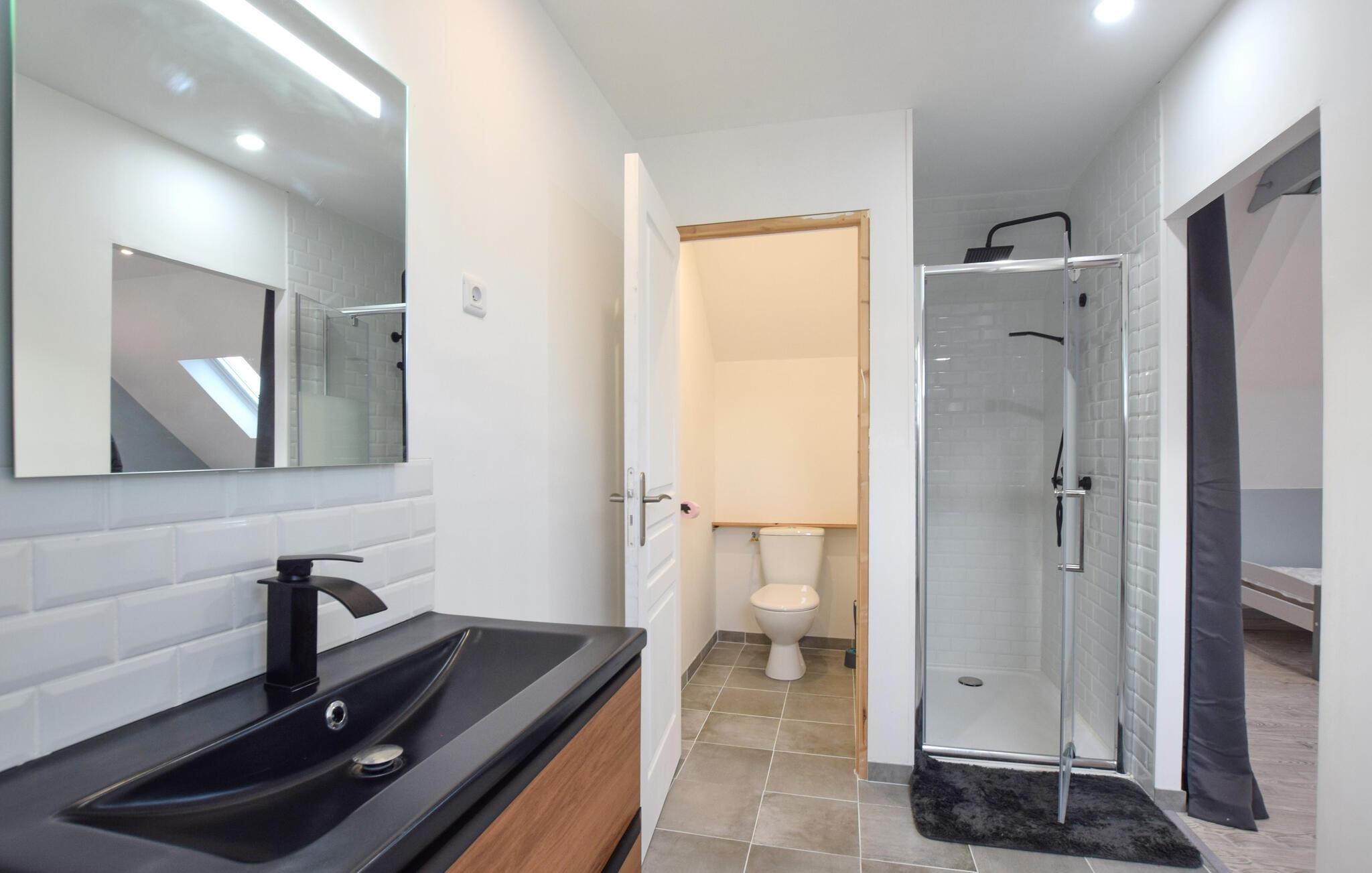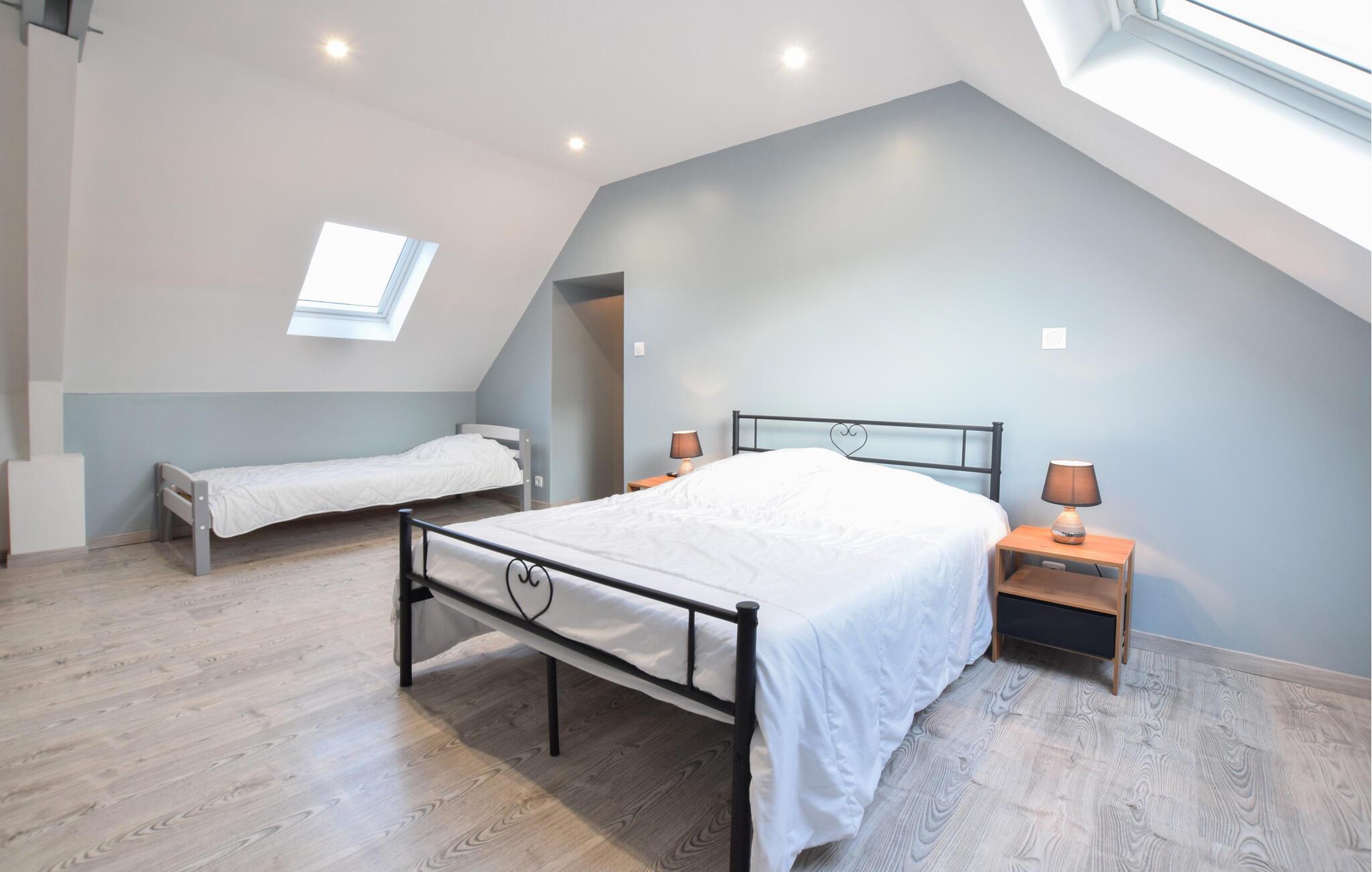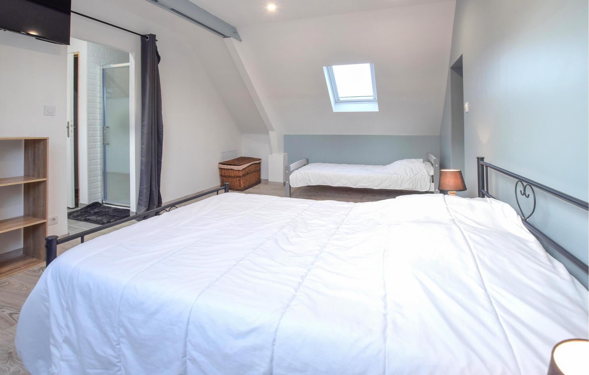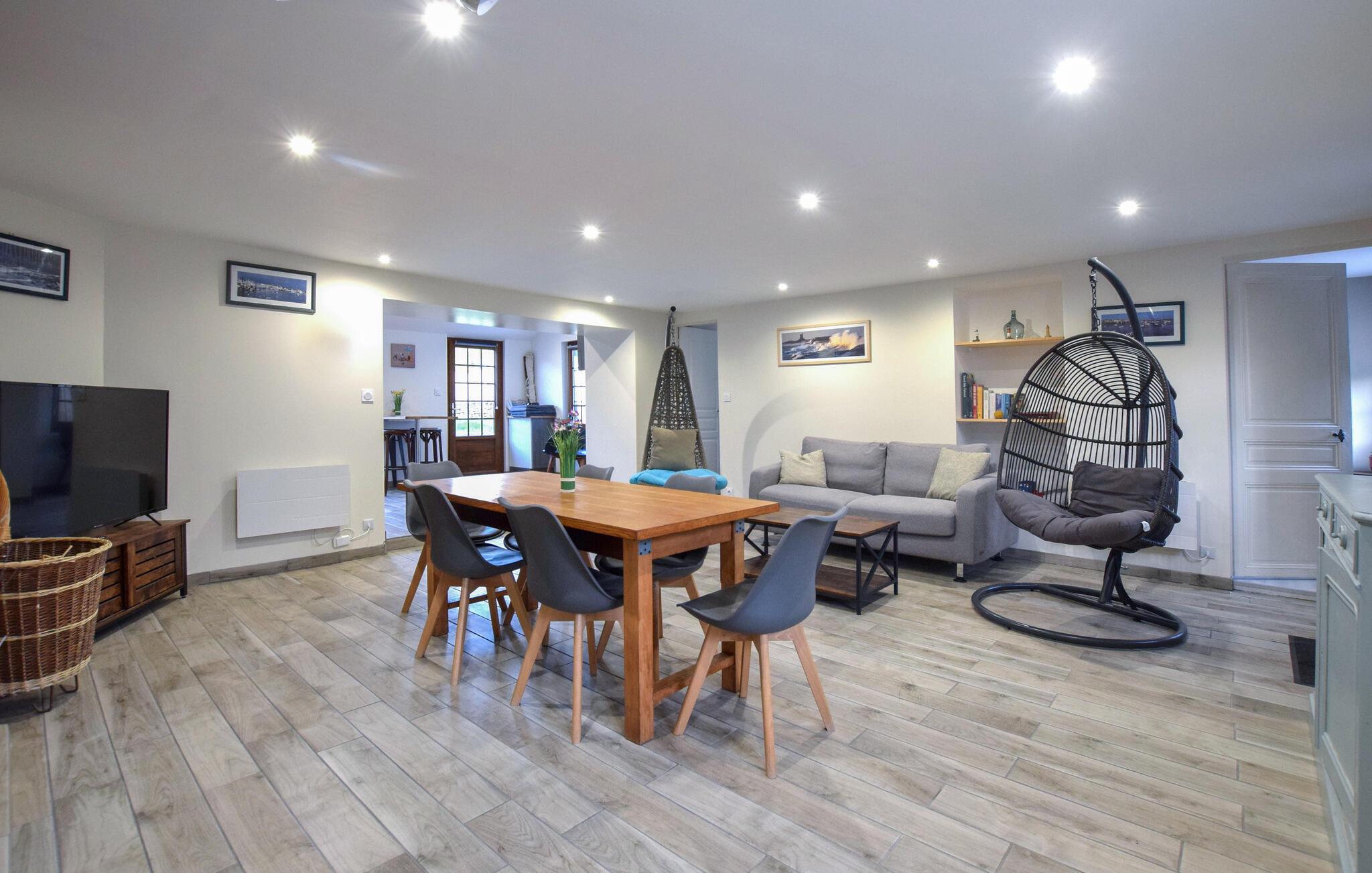Tag familien under armen og glæd jer til at få dette skønne hus som base på en dejlig ferie i det franske. Det flotte stenhus er opført i en autentisk Cotentin-stil og ligger i gåafstand fra stranden. Huset er smagfuldt indrettet og prydes af et dejligt lysindfald og behagelige farveskalaer, der skaber en rar atmosfære, som man ikke kan undgå at slappe af i. Hvil benene efter en aktiv feriedag, tænd op i brændeovnen og sæt jer godt til rette med en god bog, et udfordrende krydsord eller en spændende film.