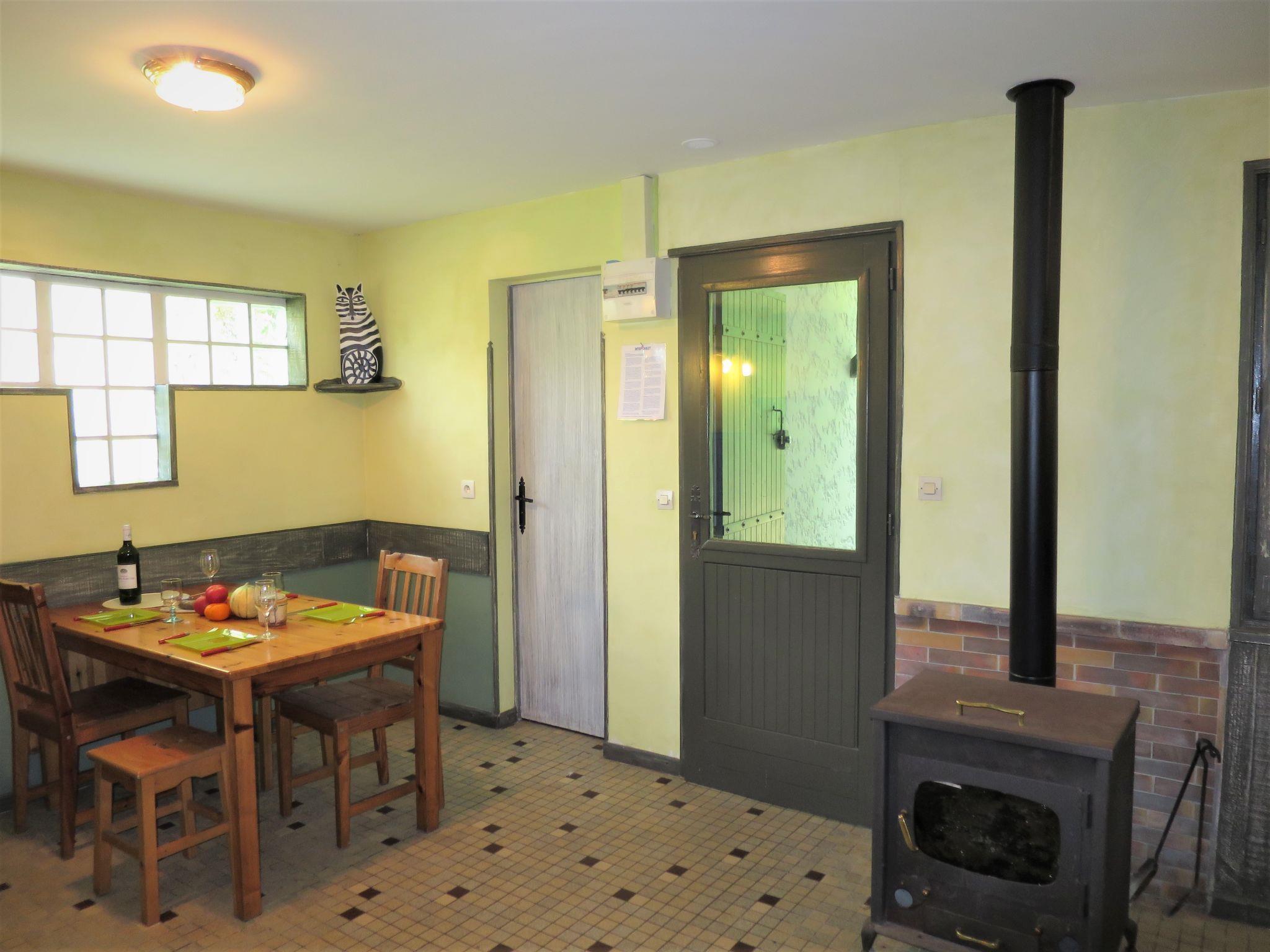 "Les Sables", 2-room house 38 m2. Practical and cosy furnishings: living/sleeping room with 1 double sofabed (140 cm, length 190 cm), Scandinavian wood stove (only for decoration), dining table and satellite TV (flat screen). Exit to the terrace. 1 room with 1 french bed (140 cm, length 190 cm). Open kitchen (oven, dishwasher, 3 gas rings, kettle, microwave, freezer, electric coffee machine). Shower, sep. WC. No heating option. Terrace roofed. Terrace furniture, barbecue (portable), deck chairs (2). View of the forest. Facilities: washing machine. Please note: non-smoking house. Maximum 3 pets/ dogs allowed. Smoke alarm. Offer by a private individual according to Art. 155, IV of CGI.