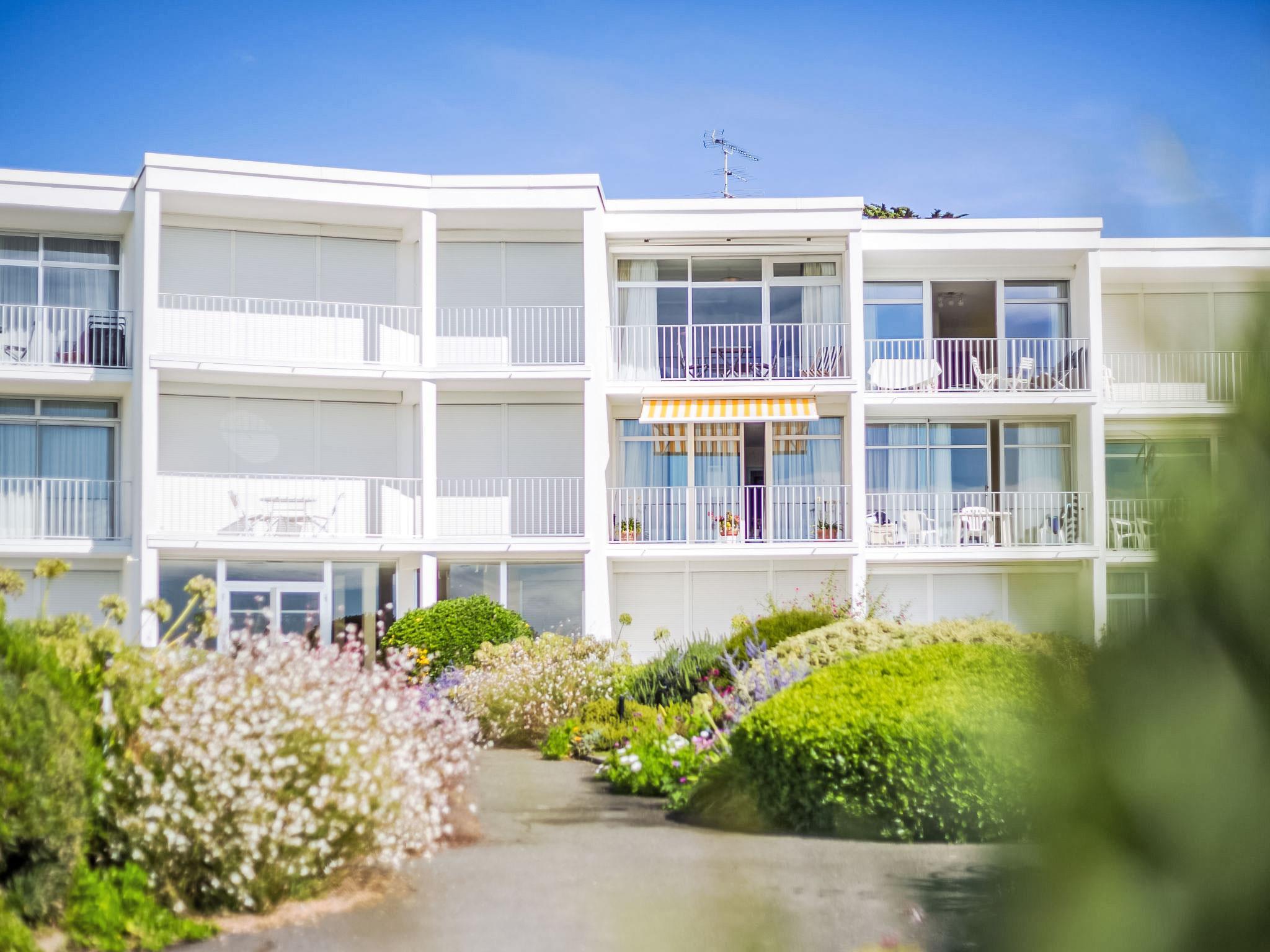 Quiberon: Small residence "Les Trois Iles", 2 storeys. In the resort 2 km from the centre of Quiberon, in a quiet position, 20 m from the sea, 30 m from the beach. Parking. Shop 1.5 km, grocery 2 km, supermarket 2.4 km, restaurant 2 km, bus stop 200 m, railway station "Quiberon" 2.5 km, ferry "Port Maria" 2.5 km, sandy beach "Plage du Conguel" 600 m, thermal baths "Thalassothérapie de Quiberon" 200 m. Marina 3 km, golf course (9 hole) 500 m, sailing school 3 km. Nearby attractions: Presqu'ile de Quiberon et côte sauvage 3 km, Gare maritime les iles Houat, Hoedic. 3 km, Les alignements de Carnac 26 km, Auray et le port de St Goustan 33 km, Vannes 48 km, Lorient 63 km. The keys‘ handover takes place by the agency Interhome in Quiberon, 2 km.