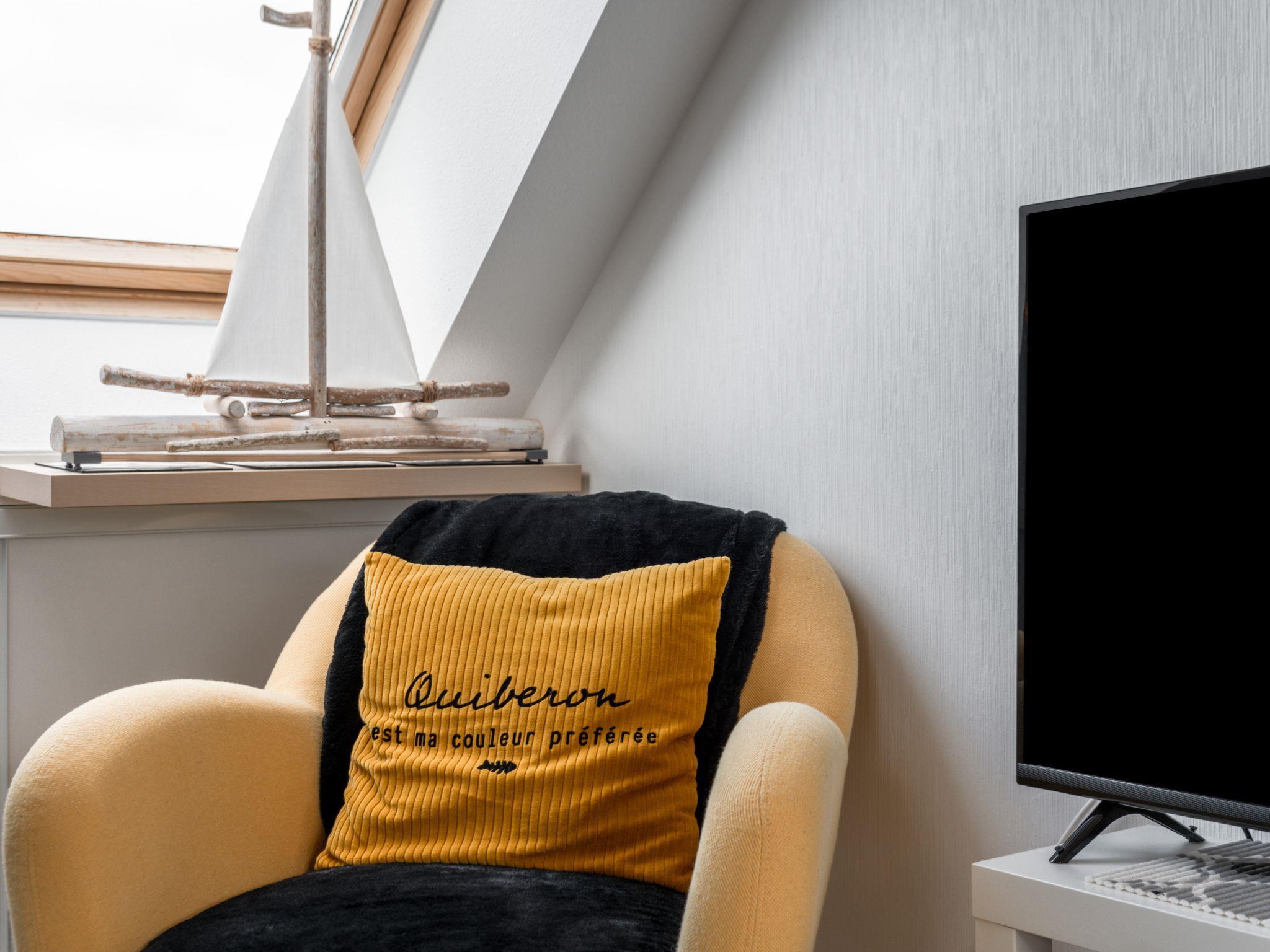 Residence "Le Hoche", 3 storeys. In the heart of the city, 50 m from the sea, 50 m from the beach. In the complex: lift. Shop 30 m, grocery 100 m, restaurant, bar, café 10 m, bicycle rental 20 m, bus stop 100 m, sandy beach "Grande Plage" 50 m, indoor swimming pool 800 m, thermal baths "Thalassothérapie de Quiberon" 1 km. Tennis 2 km. Nearby attractions: Casino de Quiberon 800 m, Thalassothérapie de Quiberon 2 km, Les Alignements de Carnac 18 km, Auray 30 km, Vannes 40 km, Belle-ile-en-Mer, Houat, Hoedic. The keys‘ handover takes place by the agency Interhome in Quiberon, 1 km.
