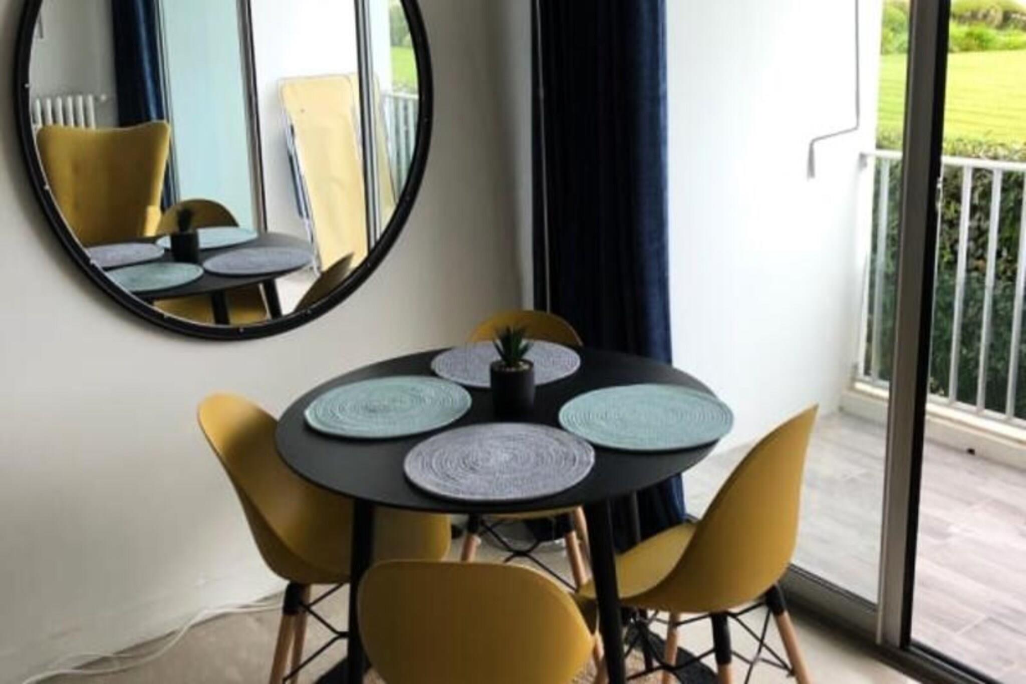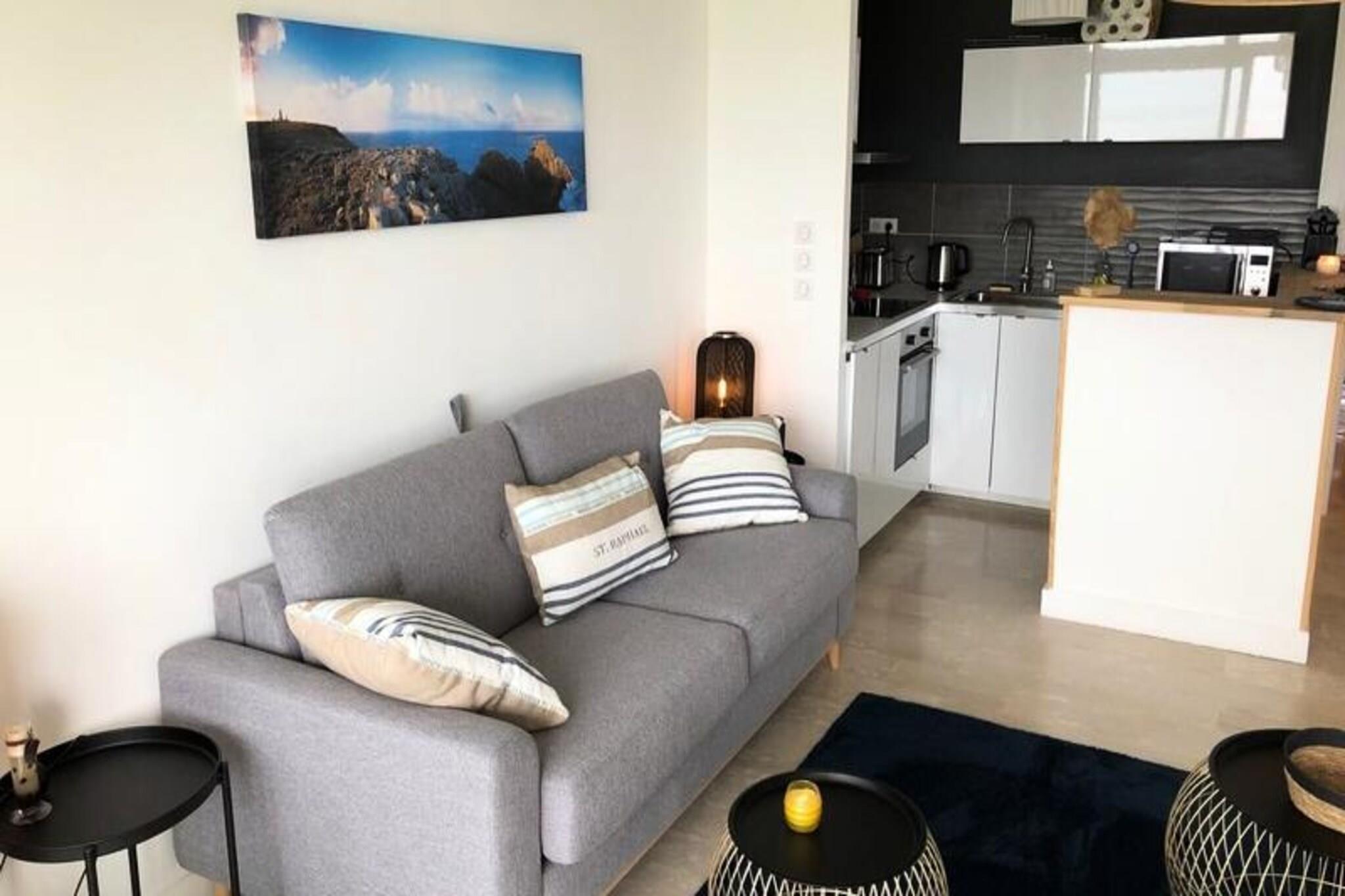 This spacious 34 m² studio is located on the ground floor and offers a relaxing stay with beautiful sea views. It features a comfortable living/dining room with a sofa bed (160 cm), a flat-screen TV, and two additional 90 cm beds. With a south-facing orientation, the studio provides a stunning view of the surrounding islands. Parking is available behind the building, and the property is pet-friendly, ensuring a great stay for both guests and their pets. Situated just 20 meters from the sea and a short walk from the sandy beach, this apartment is ideally located for exploring the area. A variety of attractions, including the famous Quiberon peninsula, the Thalassotherapy center (200 m), and the scenic wild coast, are all nearby. Enjoy water sports, hiking trails, and visits to local landmarks such as the Carnac stones, the islands of Houat and Hoedic, and the town of Vannes. The local market, shops, and restaurants are within easy reach, making it a perfect spot for relaxation and exploration. The studio is fully equipped with a kitchen, including a microwave, stove, and fridge, to prepare your meals comfortably. There is also a washing machine for convenience, and the bathroom is well-maintained with all the essentials. Bed linen and towels are available for rent, ensuring a hassle-free stay for all guests.