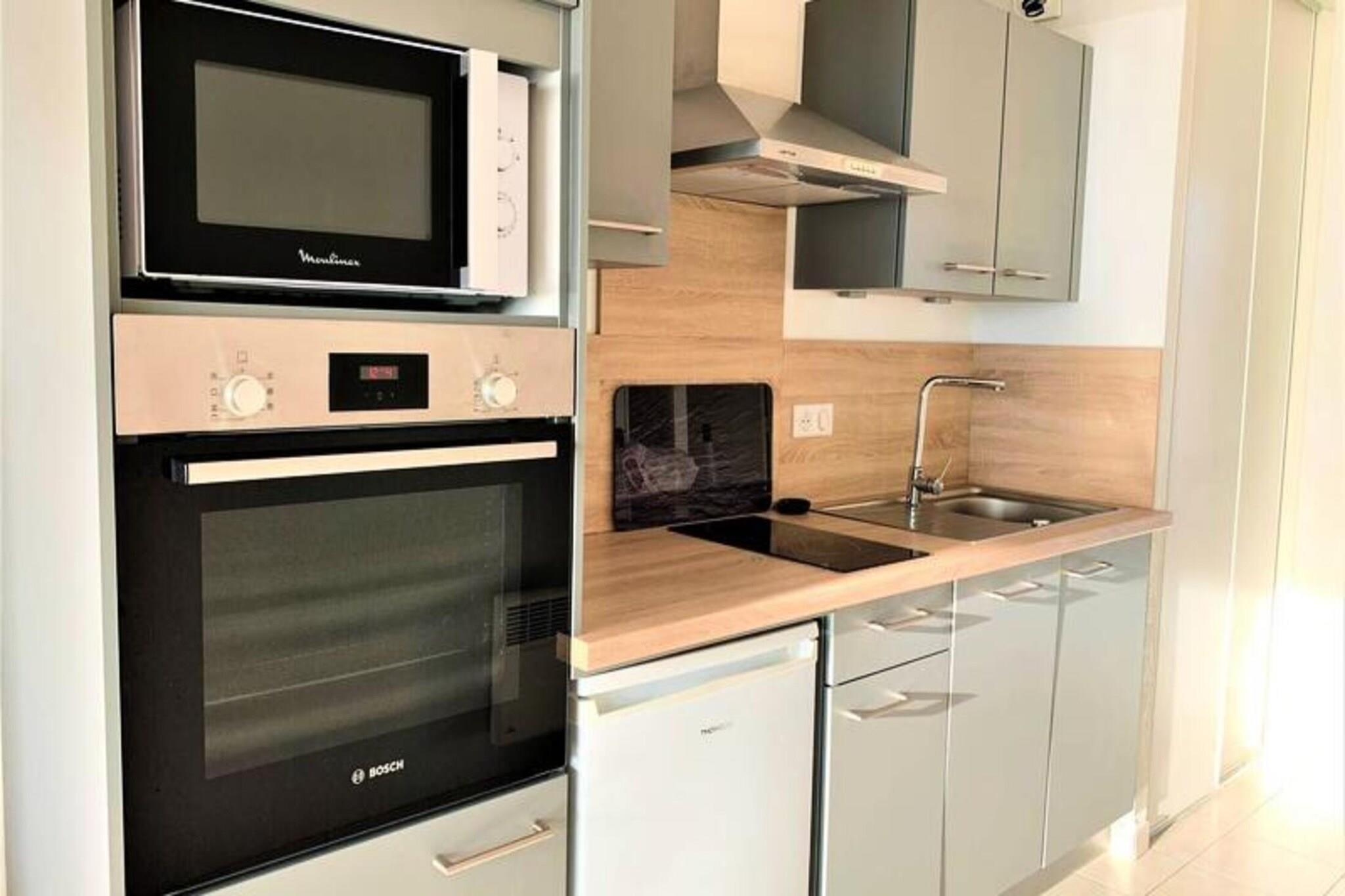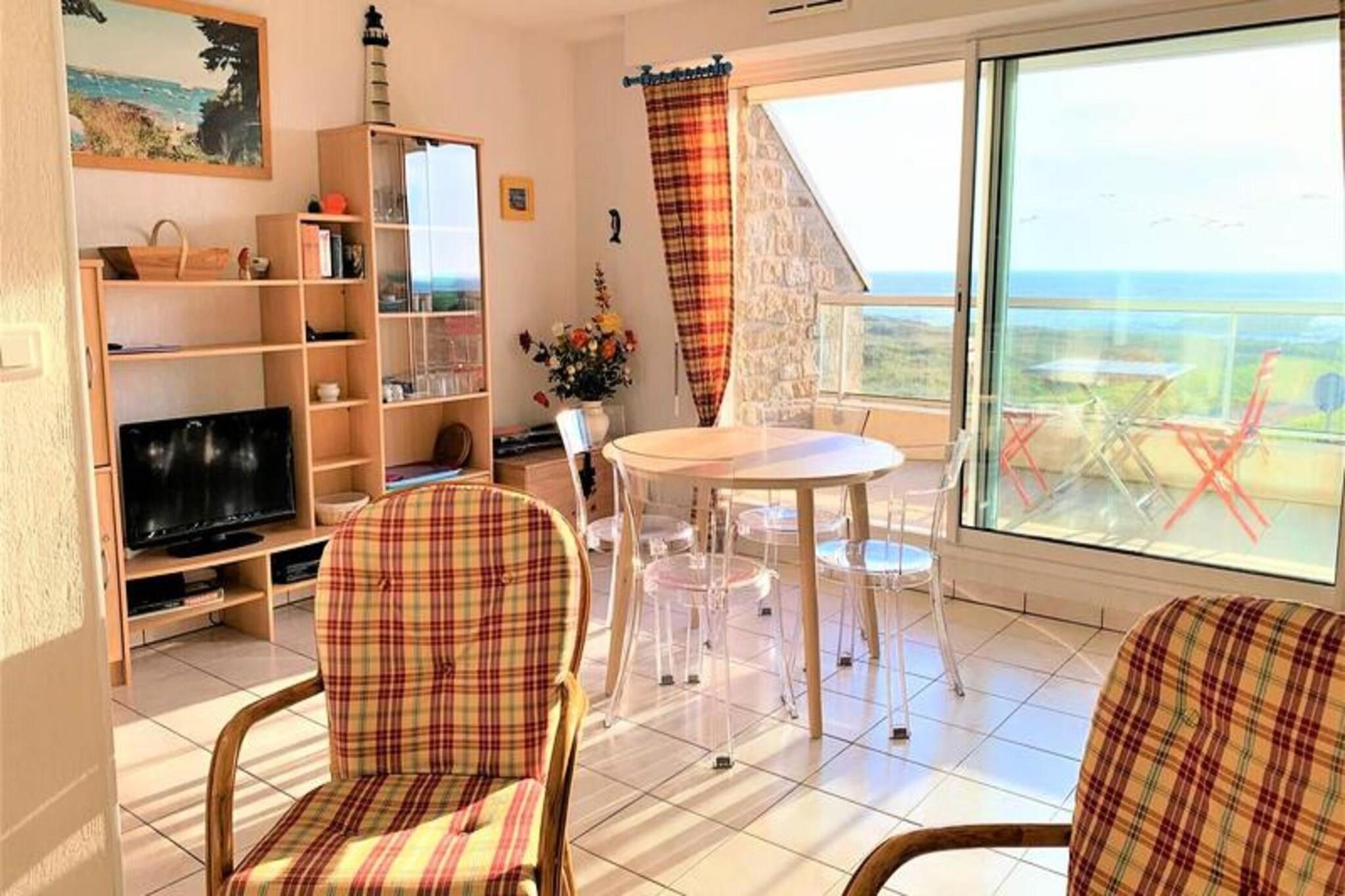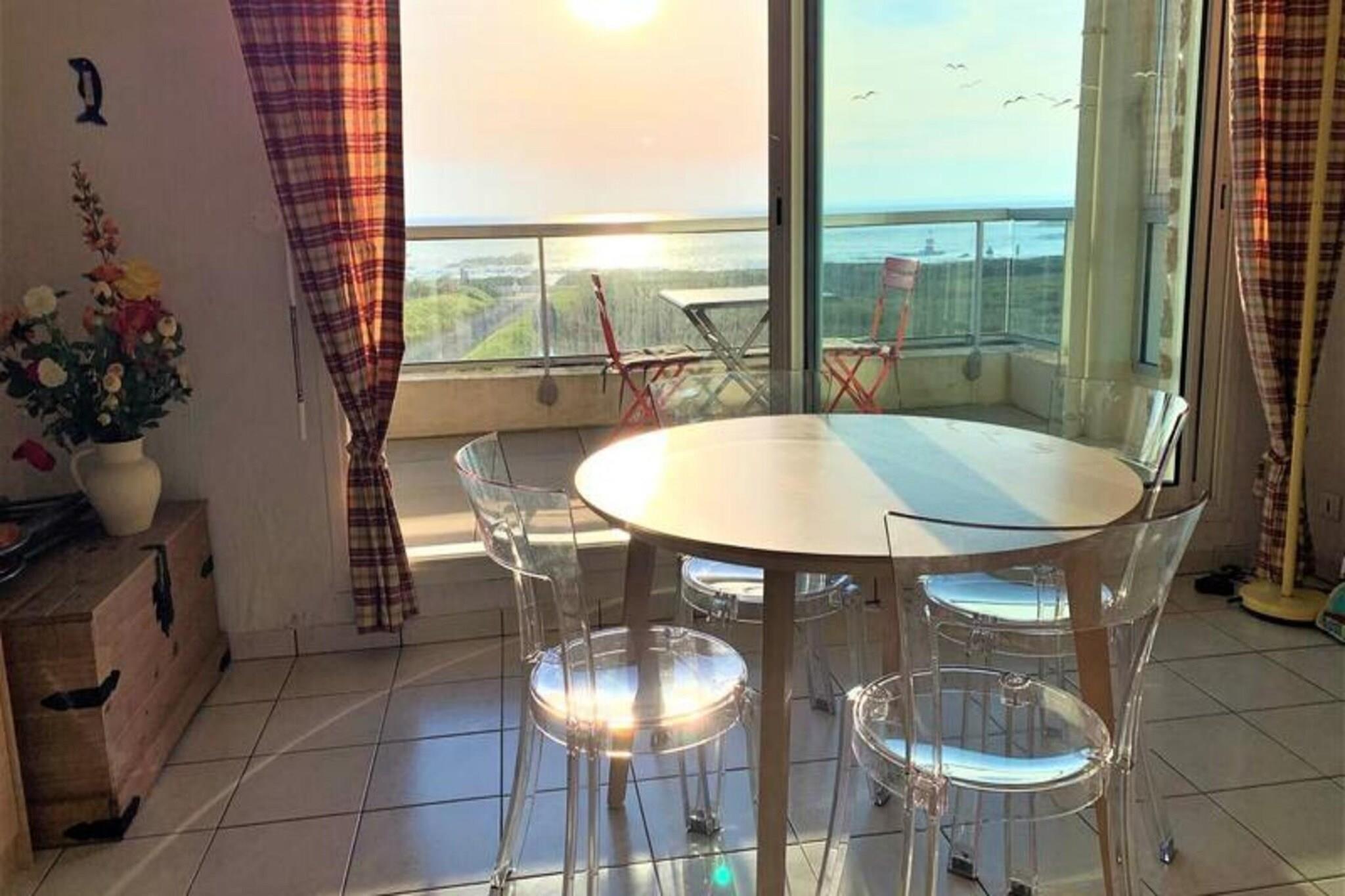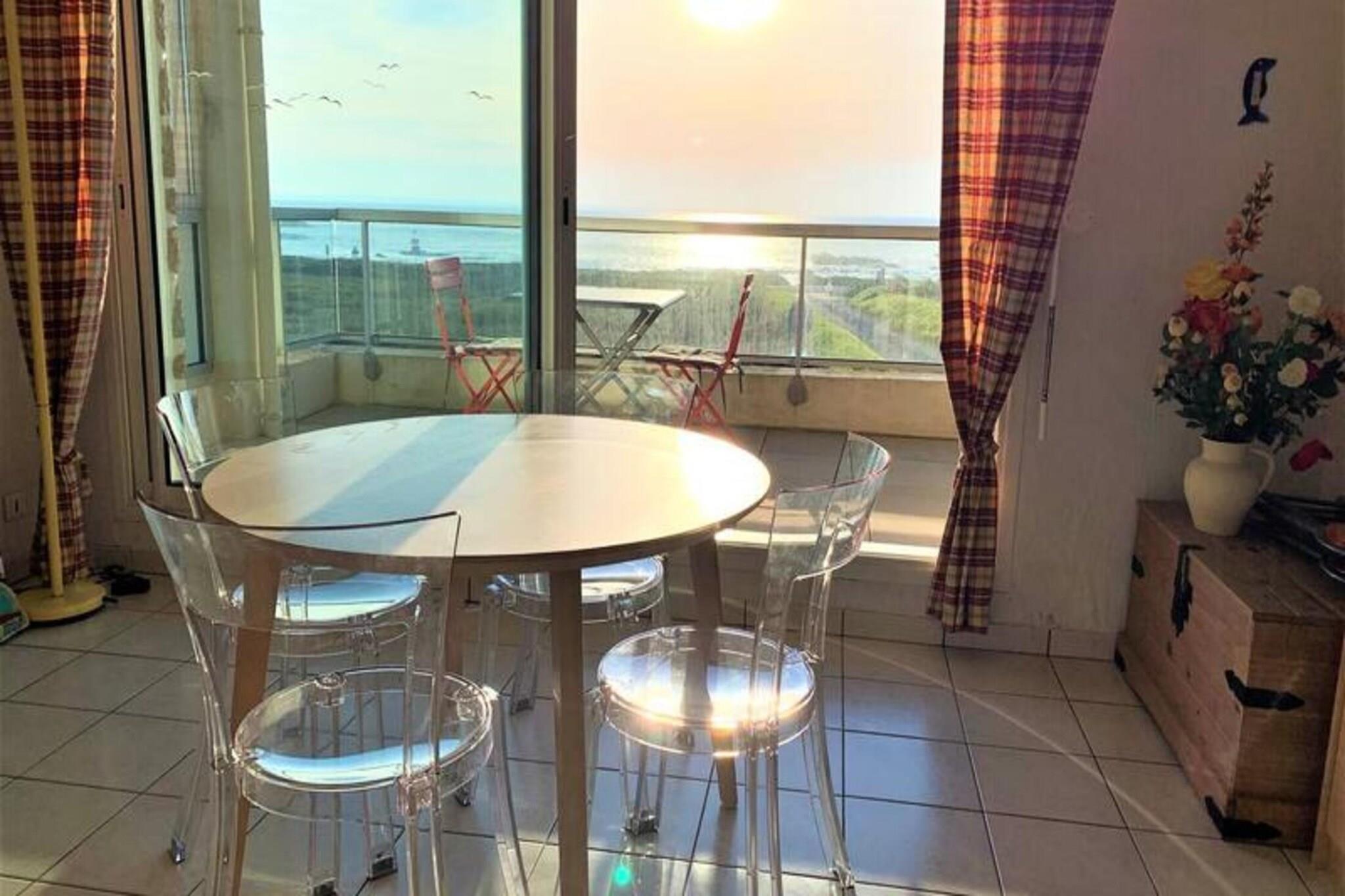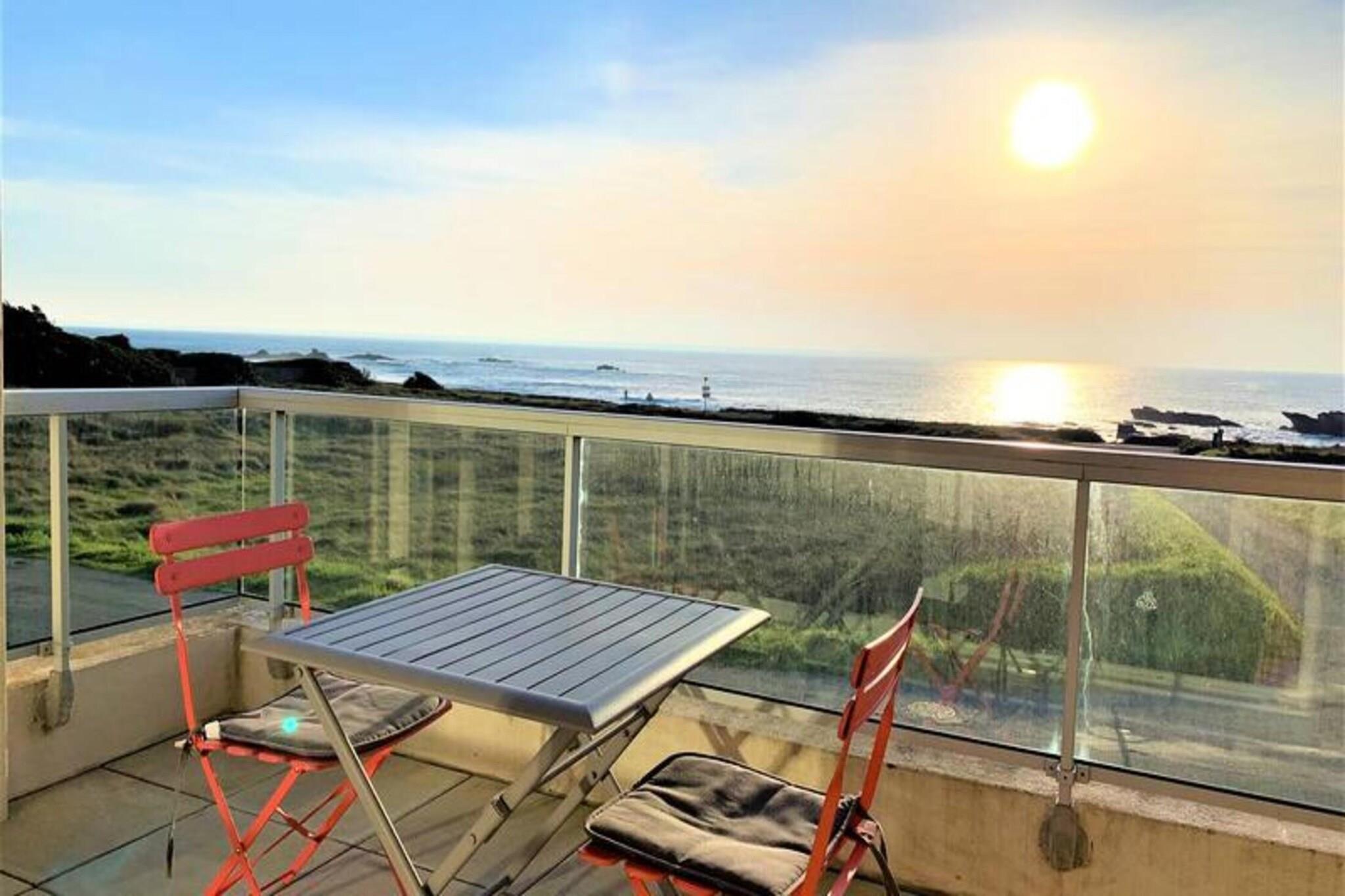 This charming sea-view studio, approximately 42m², accommodates up to 4 people and is located on the 1st floor of a residence near the stunning Côte Sauvage. The studio features a bunk bed and cupboard in the entrance area, with a living room offering a 140cm bed and TV, providing a comfortable space to unwind. A west-facing loggia with a sea view and garden furniture offers a peaceful spot to relax. Pets are not allowed, and the studio is equipped with duvets and a small blanket for added comfort. The property also includes a garage space for convenient parking. Nestled close to the Côte Sauvage, the studio is perfectly located for guests to explore the natural beauty of Quiberon. You can enjoy leisurely walks along the rugged coastline or visit nearby beaches. The residence is also within easy reach of charming cafes and local markets, where you can sample fresh produce or enjoy a delicious meal. The town offers a blend of scenic landscapes and authentic French coastal living. The studio is fully equipped with a modern open kitchen, including a fridge/freezer, oven, microwave, dishwasher, 2-burner induction hob, and coffee maker, making it easy to prepare meals. The bathroom comes with a washing machine for added convenience, and a separate WC ensures comfort. Additional services such as optional end-of-stay cleaning, linen rental, childcare equipment, and Wi-Fi are available for a seamless stay.