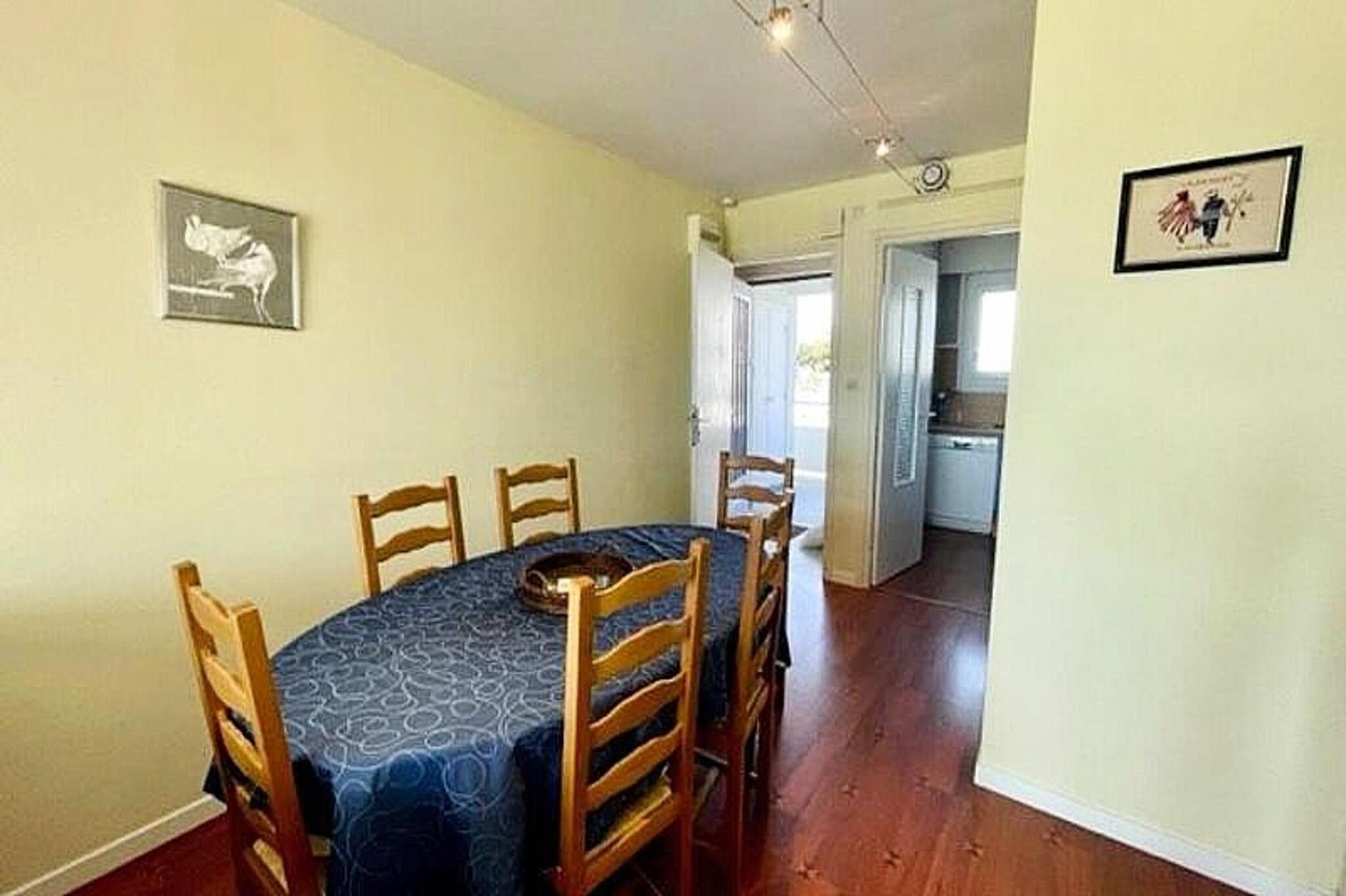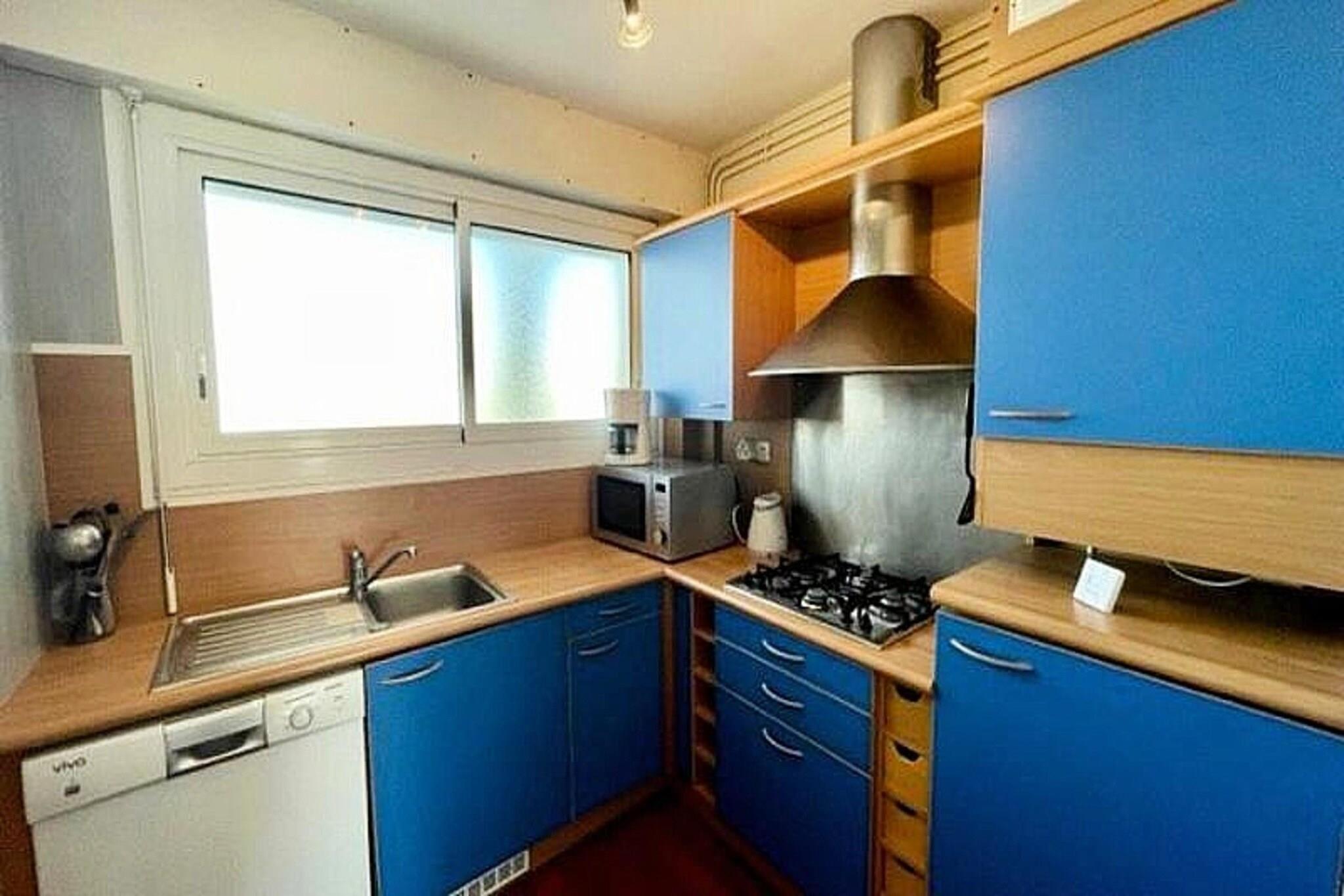 This charming 3-room apartment accommodates up to 4 people and offers a comfortable and inviting atmosphere. Located on the first floor, it features a cozy living room with a sofa and TV, a bedroom with a 140cm bed, and another with two 90cm single beds. The apartment is pet-friendly for a small fee, making it ideal for those traveling with their furry friends. The loggia offers a side sea view, and guests can enjoy the nearby car park and shared bicycle storage. The beds are equipped with blankets for a restful stay. The apartment is ideally located just 800 meters from the center of town, making it convenient for guests to explore local cafes, markets, and shops. Its proximity to the main beach and the Casino offers endless opportunities for relaxation and entertainment. The breathtaking view of Belle-Ile and the ocean provides a scenic backdrop, perfect for those looking to unwind and enjoy the coastal beauty of the area. The apartment features an equipped kitchen with 4 gas burners, a dishwasher, refrigerator, and microwave, making it easy to prepare meals during your stay. The bathroom includes a washing machine for added convenience, and there is also an independent WC. Additional services such as optional end-of-stay cleaning, linen rental, childcare equipment, and a Wi-Fi minibox are available to enhance your stay.
