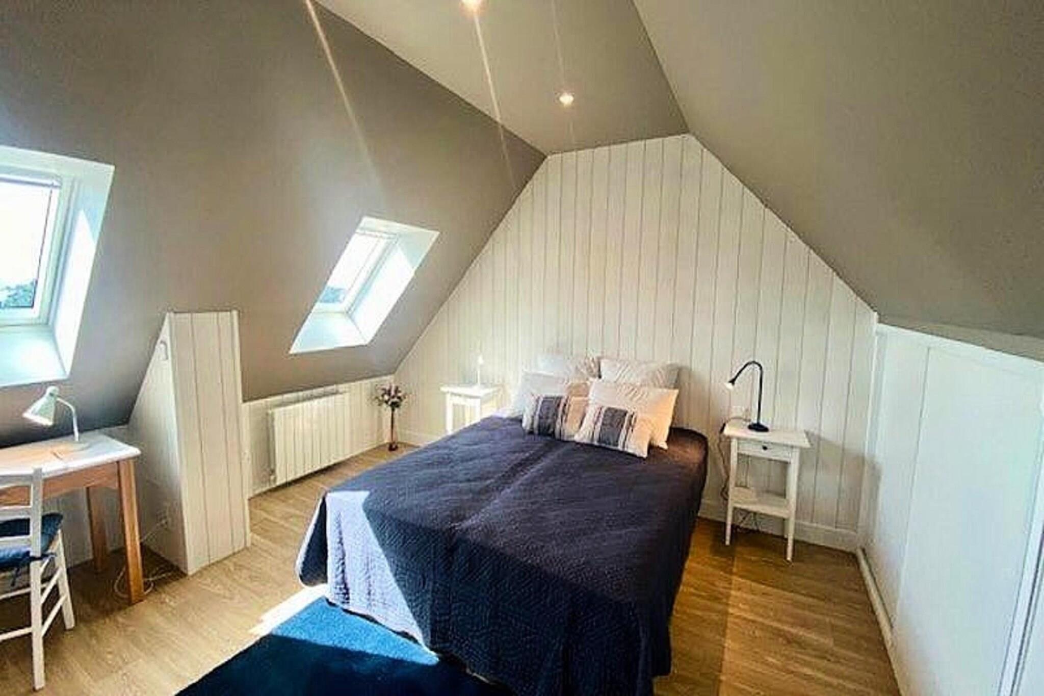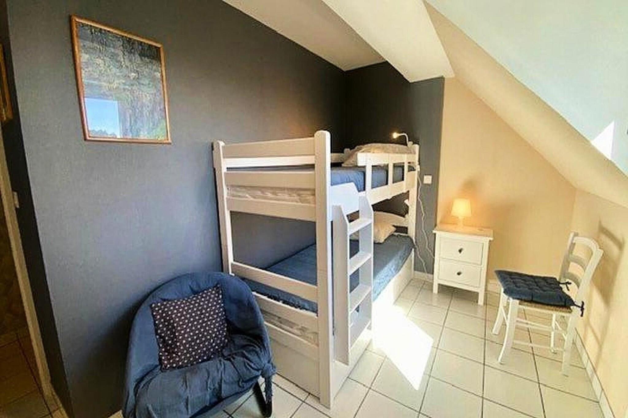 This charming sea-view apartment offers a comfortable stay for 4 to 6 people, with cozy sleeping arrangements including a double bed, bunk beds, and a mezzanine featuring a 160cm bed. The apartment is located on the first floor, providing a peaceful environment overlooking the port and the stunning bay of Quiberon. Pets are not allowed, and Wi-Fi is available for guests' convenience. A private garage (No. 7) is also included, ensuring secure parking during your stay. A consumption package is required, except from May to September, with optional end-of-stay cleaning and linen rental services. Guests can enjoy the surrounding area, with direct access to the port and a nearby coastal path, perfect for scenic walks. The area offers a range of cafes, markets, and local attractions, ensuring a vibrant yet relaxing atmosphere for your stay. Whether exploring the nearby beaches or soaking in the bay’s beauty, this location is ideal for a peaceful getaway or an adventurous exploration of Quiberon’s natural wonders. The apartment includes a fully equipped kitchen, featuring a four-burner electric hob, mini-oven, refrigerator, microwave, dishwasher, coffee maker, and toaster, perfect for preparing home-cooked meals. The living area provides ample space to relax with a sofa and TV, while the separate bathroom with a washing machine adds convenience for longer stays. Guests can also enjoy a large sea-facing balcony with garden furniture, ideal for outdoor relaxation.