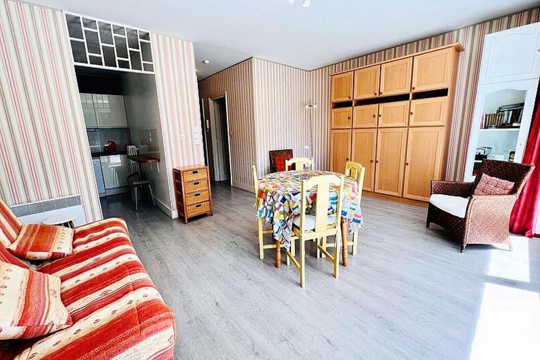 This cozy studio apartment offers a comfortable space for up to 3 people, featuring a folding bed for two and a convertible sofa bed (140 cm). Located on the first floor, it provides a peaceful retreat with a loggia facing south, ideal for enjoying sunny moments. The apartment is not pet-friendly, ensuring a serene atmosphere, and includes an outdoor parking space (No. 12). For added convenience, guests can opt for end-of-stay cleaning and linen rental services. A consumption package is required, except from May to September. Located just a few meters from the beautiful Goviro beach and thalassotherapy center, the apartment offers easy access to nearby attractions. Guests can unwind with a stroll along the beach or explore local cafes and markets, providing the perfect blend of relaxation and adventure. The area is known for its tranquil environment, making it ideal for a peaceful retreat while still offering vibrant activities. The apartment features a fully equipped kitchen with a fridge, electric stove, microwave, and dishwasher, allowing guests to prepare their own meals. The bathroom includes a washing machine, adding convenience for longer stays. The separate WC ensures privacy, while the living area with a TV and comfortable furnishings invites guests to relax after a day of exploration.