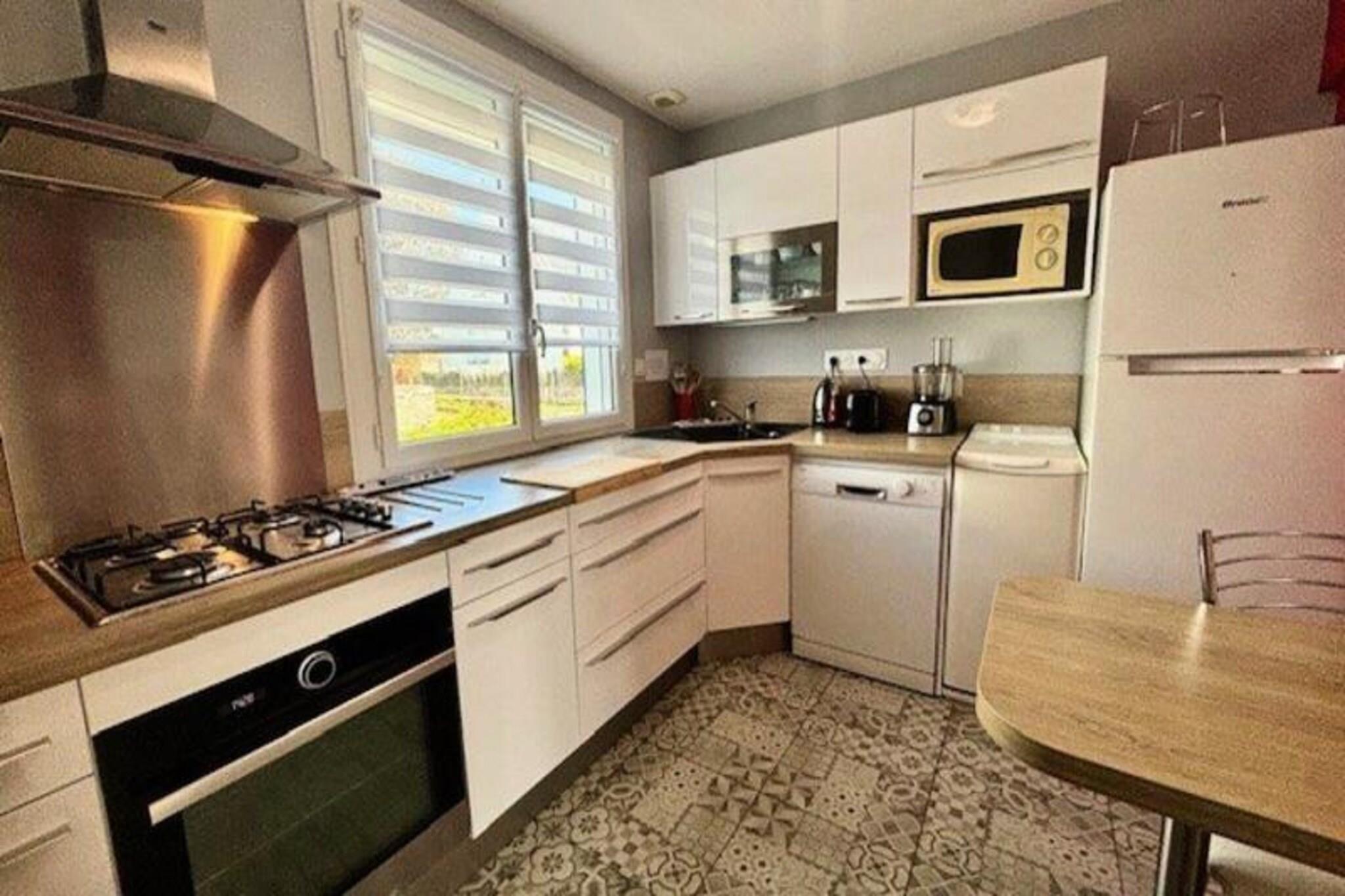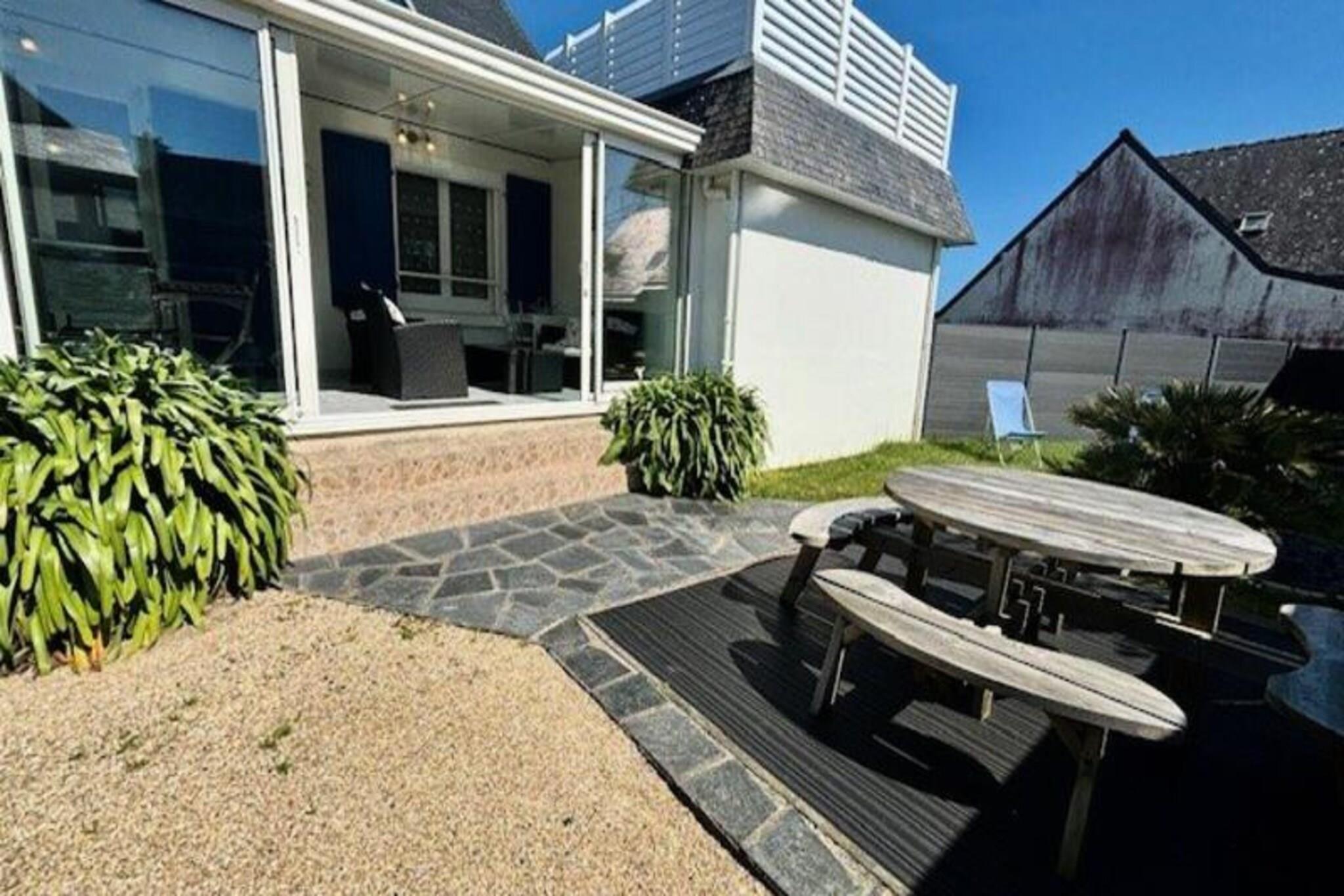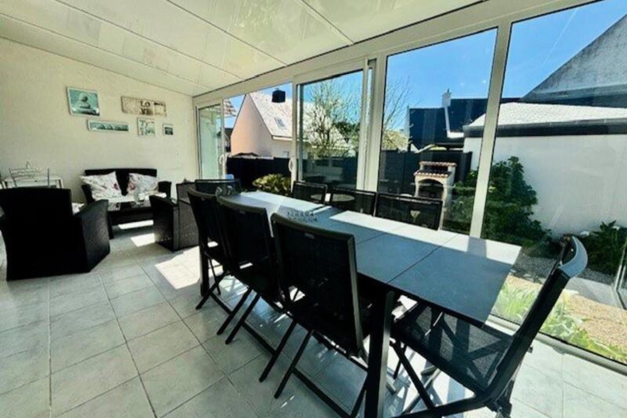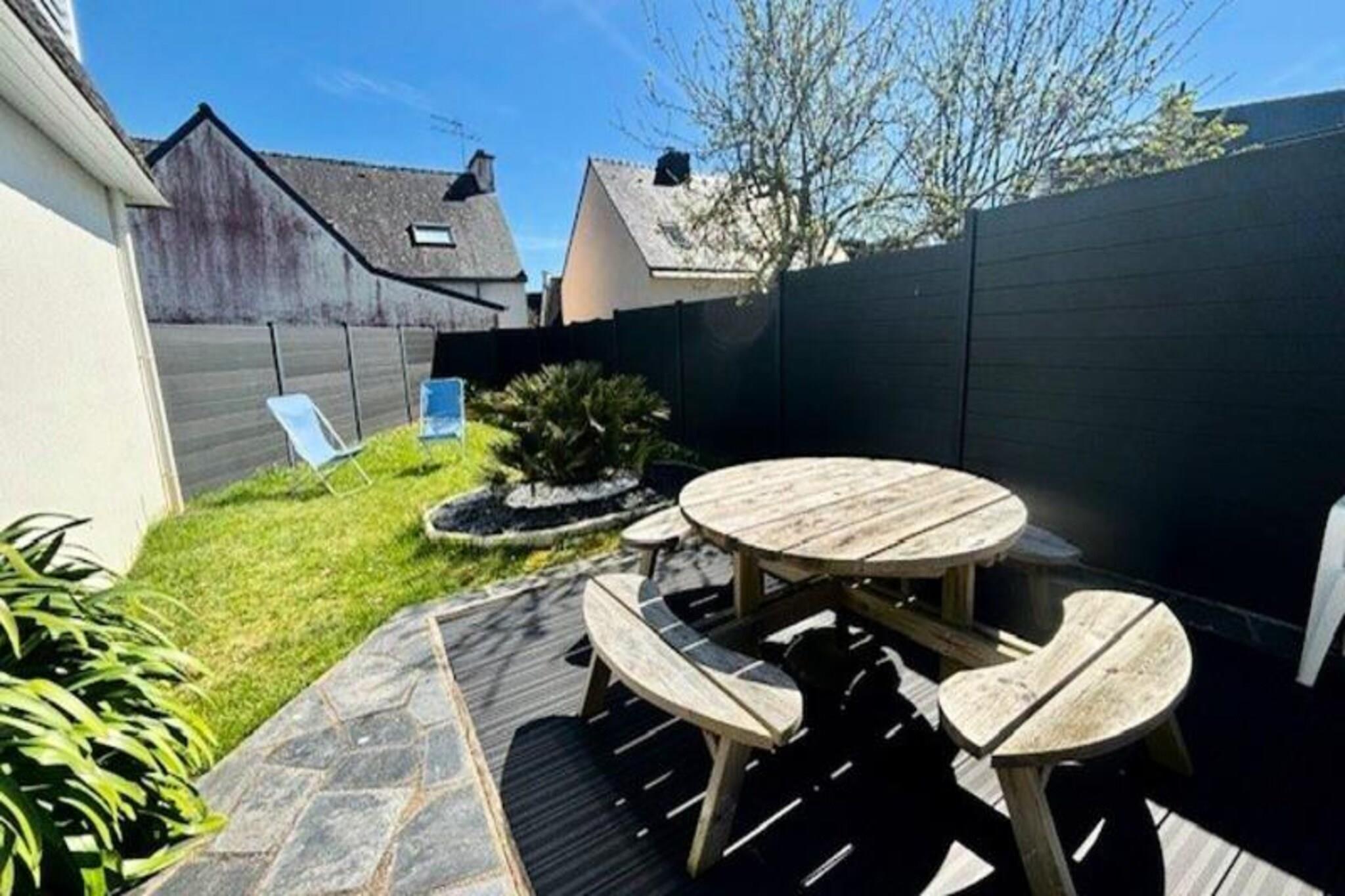 This charming semi-detached 4-room holiday home offers comfortable accommodation for up to 6 guests. It features three bedrooms, each with a 140cm bed, and a spacious living room with a TV. The home is pet-friendly for an additional fee and boasts a fully enclosed, south-facing courtyard with garden furniture and a built-in barbecue, ideal for outdoor relaxation. Parking for up to two cars is available on the property. Located just steps from the beach, the property is between the village of Kermorvan and Port-Haliguen, offering easy access to scenic coastal views. The quiet area is perfect for relaxation, while local cafes, markets, and attractions are nearby. Whether enjoying a beach stroll or visiting local shops, everything you need is within reach. The newly fitted kitchen is fully equipped with a gas stove, oven, microwave, refrigerator, dishwasher, washing machine, coffee maker, kettle, toaster, and blender. A bathroom and separate WC provide added convenience. A veranda with a small living room offers extra space. Additional services, including end-of-stay cleaning, linen rental, and childcare equipment, are available, while heating and energy are included in the weekly price.