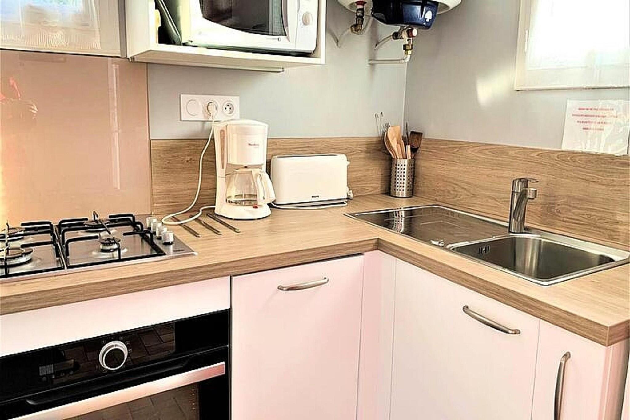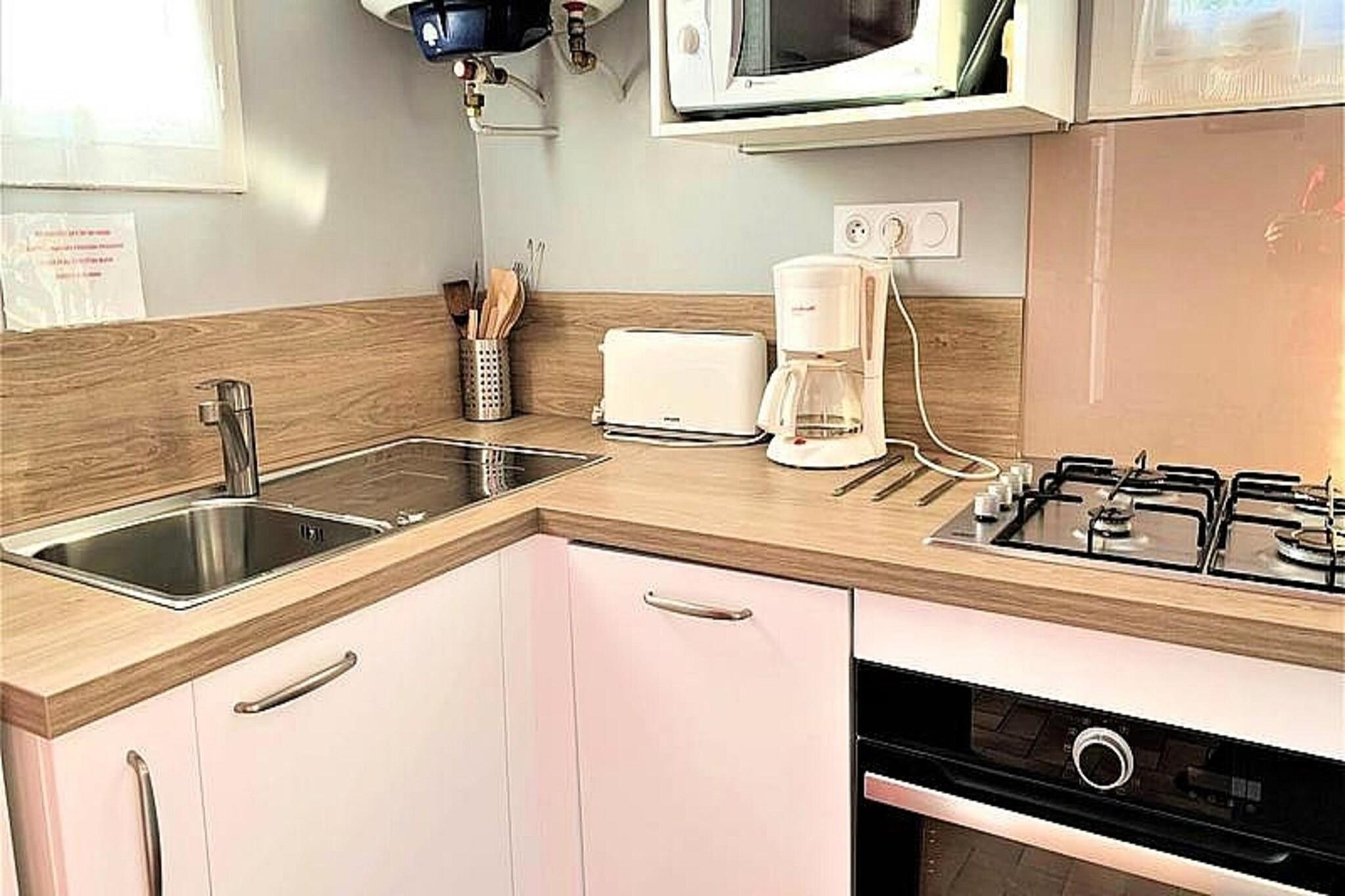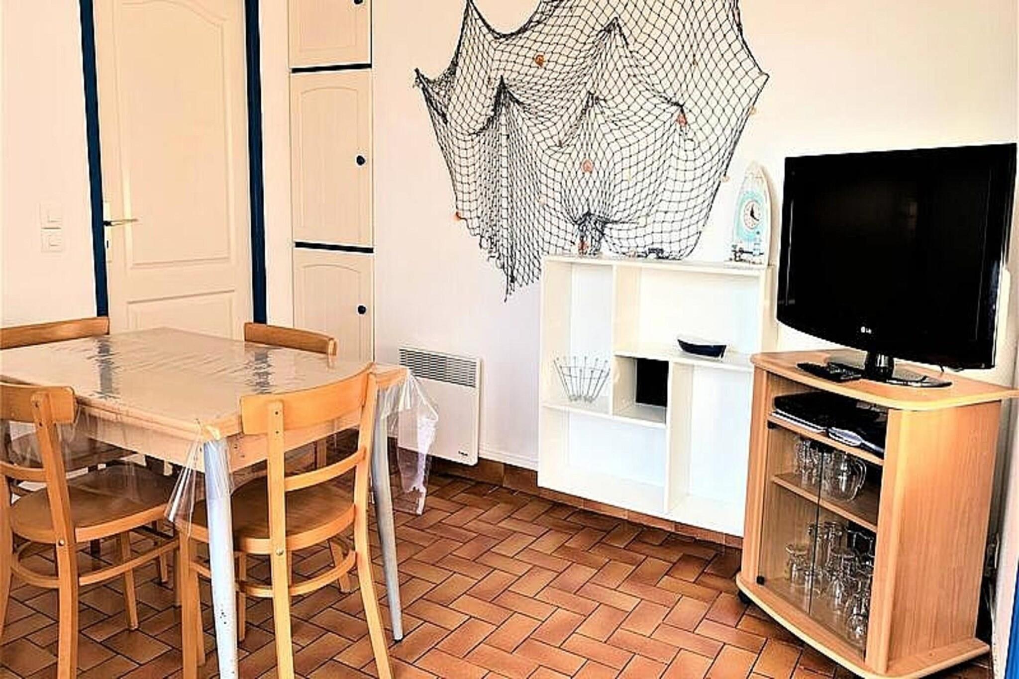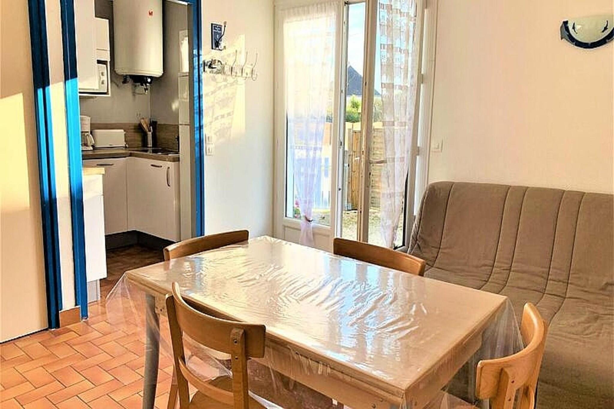 This cozy two-room terraced house, approximately 25m², is perfect for up to 4 guests. It features a living room with a TV and a convertible sofa for 2, along with a comfortable bedroom furnished with a 140cm bed. The property is pet-friendly, allowing small pets for a supplement, making it a great choice for animal lovers. The house includes a south-facing patio with garden furniture and a barbecue, ideal for outdoor relaxation. Parking is available in front of the house. Located just a stone's throw from Castéro beach, this holiday home offers a peaceful environment while being close to the attractions of the bay side. The village of Kermorvant and the Port-Haliguen area are within easy reach, where you can enjoy local cafes, shops, and the charm of the seaside. The quiet setting provides a serene escape while still being conveniently close to the beach and local amenities. Inside, the small but fully equipped kitchen includes a gas stove, oven, microwave, fridge, dishwasher, and coffee maker, perfect for preparing meals during your stay. The bathroom is fitted with a washing machine for your convenience. With amenities like Wi-Fi, heating, and energy included, this property ensures comfort throughout your stay. An optional end-of-stay cleaning service is available for an additional fee.