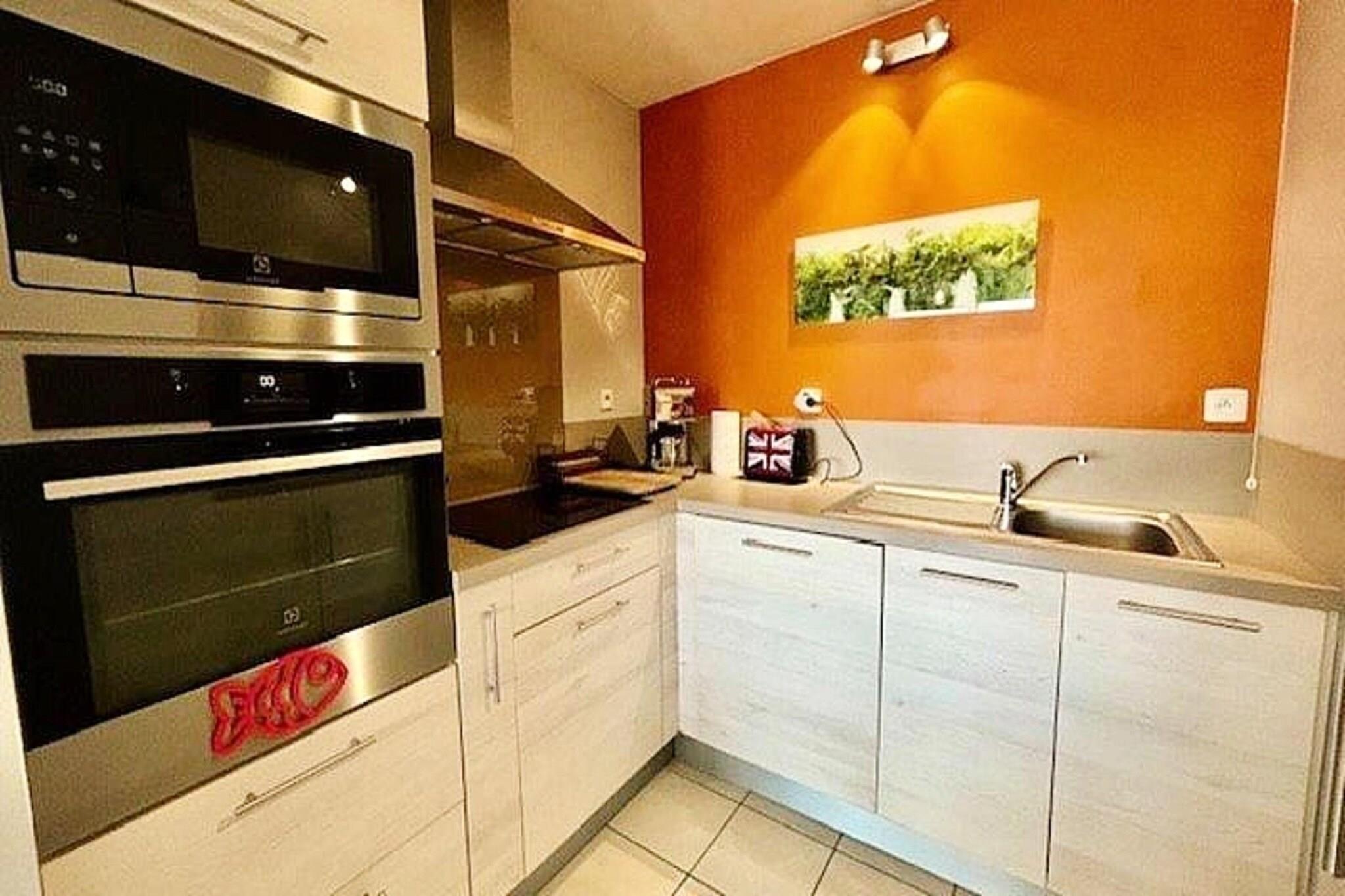 This charming 43m² apartment is ideal for two people, located on the 1st floor of a well-maintained residence. It features a cozy bedroom with a 160cm electric bed and a TV, ensuring a restful sleep. The living room is equipped with a comfortable sofa and a TV, providing a relaxing space. The apartment is non-smoking and pets are not allowed, ensuring a peaceful environment. Bed linens with duvets are provided, and additional services like end-of-stay cleaning and linen rental are available for added convenience. Perfectly positioned just a short stroll from the city center and the beach, the apartment offers easy access to local attractions. Explore nearby cafes, restaurants, and shops, or take a leisurely walk along the beach. The area is known for its beautiful coastline, making it an excellent destination for outdoor enthusiasts, whether you're looking to relax on the beach or enjoy water sports. The apartment includes a fully equipped open kitchen with modern appliances such as a 3-burner induction hob, oven, dishwasher, refrigerator, and microwave. The bathroom comes with a washing machine, and there is a separate WC for added convenience. Step out onto the south-facing balcony to enjoy the sun or take advantage of the included parking space. Heating and energy costs are included in the rental price, ensuring a hassle-free stay.