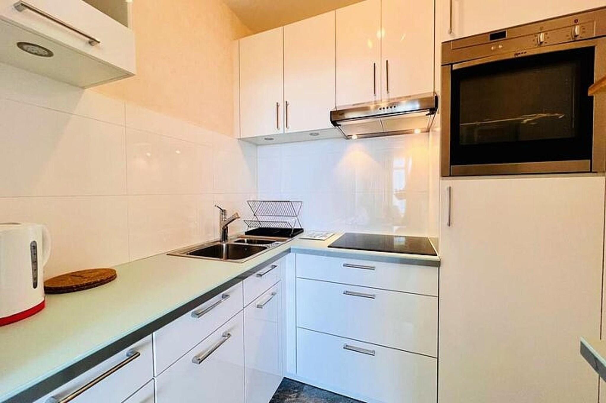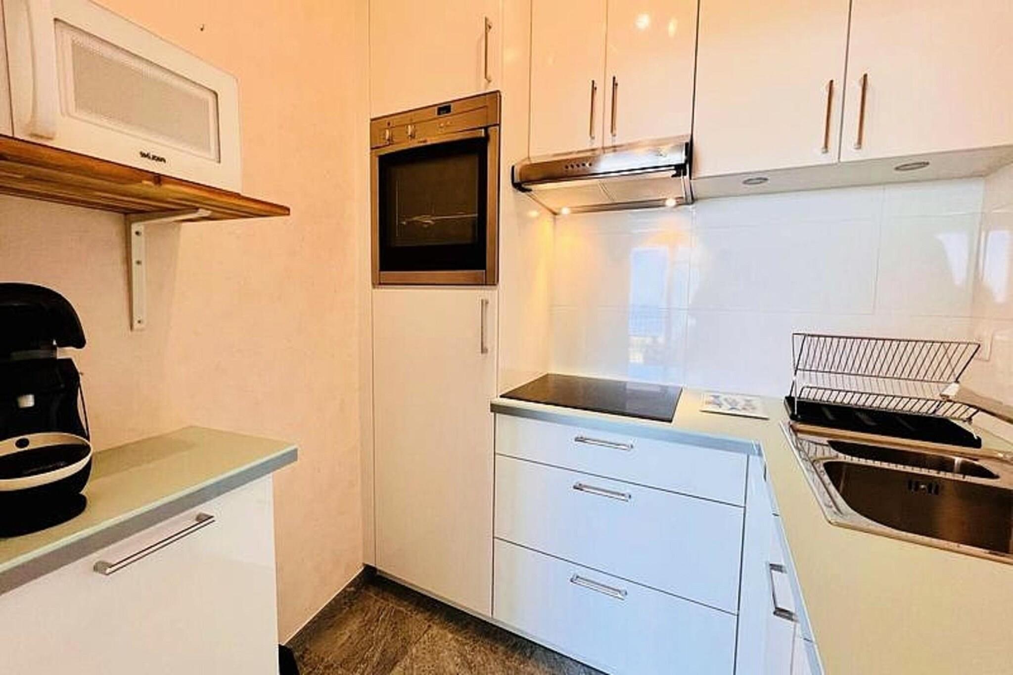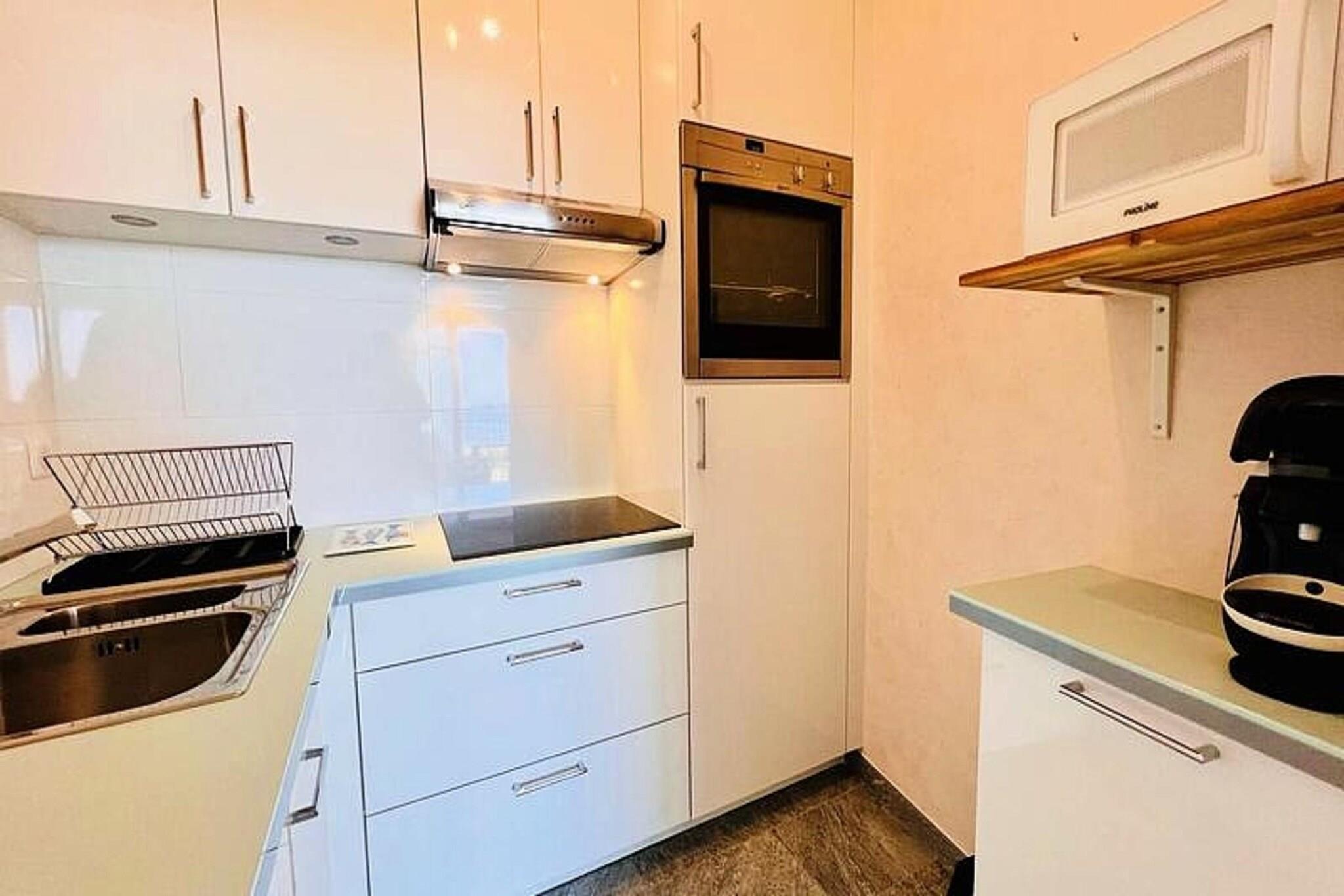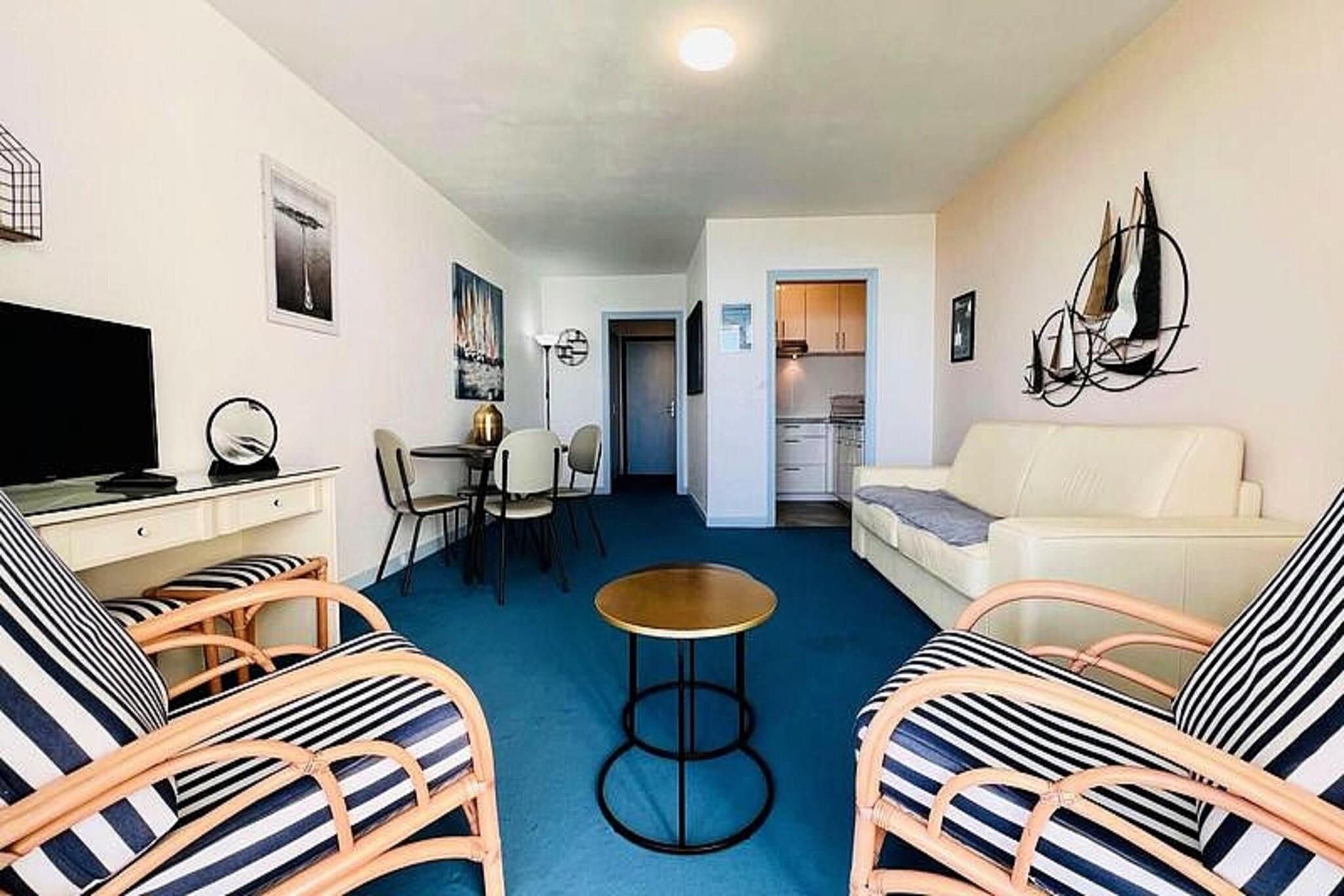 This charming 38m² studio is designed for two guests and features a comfortable living area with a 140 cm convertible sofa, a TV, and a dining table with chairs. The south-facing balcony offers breathtaking views of the islands of Houat and Belle Île en Mer, perfect for relaxing in the sun. This property is non-smoking and pets are not allowed. Parking is available within the residence, providing added convenience during your stay. Located directly opposite the Pointe du Conguel, this studio is ideally positioned to enjoy both tranquil seaside views and easy access to nearby shops and amenities. The beautiful coastline is just steps away, offering opportunities for scenic walks and water activities. Enjoy a variety of local cafes and markets where you can sample fresh regional products and seafood. The studio is equipped with a fully functional kitchen, including an oven, microwave, refrigerator with freezer, 3-burner induction hob, dishwasher, and coffee makers (filter and Tassimo). The bathroom includes a washing machine and WC for your convenience. Optional services like end-of-stay cleaning, linen rental, and WiFi are available to enhance your stay. With its perfect location and modern amenities, this apartment offers a great base for exploring the area.
