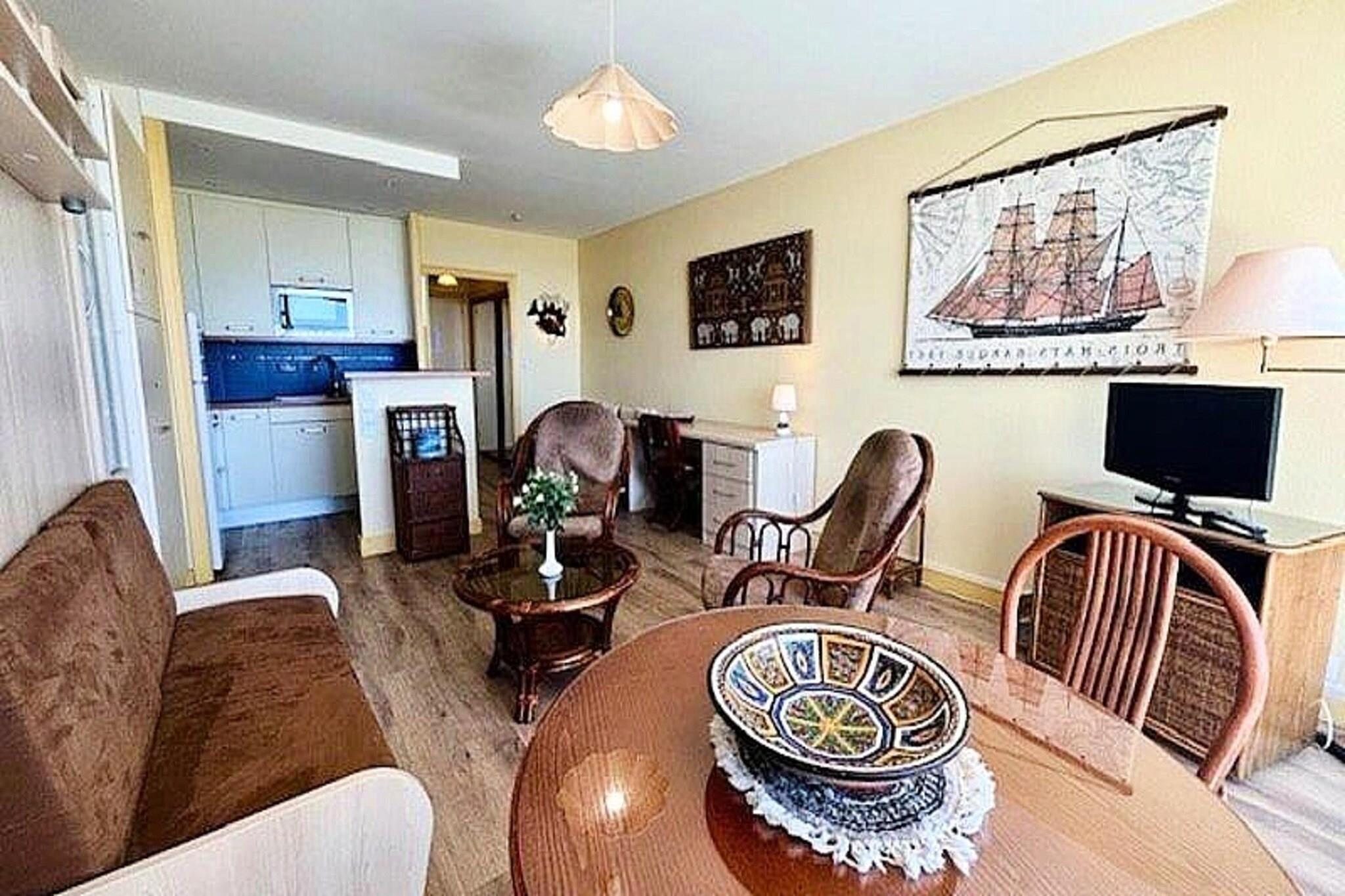 This charming 35m² studio is ideal for up to 3 guests, featuring a living room with a 160cm fold-out bed and a single bed, both equipped with blankets. A TV is provided for entertainment. The apartment also includes a private balcony offering a breathtaking sea view, facing south-west, with garden furniture perfect for relaxing. Pets are welcome for an additional fee of EURO4 per day. Free parking is available on the property, making it easy for you to explore the area. Located just 150 meters from the beach and near the Thalassotherapy center, this studio offers easy access to the beautiful coastline. The Pointe du Conguel is nearby, providing stunning views and walking trails. Guests can also enjoy a variety of local cafes, restaurants, and markets where fresh seafood and regional specialties are available, making it a perfect spot to experience local flavors. The studio features a well-equipped kitchen area with a fridge-freezer, induction hob, oven, and dishwasher. A bathroom with WC ensures convenience and comfort throughout your stay. The apartment is also furnished with a range of optional services such as end-of-stay cleaning, linen rentals, and WiFi minibox for added comfort during your visit.