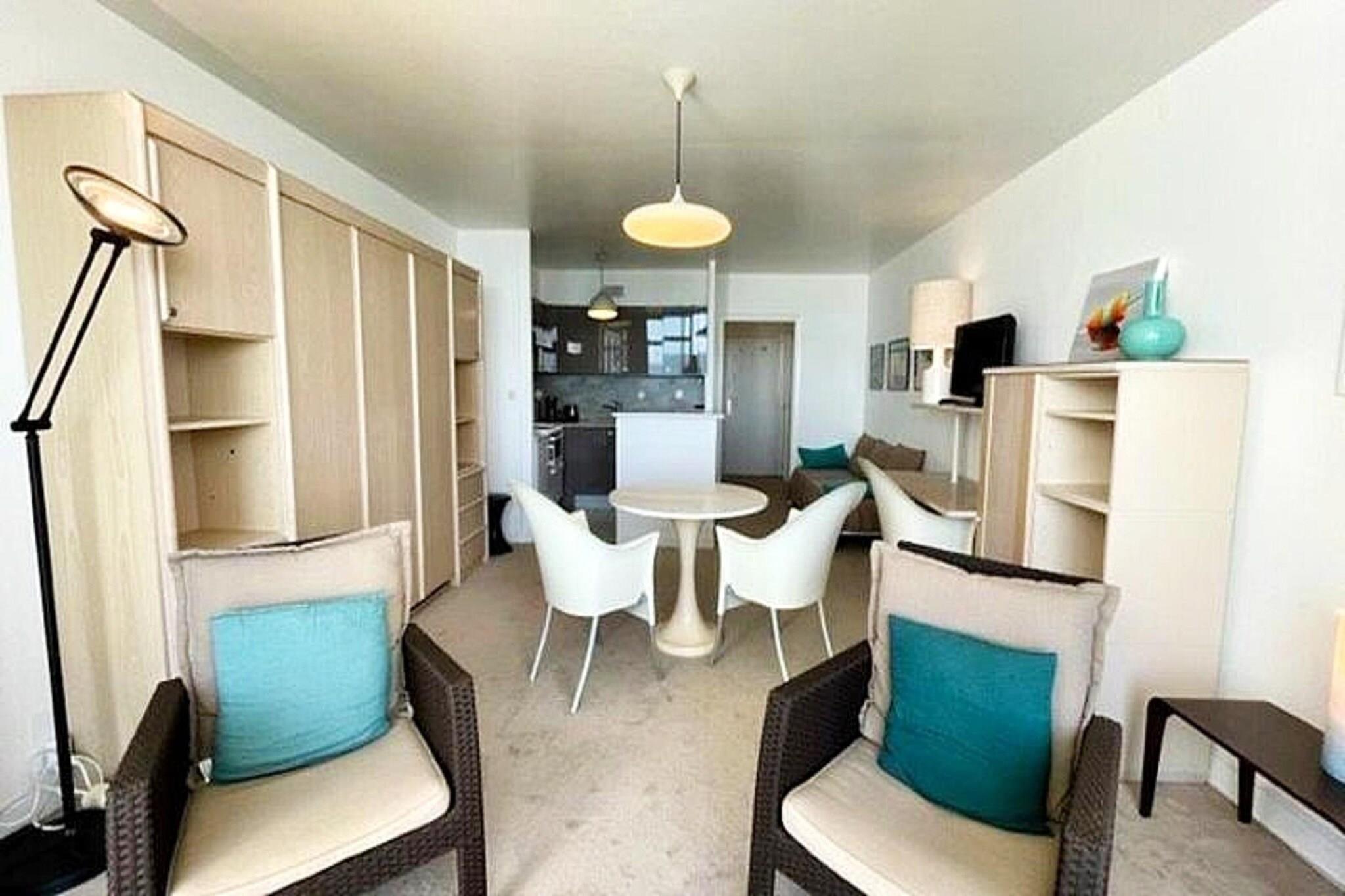 This beautifully renovated sea-facing studio, ideal for up to three guests, offers a comfortable and stylish stay. It features a living room with a 140cm folding bed, a 90cm single bed, and a TV. The apartment includes a south-facing balcony with garden furniture, providing breathtaking views of Houat and Belle île en Mer. The property is pet-friendly with a small additional charge for pets. Guests will find ample storage space in the entrance area, ensuring a clutter-free environment. The studio is equipped with blankets and is non-smoking. Located just 150 meters from the first beaches and near Thalassotherapy and Pointe du Conguel, this apartment provides the perfect base for beach lovers and those wanting to enjoy the outdoors. The area is also close to cafes, restaurants, and local markets, allowing guests to experience the vibrant local culture and enjoy fresh produce and seaside dining options. Whether you’re exploring the coastline or strolling through the nearby shops, this location offers something for everyone. The studio is fully equipped with an open kitchen, featuring a fridge, dishwasher, ceramic hobs, and an oven, allowing guests to prepare their own meals. The modern bathroom is fitted with a walk-in shower and a WC. Additional services such as end-of-stay cleaning, linen rental, childcare equipment, and a Wi-Fi minibox are available, ensuring a hassle-free stay with all the conveniences of home.
