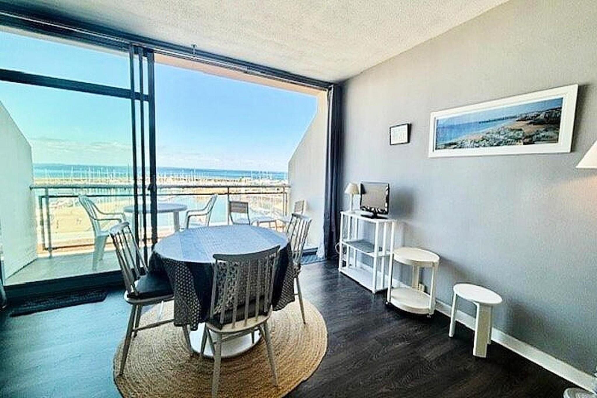This charming, renovated sea view studio is perfect for two people and offers a comfortable and relaxing stay. Located on the first floor of a residence with an elevator, it features a cozy living room with a 140cm bed and a TV for entertainment. The studio is non-smoking and pet-friendly, with a small supplement for pets. The sea-facing balcony, with garden furniture, provides a serene spot to relax and enjoy the views. The apartment is well-equipped and includes heating, making it a cozy retreat for any season. The studio enjoys an exceptional view of the marina, allowing guests to take in the beauty of the surrounding area. The property is ideally situated near the center, providing easy access to local cafes, shops, and markets. Whether you’re interested in dining out, shopping for local goods, or simply strolling along the marina, this location offers a variety of activities and attractions for guests to enjoy. Inside, the studio features a fully equipped kitchen area with a ceramic hob, refrigerator, oven, dishwasher, and washing machine, offering convenience for longer stays. The bathroom includes a WC, and the outdoor parking space ensures a hassle-free stay. Additional services such as end-of-stay cleaning, linen rental, childcare equipment, and Wi-Fi minibox are available for extra comfort.