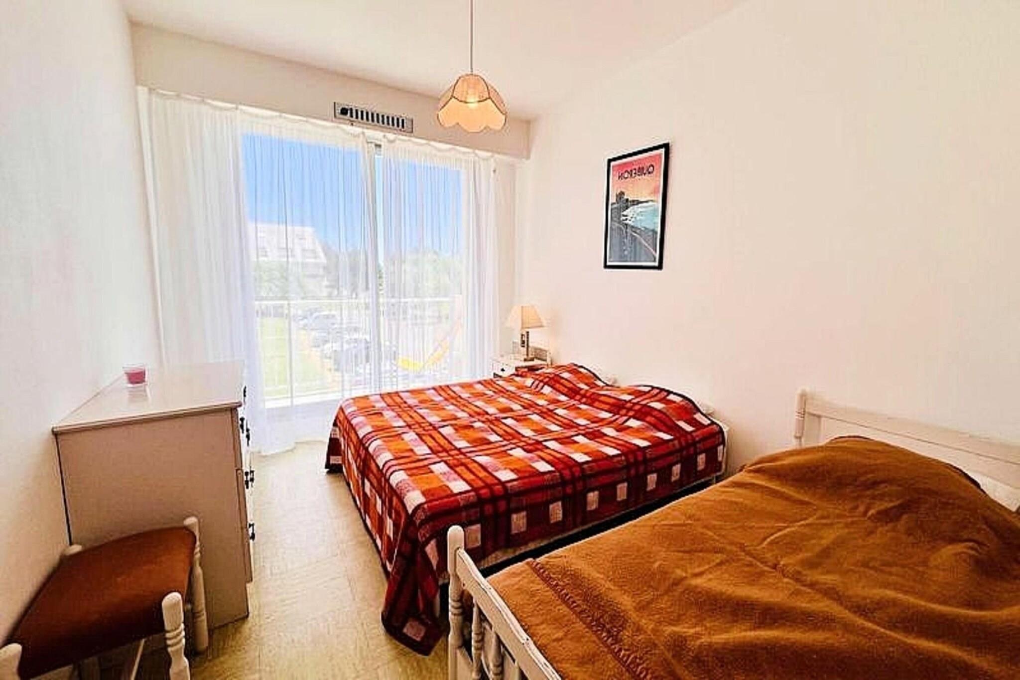 This pleasant two-room apartment offers a comfortable stay for up to 4 people. The living room features a TV and a 140cm convertible sofa, perfect for unwinding after a day of exploration. The bedroom includes three single 90cm beds, ideal for families or friends. The apartment is pet-friendly, with a supplement, and also includes free parking in front of the residence. The apartment is ideally located for those wishing to enjoy nearby attractions, cafes, and markets. With stunning sea views from the east-facing balcony and another west-facing balcony, guests can enjoy the best of both sunrises and sunsets. The property is just a short walk from the local amenities, making it easy to experience the charm of the area. The fully equipped kitchen includes a fridge freezer, microwave, stove, oven, and washing machine, offering convenience for longer stays. The bathroom includes a WC, providing additional comfort and privacy. Optional services, including end-of-stay cleaning, linen rental, childcare equipment, and Wi-Fi minibox, are available to enhance your stay.