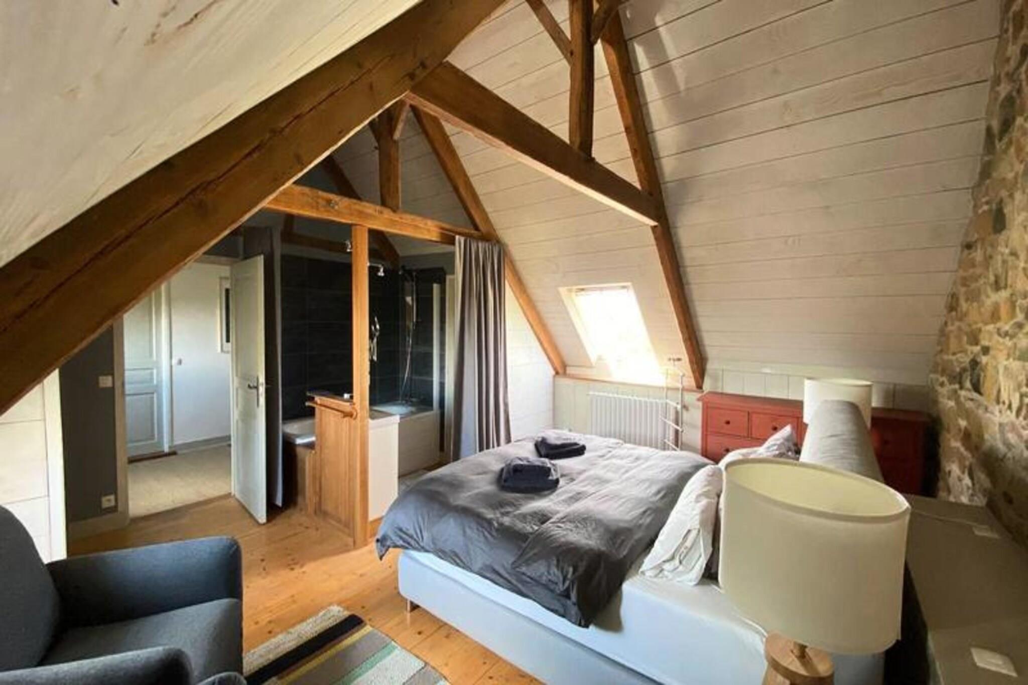 Velkommen til Douarenn Braz, et oase af fred beliggende i hjertet af Grand Trégor. Dette gamle og rummelige bondehus, fuldstændig renoveret i 2023, inviterer dig til en autentisk ferie i den charmerende by Plougrescant, beliggende i Côtes d'Armor (22). Nyd den beroligende atmosfære, omgivet af grønt og lullet af bølgernes blide mumlen, og oplev regionens vidundere. Ejendommen: Douarenn Braz er fordelt på to solide granitbygninger, der tilbyder næsten 400 m2 plads, og består af en lille gîte, der støder op til hovedbygningen. Den store have på 8000 m2, der ikke er overset, giver dig mulighed for fuldt ud at nyde den omkringliggende ro. Med en lille udsigt over havet, en strand 10 minutter væk til fods, og moderne faciliteter såsom WiFi, Sonos, satellit-tv-modtagelse, pejse og brændeovne, vil dit ophold være synonymt med komfort og sindsro. Nær: Udforsk det omkringliggende område ved at opdage Pors Hir-stranden kun 10 minutters gang derfra, ideel til svømning selv ved midtvande. 5 minutters gang væk venter Ajoncs-kysten og dens berømte kløft på dig. Vandsportsentusiaster kan tage til Penvenan Yacht Club, blot 10 minutters kørsel derfra. Historie og renovering: Douarenn Braz, tidligere kendt som "Keravel-gården", blev omhyggeligt renoveret af et lidenskabeligt par fra Picardie i begyndelsen af ??2000'erne. Hovedbygningen, udstyret med ædle materialer og moderne komfort, har bevaret ægtheden af ??bretonsk konstruktion. Haven, der er skabt med kærlighed, byder på mystiske hjørner, der fremmer dagdrømmer. Bevares privatliv: På en grund på 7.400 m2 er ejendommen stort set omsluttet af en traditionel granitvæg og planteskærme, og dermed bevares det totale privatliv for sine beboere. De forskellige rum, fra gadesiden til den store lysthave, byder på bevarede steder at slappe af. Huset: I stueetagen kan du opdage et stort udstyret køkken, en rummelig spisestue, 2 indbydende opholdsstuer, 2 soveværelser med dobbeltsenge med privat badeværelse, et børneværelse på mezzaninen, et kontor og et vaskerum. Ovenpå tilbyder to store soveværelser med eget badeværelse en storslået udsigt over havlandskabet, en sovesal. Sommerhuset: Sommerhuset, der støder op til, men helt uafhængigt, byder på en stue, et veludstyret køkken, komfortable soveværelser og et badeværelse. Perfekt til at bevare privatlivets fred for to grupper, det har også en privat have. Bevares privatliv: Hver af boligenhederne har sin egen indgang, og dermed bevares privatlivets fred for beboerne. Uderummene tilbyder beskyttede steder at trække sig tilbage, hvad enten det er i gîtens have eller i den store lysthave. Kom og oplev en unik oplevelse i Douarenn Braz, hvor ægteskabet mellem autenticitet, komfort og intimitet skaber et uforglemmeligt ophold i hjertet af Grand Trégor. Book nu og lad dig fortrylle af charmen ved denne bretonske bolig, der er renoveret med lidenskab.