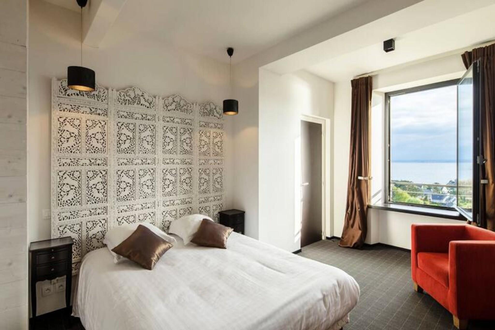 Velkommen til Château de Ker Nelly i Trébeurden Oplev en enestående historisk bolig beliggende i hjertet af den storslåede Côte de Granit Rose i Bretagne. Dette omhyggeligt restaurerede slot fra det 19. århundrede kombinerer gammeldags charme og moderne komfort for at tilbyde dig en unik og uforglemmelig oplevelse. Idylliske rammer for dit ophold: Château de Ker Nelly er omgivet af en lukket og fredelig have, der tilbyder ro og privatliv til sine beboere. Indenfor vil du nyde rummelige og lyse opholdsrum, herunder: Komfortable lounger med pejse til hyggelige stunder. En stor spisestue ideel til hyggelige måltider. Et fuldt udstyret køkken til at tilberede lækre måltider. Elegante og komfortable værelser Med 8 soveværelser kan slottet rumme op til 22 personer, perfekt til ophold med familie, venner eller til professionelle arrangementer. Detaljer om værelserne: - Soveværelse 1: 1 dobbeltseng (160 cm) med brusebad og toilet (stueplan). - Soveværelse 2: 1 dobbeltseng (160 cm) med badeværelse (1. sal). - Soveværelse 3: 2 enkelt køjesenge (1. sal) deler badeværelse med soveværelse 2. - Soveværelse 4 (sovesal): 6 enkeltsenge inklusive 2 køjesenge, med badeværelse og toilet (1. sal). - Soveværelse 5: 1 rund dobbeltseng, med brusebad og toilet (1. sal). - Soveværelse 6: 2 enkeltsenge, der deler badeværelse og toilet med soveværelse 7 (2. sal). - Soveværelse 7: 2 enkeltsenge, deler badeværelse og toilet med soveværelse 6 (2. sal). - Soveværelse 8: 2 enkeltsenge, med privat brusebad og toilet (2. sal). - Spilleværelse: udstyret med en sovesofa (1. sal). - Yderligere toiletter er tilgængelige i stueetagen og på 1. sals repos. Uderum og fritid: En lukket have med gynger, grill, havemøbler, liggestole og to store borde til dine udendørs måltider. Privat og sikker parkering med havudsigt. Aktiviteter i nærheden: strande, sejlerskoler, vandrestier og vandsport. Udstyr og tjenester inkluderet (eller valgfrit): - Højhastighedsinternet til at arbejde eller forblive forbundet. - Private concierge-tjenester: levering af måltider, cykeludlejning, massage, temaaftener (pandekager, fødselsdage) og meget mere. - Sengelinned og håndklæder er inkluderet i rengøringspakken (obligatorisk mulighed). - levering af dine dagligvarer valgfrit. Bemærk venligst: - Kæledyr er tilladt efter forudgående anmodning. - Et depositum på EURO2.500 er påkrævet ved indrejse. - Obligatorisk rengøring og sengelinnedpakke: 600 EURO. - Et ideelt sted til dine seminarer og arrangementer - Château de Ker Nelly er den perfekte ramme for dine seminarer, filmoptagelser, fotoshoots, cocktails eller private receptioner. Med elegante og tilpassede rum tilbyder vi en nøglefærdig organisation, herunder: - Sports-, kultur- og trivselsaktiviteter. - Gastronomiske oplevelser (forplejning, smagninger). - Tilbyd en uforglemmelig oplevelse til dine gæster eller kolleger på dette unikke sted, der er gennemsyret af historie. Book nu! Oplev elegancen og ægtheden af ??et ophold i et historisk slot i hjertet af Bretagne. Vi glæder os til at byde dig velkommen og gøre dit ophold helt perfekt.
