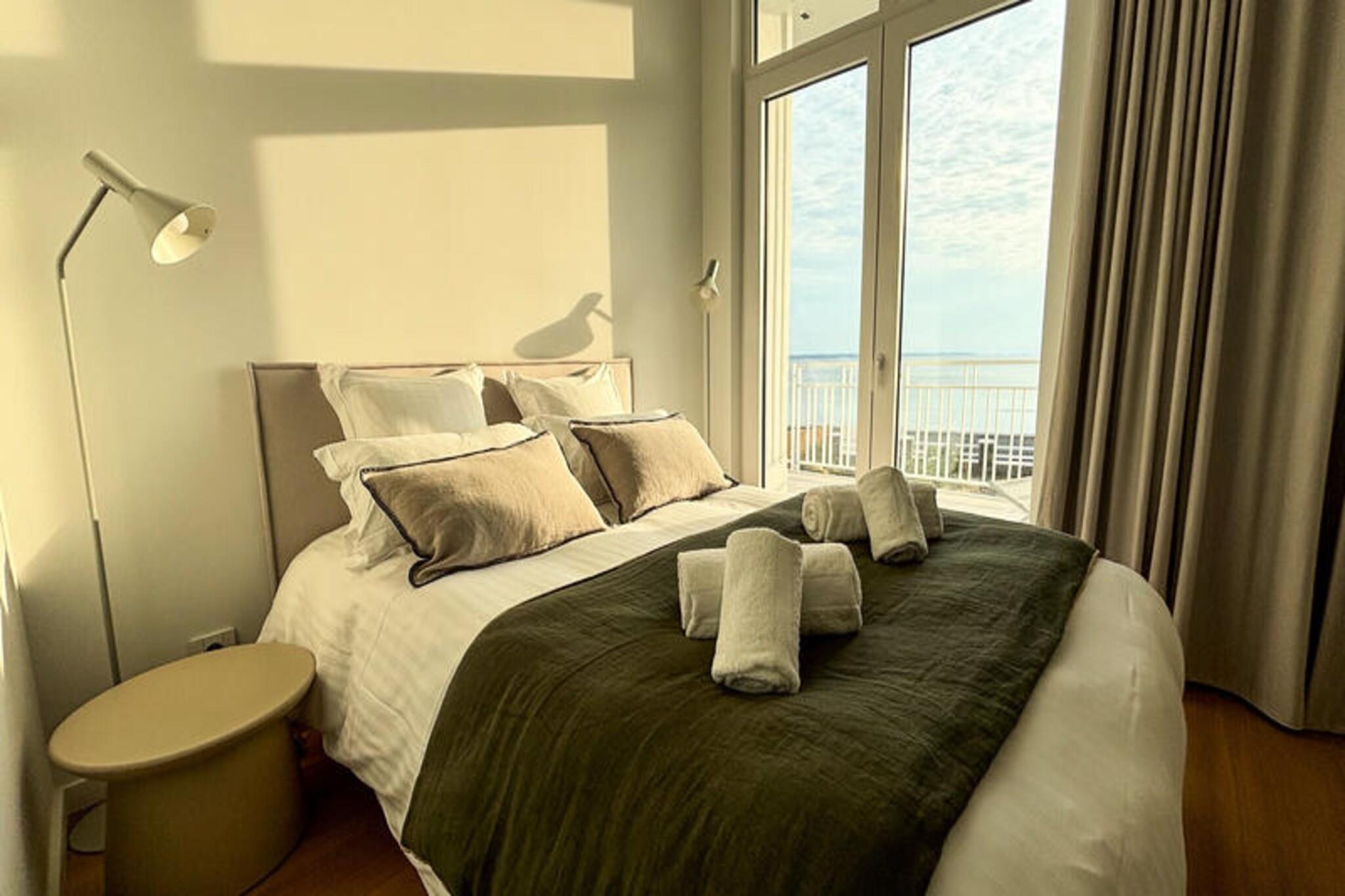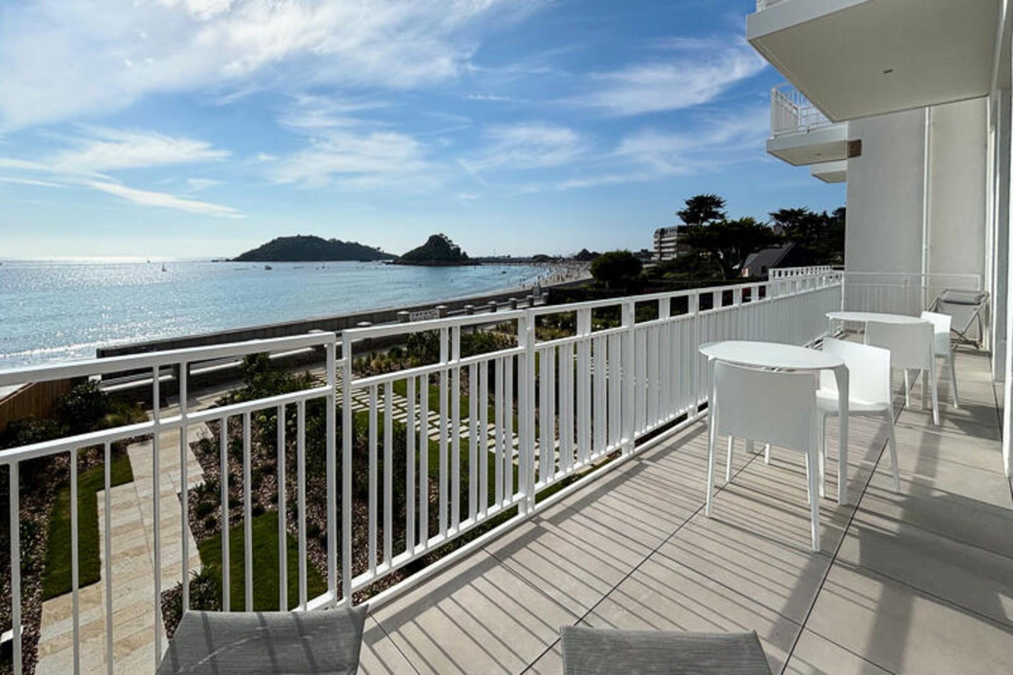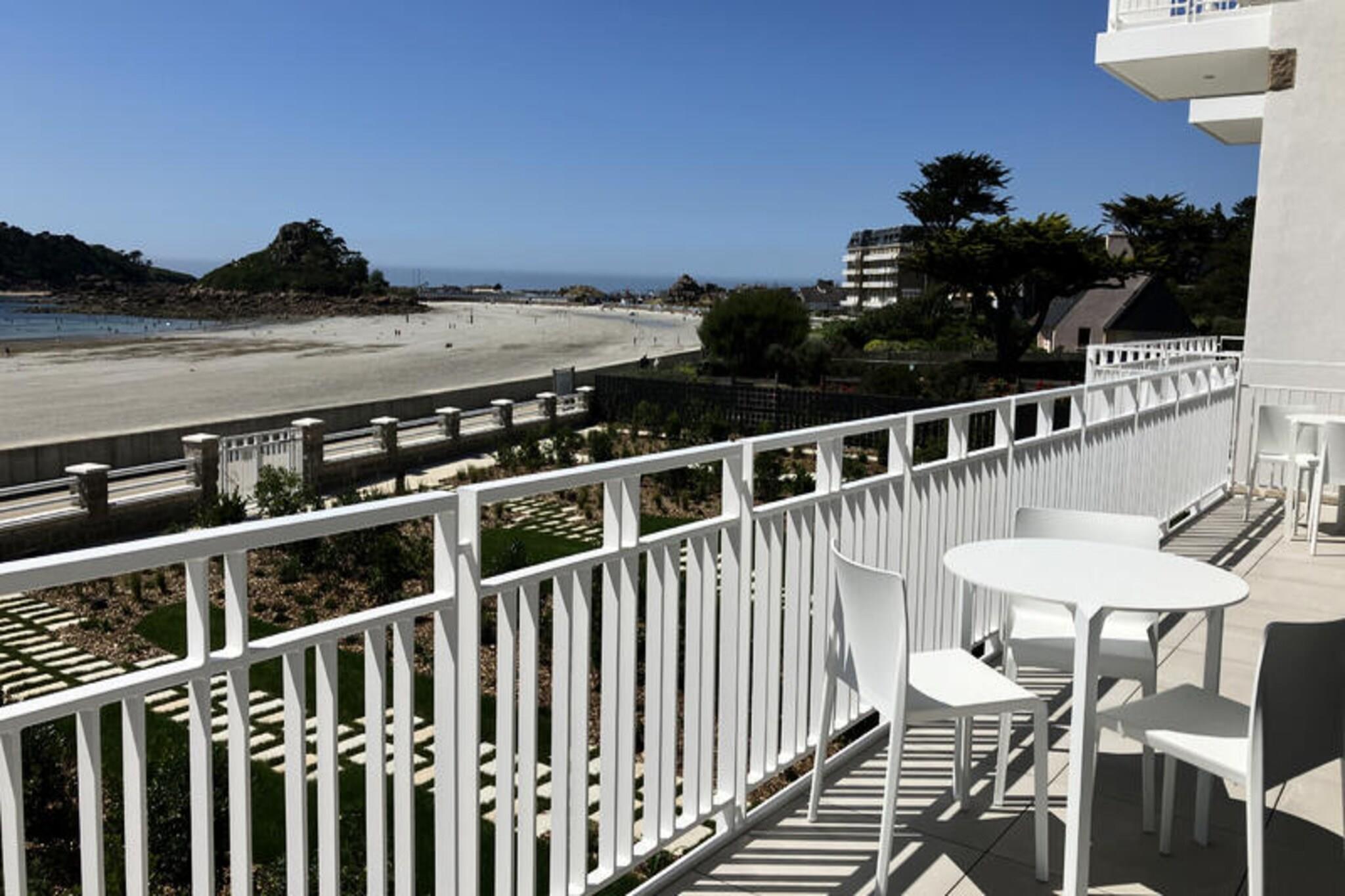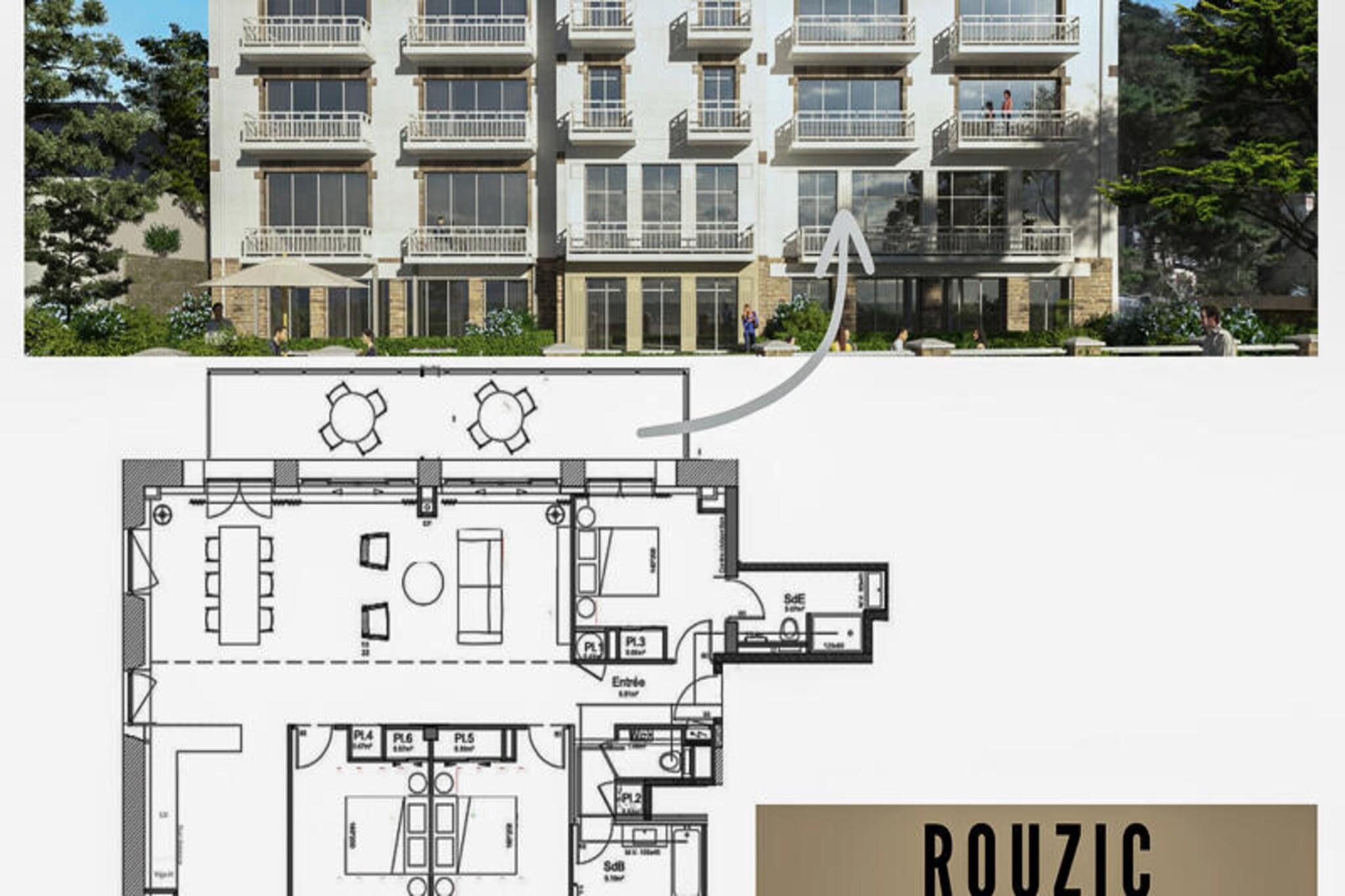 Velkommen til “Rouzic”, vores storslåede 4-værelses lejlighed beliggende i Centre Philippe-Joppé, designet af det berømte arkitektfirma Wilmotte & Associés. Med direkte adgang til Tresmeur-stranden og en betagende havudsigt er vores bolig det ideelle sted for en uforglemmelig badeferie. "Rouzic" tilbyder dig et enestående boligmiljø med sine storslåede uderum og komfortable interiør. Slap af på den solrige terrasse på 53 m2, eller nyd øjeblikke af hygge på balkonen på 20 m2 med en betagende udsigt over havet. Indenfor er den lyse stue på 58 m2 det ideelle sted at samles med familie eller venner efter en dag med udforskning. De 3 soveværelser, inklusive en master suite med påklædningsværelse og privat badeværelse, garanterer optimal komfort, ledsaget af et ekstra badeværelse og et separat toilet for større praktiske muligheder. Du vil også have adgang til en indendørs swimmingpool, der er opvarmet hele året rundt (15mx4m), så du kan slappe af uanset vejret. En parkeringsplads er tilgængelig for dig, med en elbilterminal til rådighed. Boligen er sikker med tilstedeværelsen af ??en vagt på stedet, hvilket sikrer din ro i sindet. Derudover er en elevator tilgængelig for at gøre din rejse lettere. Bemærk venligst, at det nye Philippe-Joppé Center åbner officielt den 13. juli 2024. De fremlagte billeder er ikke kontraktlige, nogle er 3D-visuelle billeder, andre blev taget under optagelserne af modellejligheden i februar 2024, som præsenterer en atmosfære og møbler, der ligner hinanden. på alle måder til dem i "Rouzic" lejligheden. Vi ser frem til at byde dig velkommen til "Rouzic" til en uforglemmelig ferie ved havet i Bretagne. Book nu for at få en unik oplevelse i vores lille hjørne af paradis.