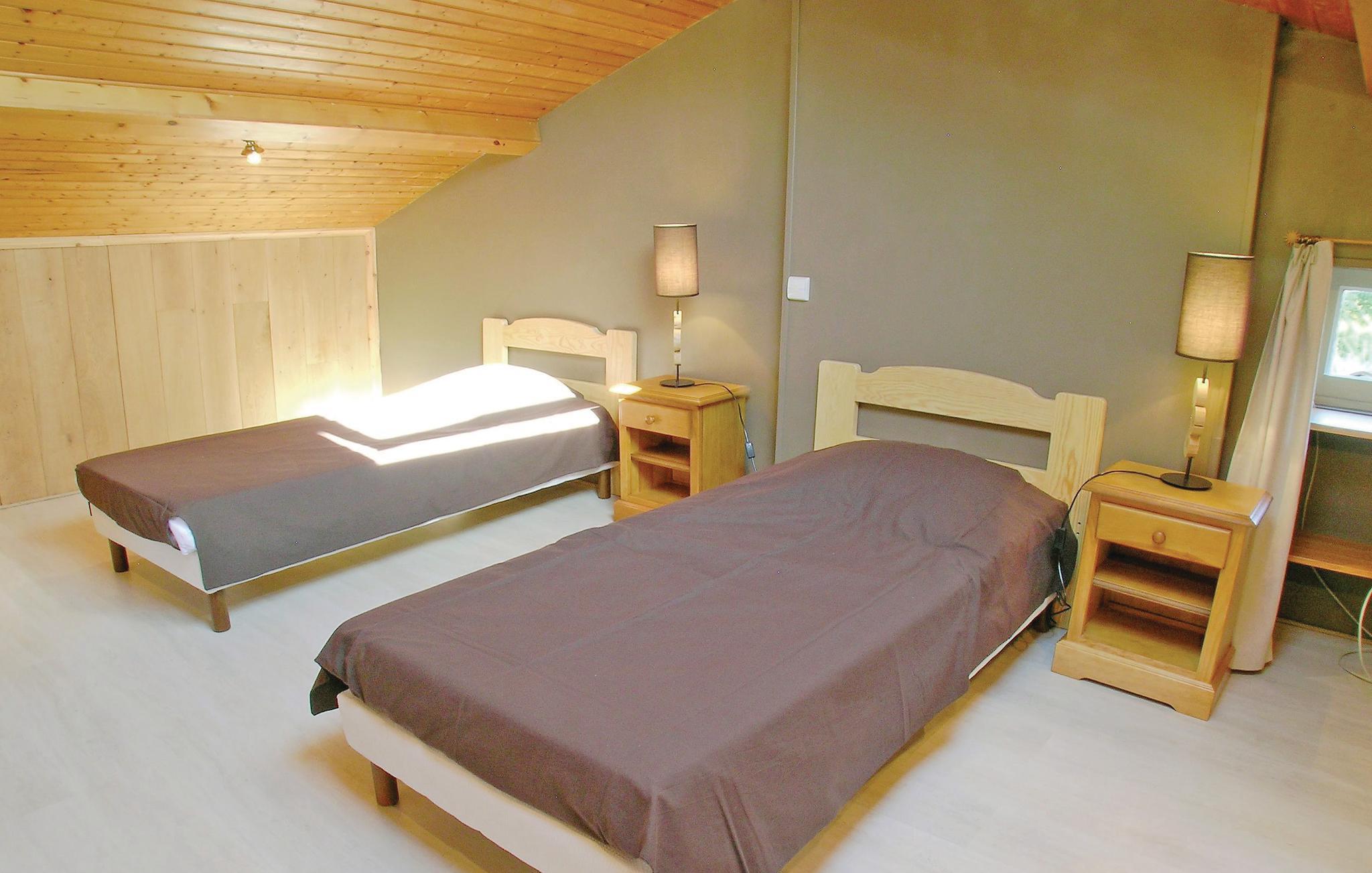 Dobbeltværelset i stueetagen har sit eget brusebad. Enkeltsenge i de to værelser på øverste etage kan sammensættes efter anmodning.