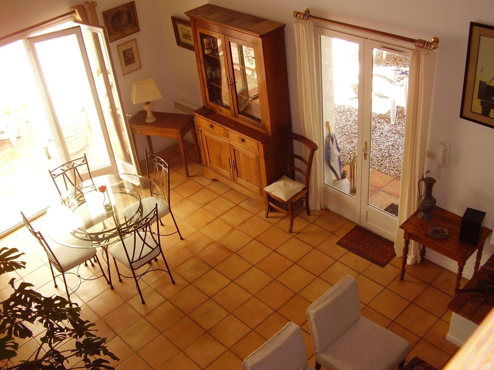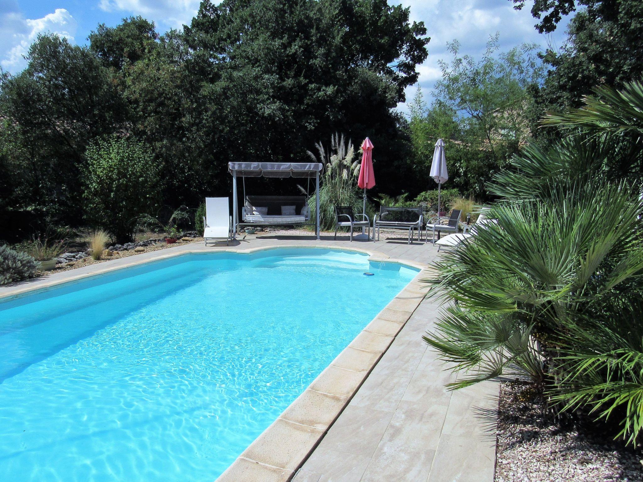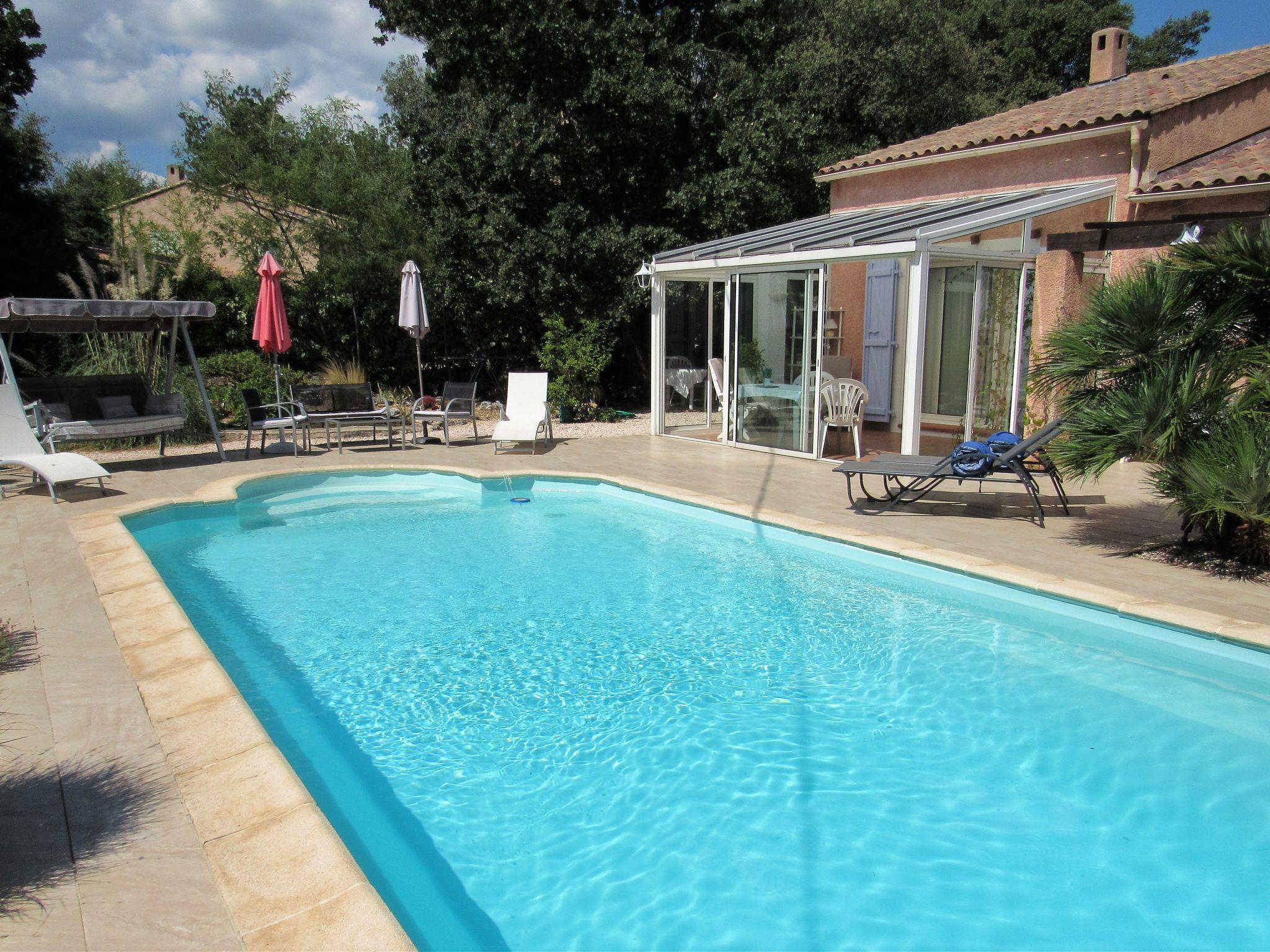 Villa in the countryside with private swimming pool with safety cover (children!!). Situated 1.500 km from the village, very quiet, planted with trees, on 1500 m² of land. 1 master suite with bathroom + cupboard (direct access to terrace and swimming pool); 1 bedroom no. 2 with double bed (possible twin beds); shower room with washbasin, shower and WC; mezzanine with sofa bed for 2 people. Beautiful living area (lounge/living room/fully equipped modern kitchen) with antique furniture. Veranda. Ideal for people who enjoy complete relaxation, greenery and discretion (naturism possible), but with activities and shops nearby. Large Provencal market. Bed linen, towels and household linen provided. Wi-Fi.... The owners reserve the studio and the summer kitchen (on the north/east side) for their occasional personal use, with no view of the villa or terrace.arrival after 3pm / departure max. 10am.languages spoken:French, German and English.