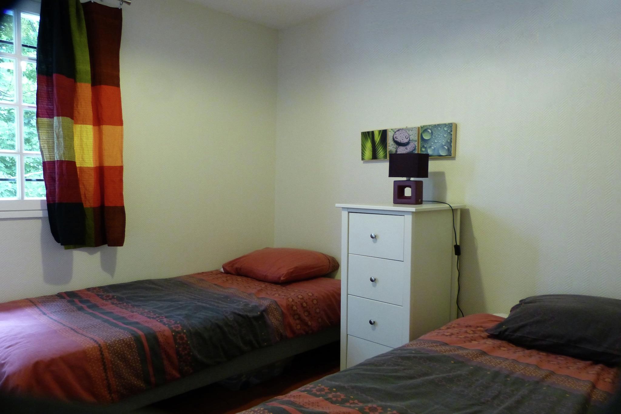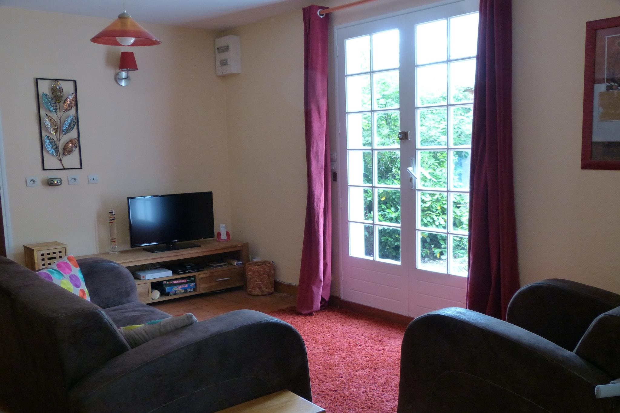 Stueetage: (åbent køkken(komfur(Komfur med fire kogeplader, gas), opvaskemaskine , køle-fryseskab, vaskemaskine), stue / spisestue, soveværelse(dobbeltseng), soveværelse(2x enkeltseng), badeværelse(badekar med bruser, håndvask, toilet)) terrasse(14 m2), have(150 m2), havemøbler, grill(trækul)