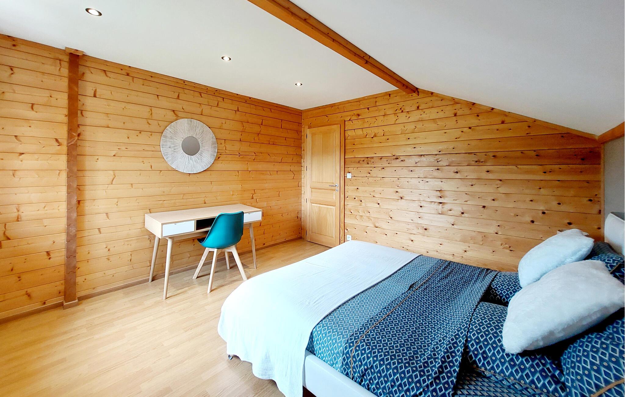 Oplev den varme og indbydende atmosfære i denne træchalet, der ligger ved skovbrynet i de høje Vogeser. Den rustikke charme fra trævæggene og den hyggelige indretning giver jer straks en følelse af tryghed. Store vinduer lukker lyset ind og giver jer udsigt til den maleriske natur. Nyd hyggelige stunder sammen, mens I laver mad i det åbne køkken, eller læg benene op på sofaen.