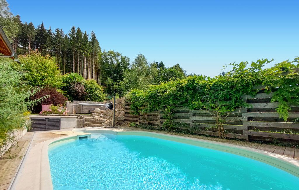 Slap af med jeres familie i denne komfortable chalet med swimmingpool og spabad.