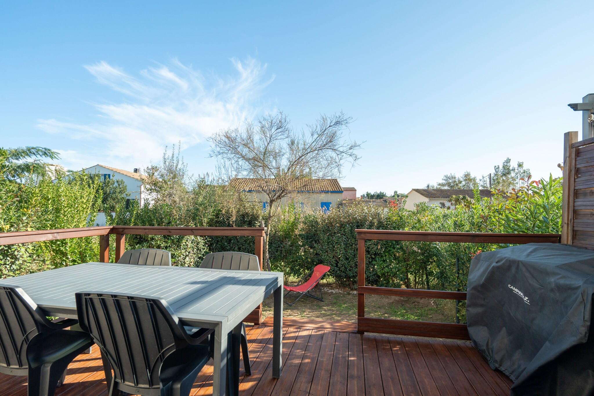 Beliggende i hjertet af Sérignans familievenlige kystzone, tilbyder denne hyggelige 55 m² store villa et fuldt udstyret oase for op til 7 gæster. Med 2 soveværelser og et indbydende layout er det kun 450 meter fra både sandstranden og lokale restauranter og kun 1 km fra det nærmeste supermarked - perfekt til en afslappet ferie ved havet. Villaen har en privat have, udendørs møbler, en solrig terrasse og en grill til udendørs spisning. Gæsterne kan nyde moderne bekvemmeligheder som aircondition, elvarme, tv, hårtørrer og strygejern. En fælles opvarmet swimmingpool og udendørs parkering i samme bygning bidrager til bekvemmeligheden og nydelsen af dit ophold. Indvendigt omfatter det elektriske køkken i åbent plan køleskab, mikroovn, opvaskemaskine, kaffemaskine, brødrister, kedel og alle nødvendige redskaber. Beliggende på Avenue des Pattes Rouges, lejlighed 25, kombinerer denne villa i stueetagen komfort, beliggenhed og charme - din ideelle base for at udforske skønheden i Languedoc-Roussillon.