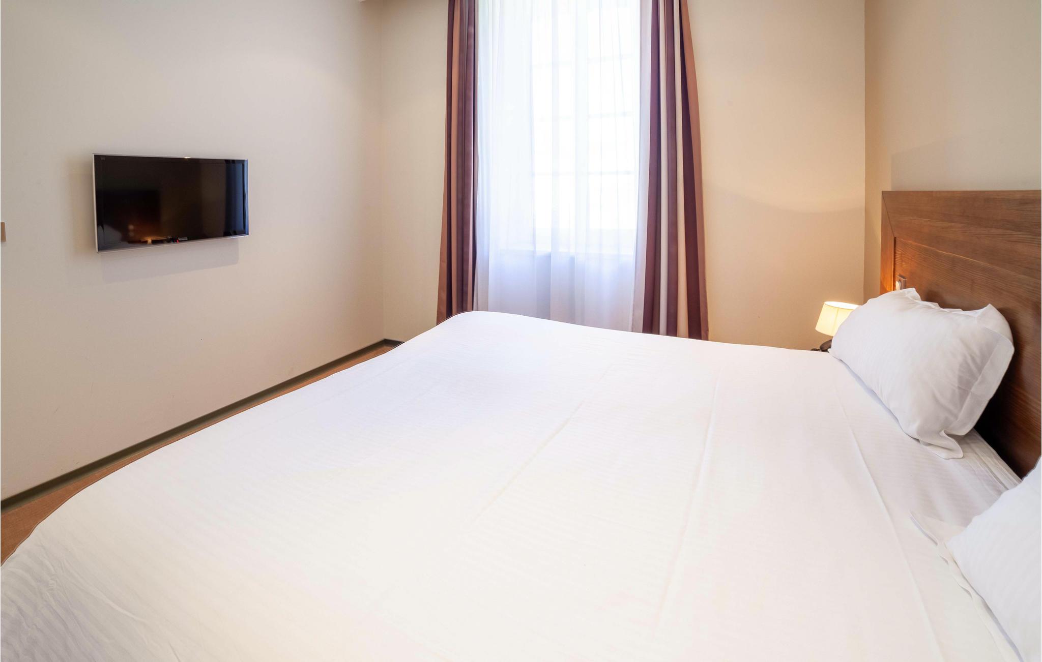 Den indbydende lejlighed er det perfekte sted til en afslappende pause for to. Så snart I træder ind i de lyse værelser med moderne og komfortabel indretning, vil I føle jer hjemme. Nyd en fantastisk udsigt over landskabet. Styrk jer selv med en lækker morgenmad, og I er klar til dagen! Efter en lang dag på farten kan I slappe af i saunaen, som deles med andre gæster, træne i fitnessrummet og senere læne jer tilbage i sofaen og snakke længe.