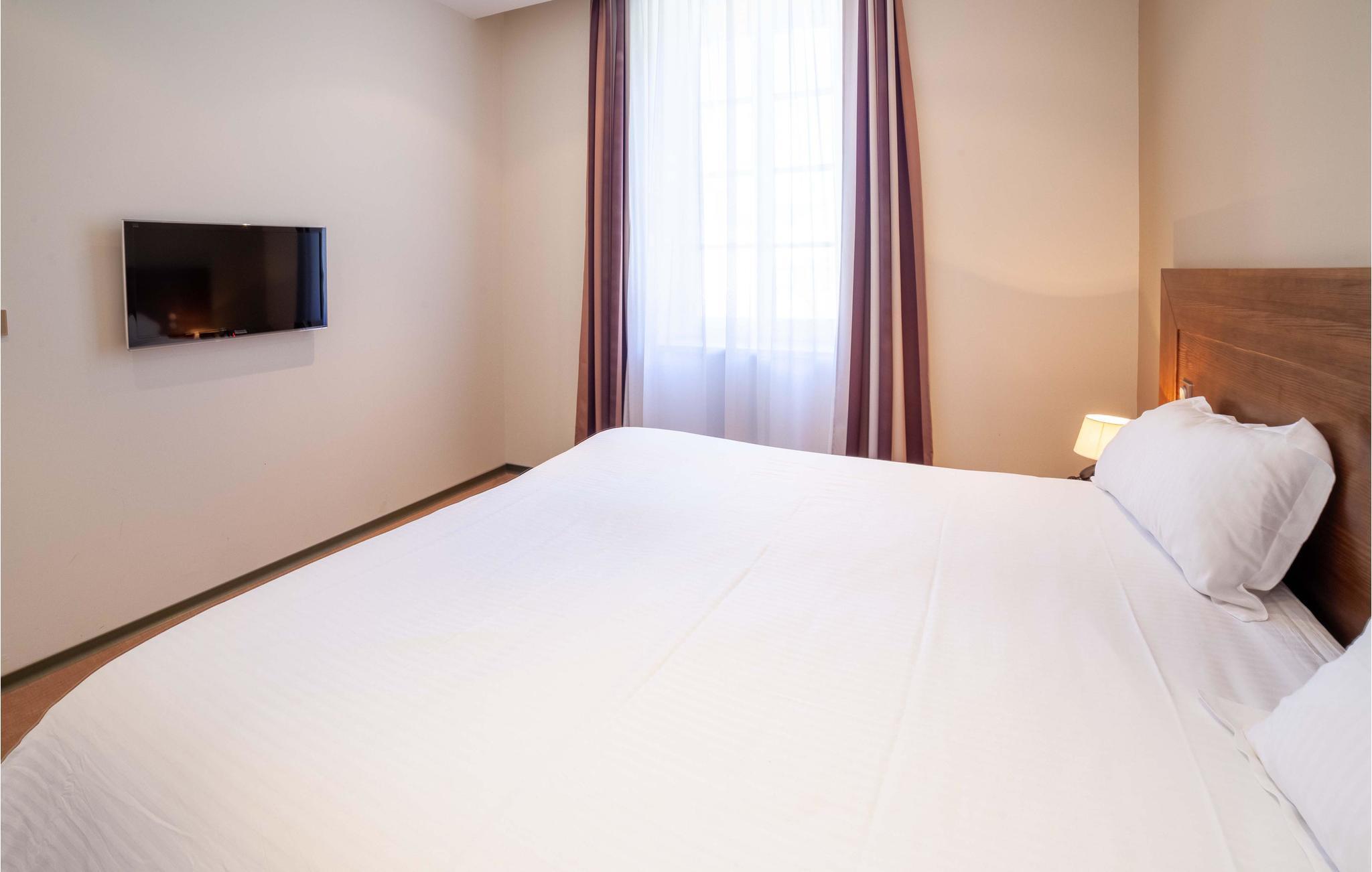 Den indbydende lejlighed er det perfekte sted til en afslappende pause for to. Så snart I træder ind i de lyse værelser med moderne og komfortabel indretning, vil I føle jer hjemme. Nyd en fantastisk udsigt over landskabet. Styrk jer selv med en lækker morgenmad, og I er klar til dagen! Efter en lang dag på farten kan I slappe af i saunaen, som deles med andre gæster, træne i fitnessrummet og senere læne jer tilbage i sofaen og snakke længe.