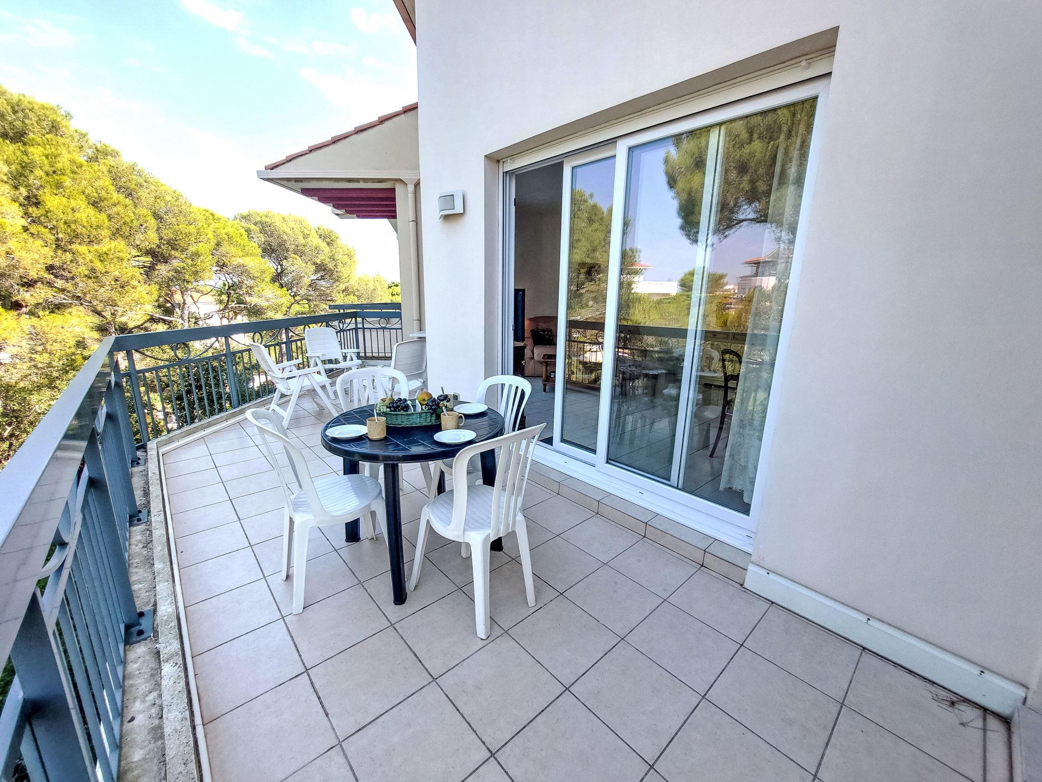 2-room apartment 48 m2 on 4th floor, north facing position. Spacious, comfortable furnishings: living/dining room with 1 double sofabed (1 x 140 cm, length 190 cm), TV (flat screen), air conditioning and electric shutters. Exit to the terrace. 1 room with Dressing room with 1 french bed (1 x 160 cm, length 200 cm), air conditioning. Kitchen (mini-oven, dishwasher, 4 induction hot plates, toaster, kettle, microwave, freezer, electric coffee machine, Capsules for coffee machine (DOLCE GUSTO) extra). Exit to the terrace. Bathroom, sep. WC. Heating. Balcony 17 m2, north facing position. Balcony furniture. Distant view of the sea and the swimming pool. Facilities: washing machine, iron, hair dryer. Internet (WiFi, extra). Parking (roofed, 1 car). Please note: 1 small pet/ dog allowed. TV only FR. Smoke alarm. Offer by a private individual according to Art. 155, IV of CGI. HXU3WG