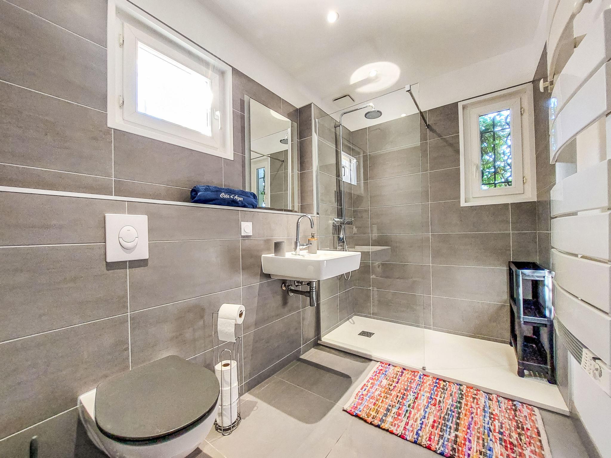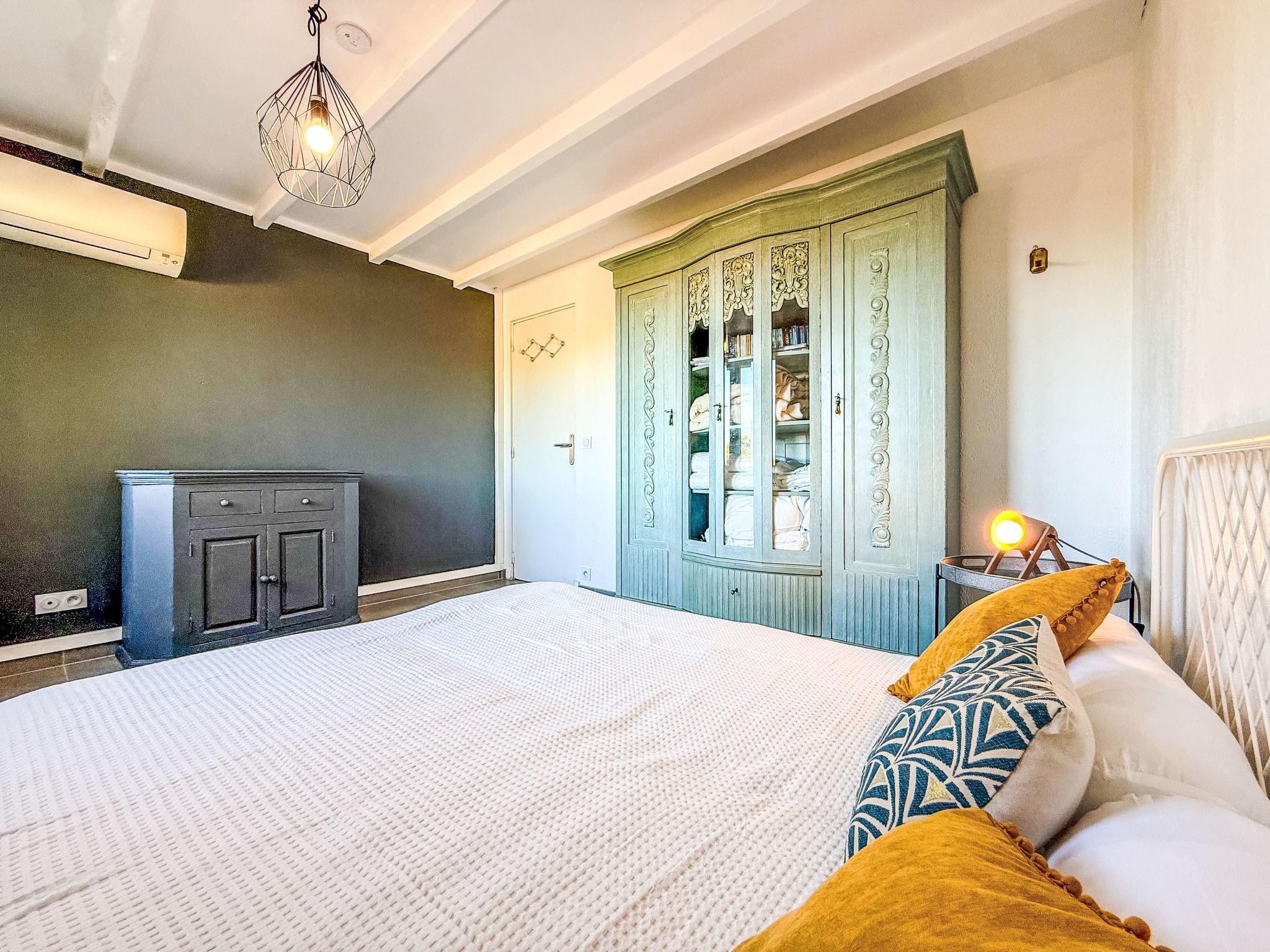3-room house 60 m2. Living/dining room with open-hearth fireplace (only for decoration), TV, flat screen and air conditioning. Exit to the terrace. 1 room with 1 french bed (1 x 140 cm, length 190 cm), air conditioning. 1 children's room with 1 pull-out bed (2 pers. 2 x 80 cm, length 190 cm). Open kitchen (mini-oven, dishwasher, 4 induction hot plates, toaster, kettle, freezer, electric coffee machine). Shower/WC, sep. WC. Electric heating. Large terrace. Terrace furniture. Facilities: washing machine, iron, hair dryer. Internet (WiFi, free). Parking. Please note: smoke alarm. Offer by a private individual according to Art. 155, IV of CGI. 9TTRMJ
