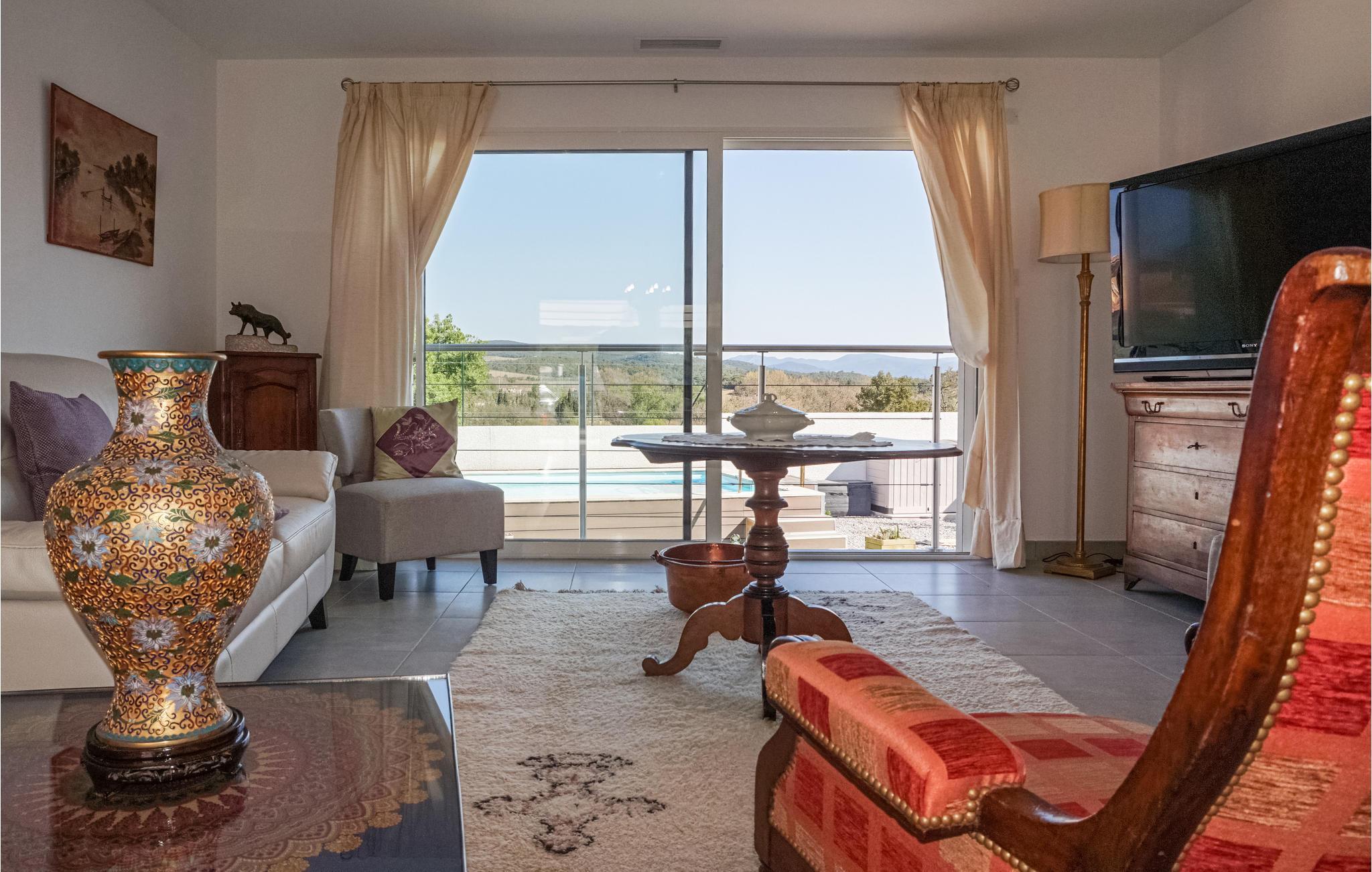 Nyd en afslappende ferie i denne moderne villa med pool og smuk udsigt til bjergene.