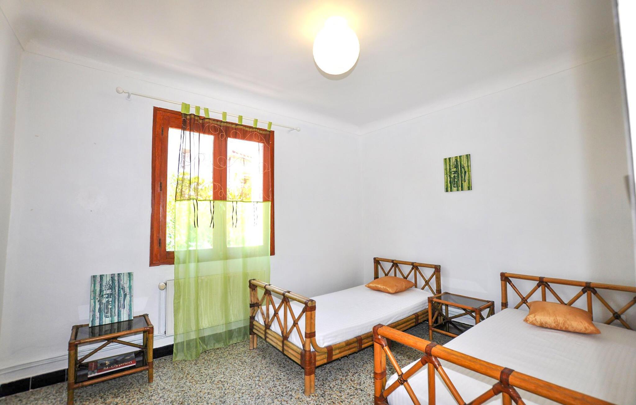 Læg hverdagen bag jer og slap af i denne charmerende ferielejlighed nær stranden. Dette traditionelt indrettede feriehus byder jer velkommen kun få skridt fra stranden og giver jer mulighed for at kombinere en solrig ferie ved Middelhavskysten med charmerende udflugter i baglandet. Tilbered jeres yndlingsretter her, planlæg jeres aktiviteter over et glas vin, og afslut en lang dag med et brætspil eller en god bog. På jeres hyggelige terrasse kan I nyde en afslappet morgenmad i skyggen af frodige grønne områder. Tænd grillen og snak om middelhavsretter i den varme sommernat. Tag lange gåture langs stranden eller solbad på de brede sandstrande, slentr gennem den livlige lystbådehavn med dens restauranter og butikker, eller besøg det farverige ugentlige marked. Besøg charmerende Collioure med dens kunstnergallerier, oplev den befæstede by Villefranche-de-Conflent, nyd den panoramiske tur med Train Jaune gennem Pyrenæerne og udforsk Perpignan på en dagstur.