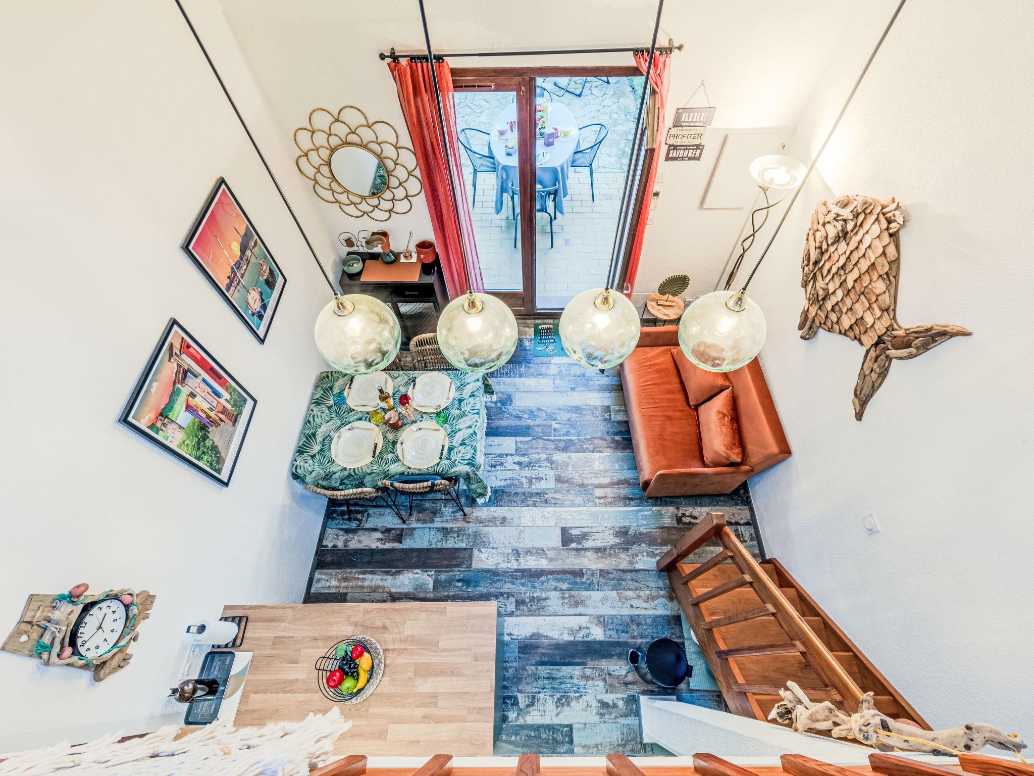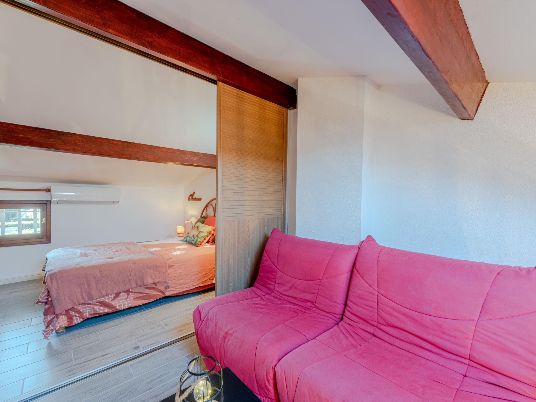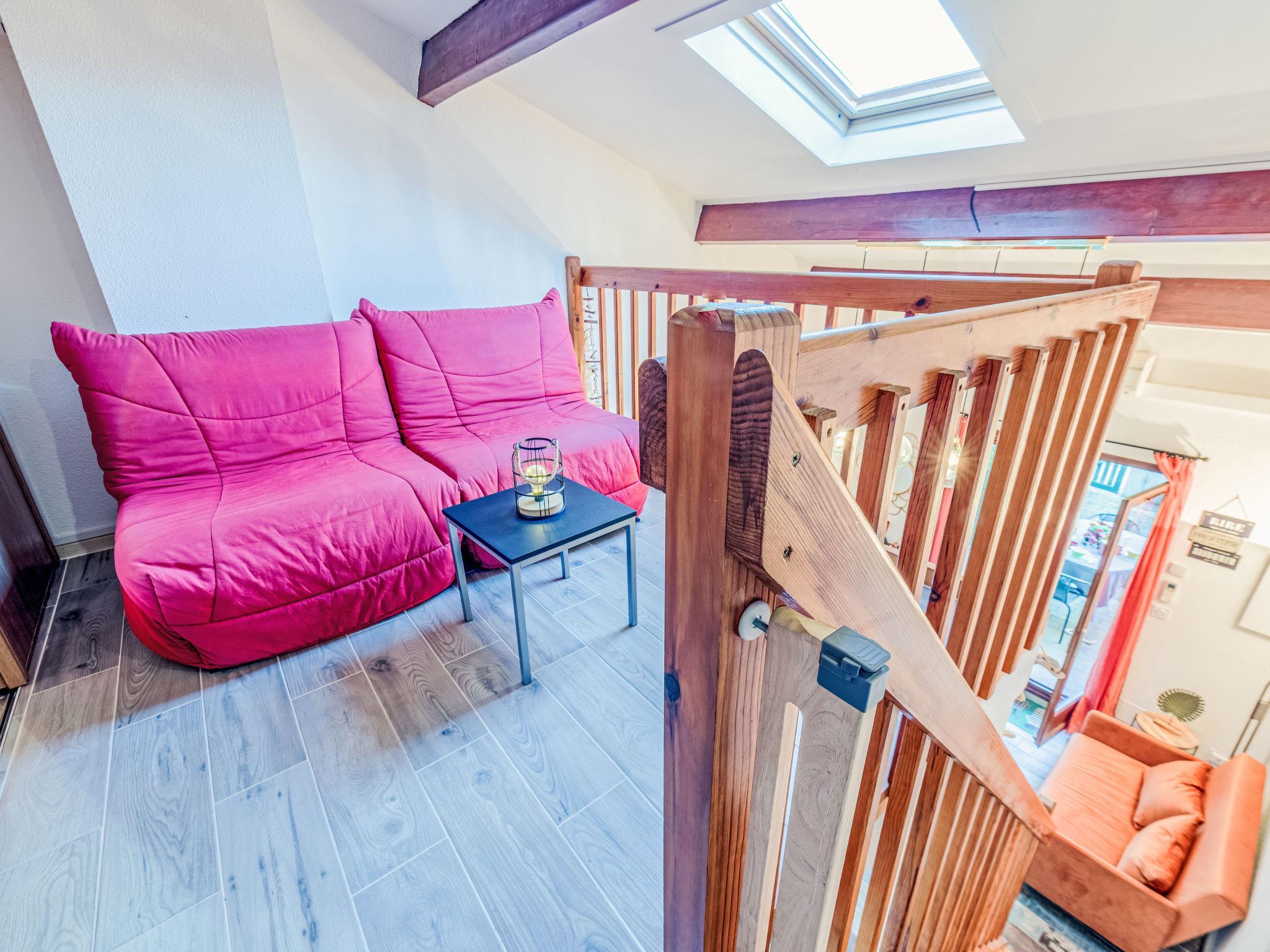 2-room terraced house 40 m2 on 2 levels. Beautiful furnishings: living/dining room with TV and air conditioning. Exit to the terrace. 1 room with 1 french bed (140 cm, length 190 cm). Exit to the terrace. Kitchenette (dishwasher, 2 ceramic glass hob hotplates, toaster, kettle, microwave, freezer, electric coffee machine, Capsules for coffee machine (Senseo) extra). Shower, sep. WC. Upper floor: gallery with sloping ceilings, ceiling height 165 - 216 cm. 1 room with sliding door with 1 french bed (140 cm, length 190 cm), air conditioning. Terrace 40 m2. Terrace furniture, electric barbecue. Facilities: washing machine. Internet (WiFi, extra). Parking. Please note: smoke alarm. Offer by a private individual according to Art. 155, IV of CGI.