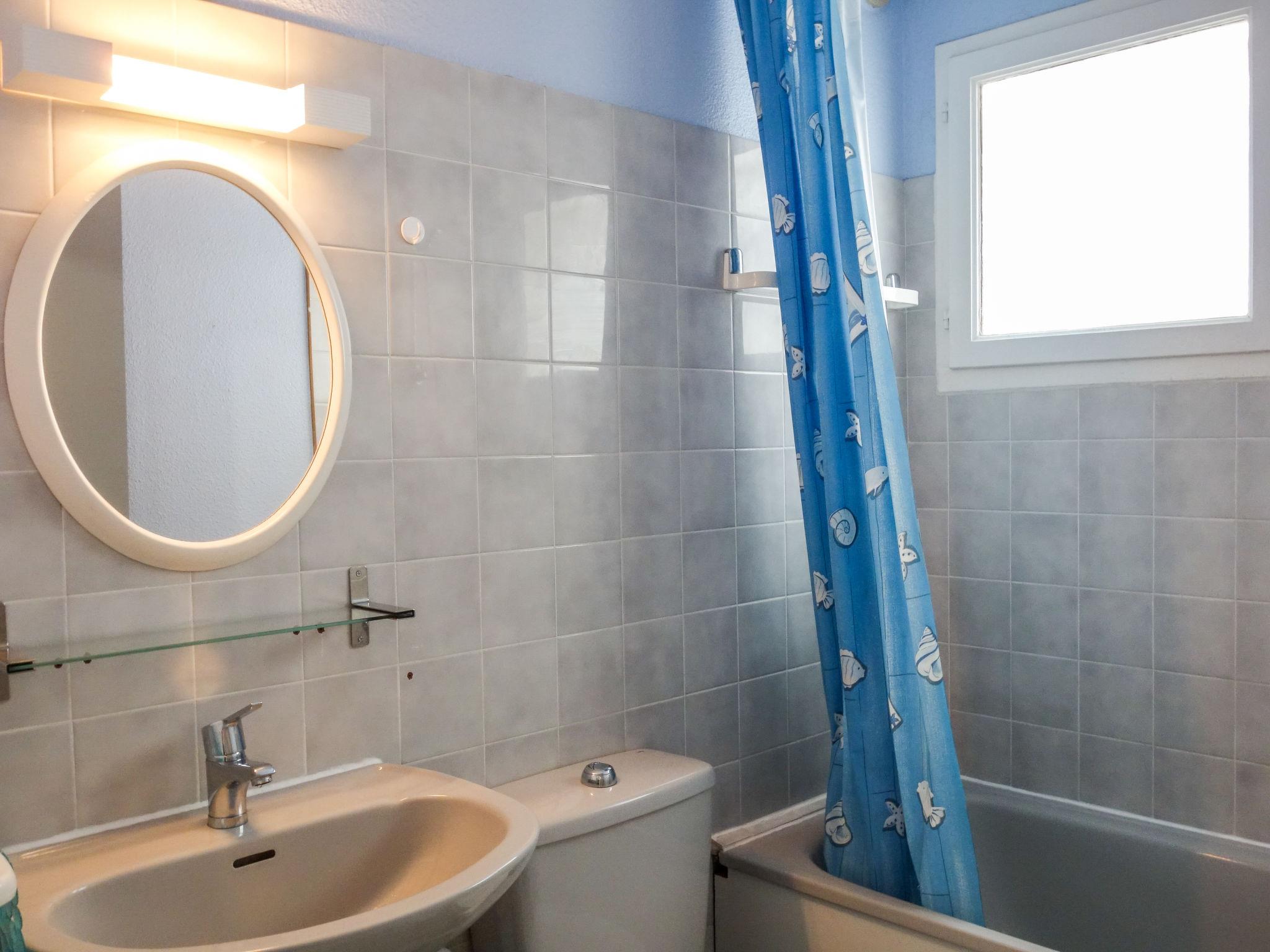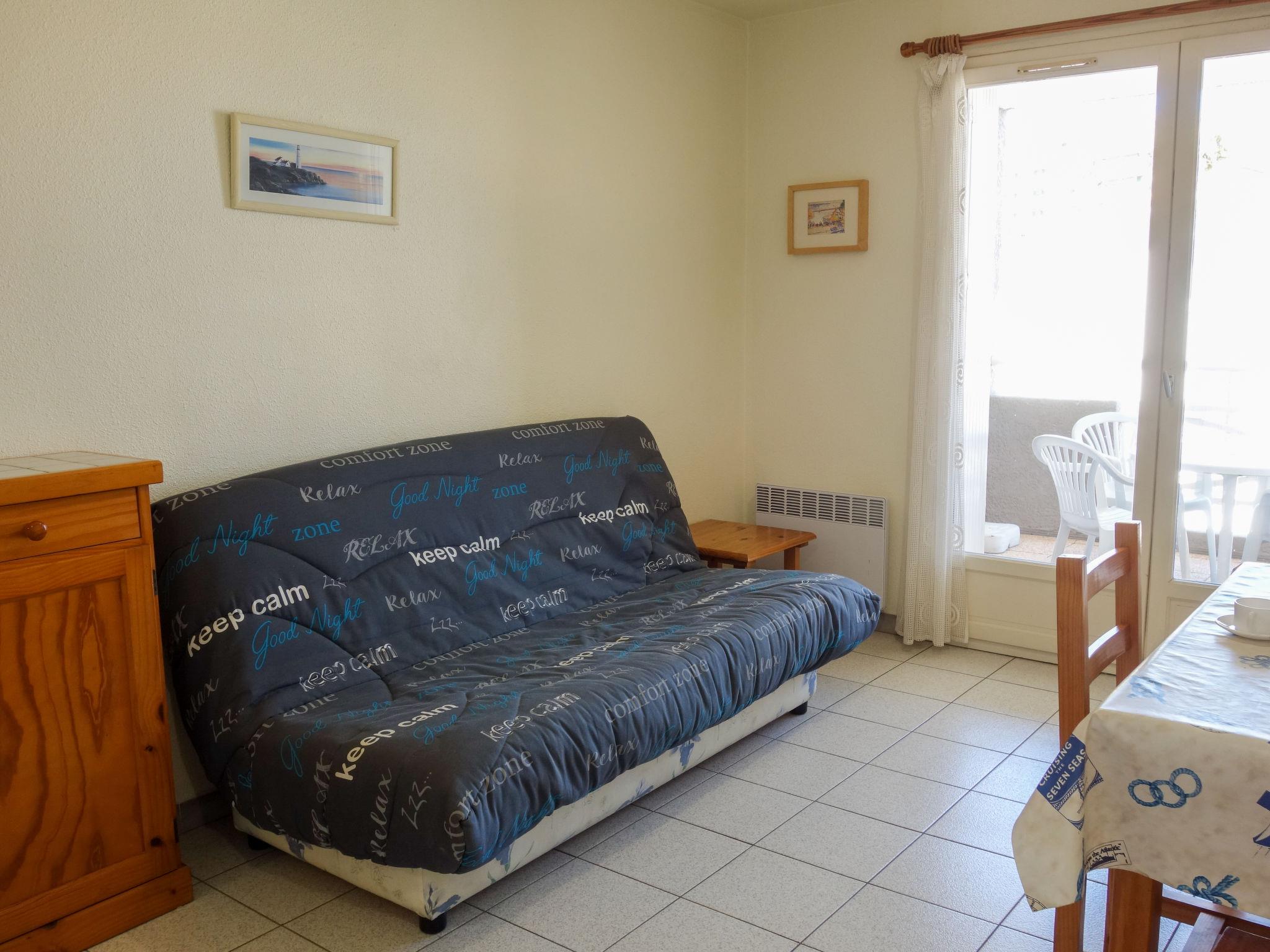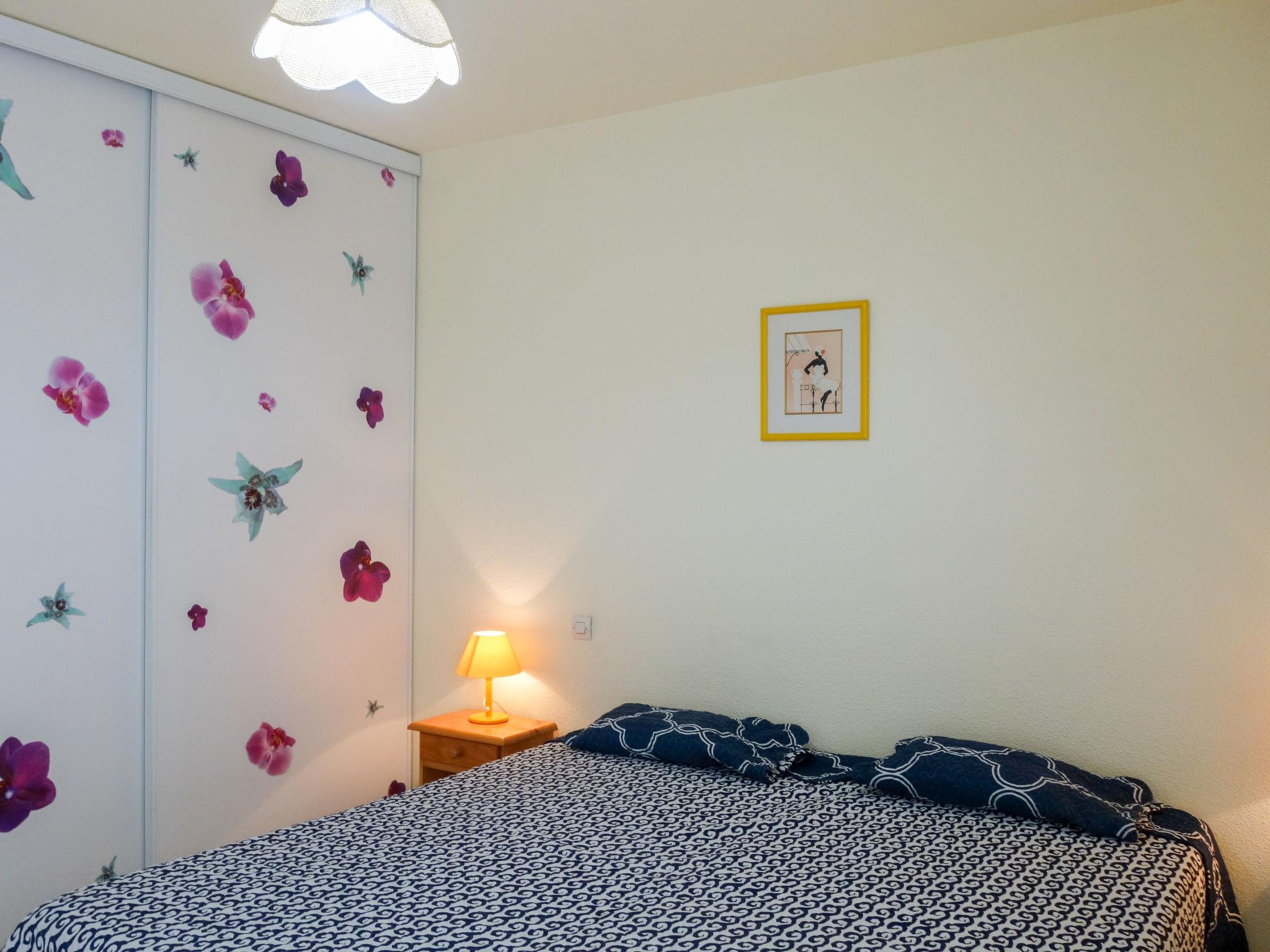 2-room apartment 35 m2 on 1st floor. Living/dining room with 1 double sofabed and TV (flat screen), air conditioning. Exit to the terrace. 1 room with 1 french bed (140 cm, length 190 cm). Kitchenette (2 hot plates, mini-oven, dishwasher, microwave, freezer, electric coffee machine). Bath/WC. Terrace 10 m2, roofed, east facing position. Terrace furniture. View of the swimming pool. Facilities: washing machine, baby cot. Internet (WiFi, extra). Parking space n 103 intérieur. Please note: maximum 1 pet/ dog allowed. Smoke alarm.
