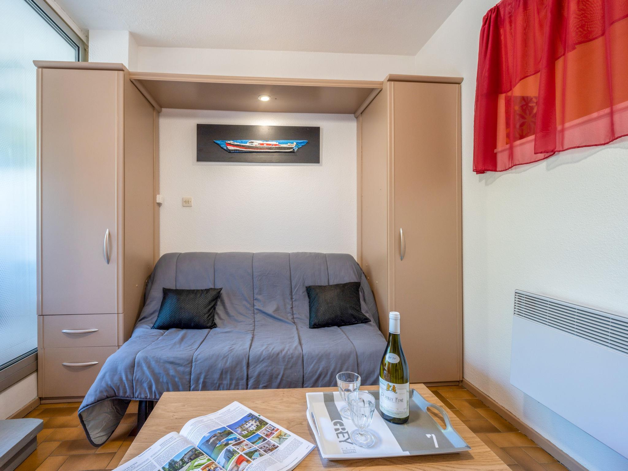 1-room studio 22 m2 on 1st floor. Living/dining room with 1 double sofabed (140 cm, length 190 cm), TV (flat screen). Exit to the loggia. Alcove with 1 bed (120 cm, length 190 cm). Kitchenette (2 hot plates, mini-oven, microwave, electric coffee machine). Shower/WC. Covered balcony. Facilities: washing machine. Internet (WiFi, extra). Parking (fenced) at 200 m. Please note: smoke alarm. Instead of an enclosed bedroom, some sleeping areas are located in an open-plan area (gallery, alcove, etc.).