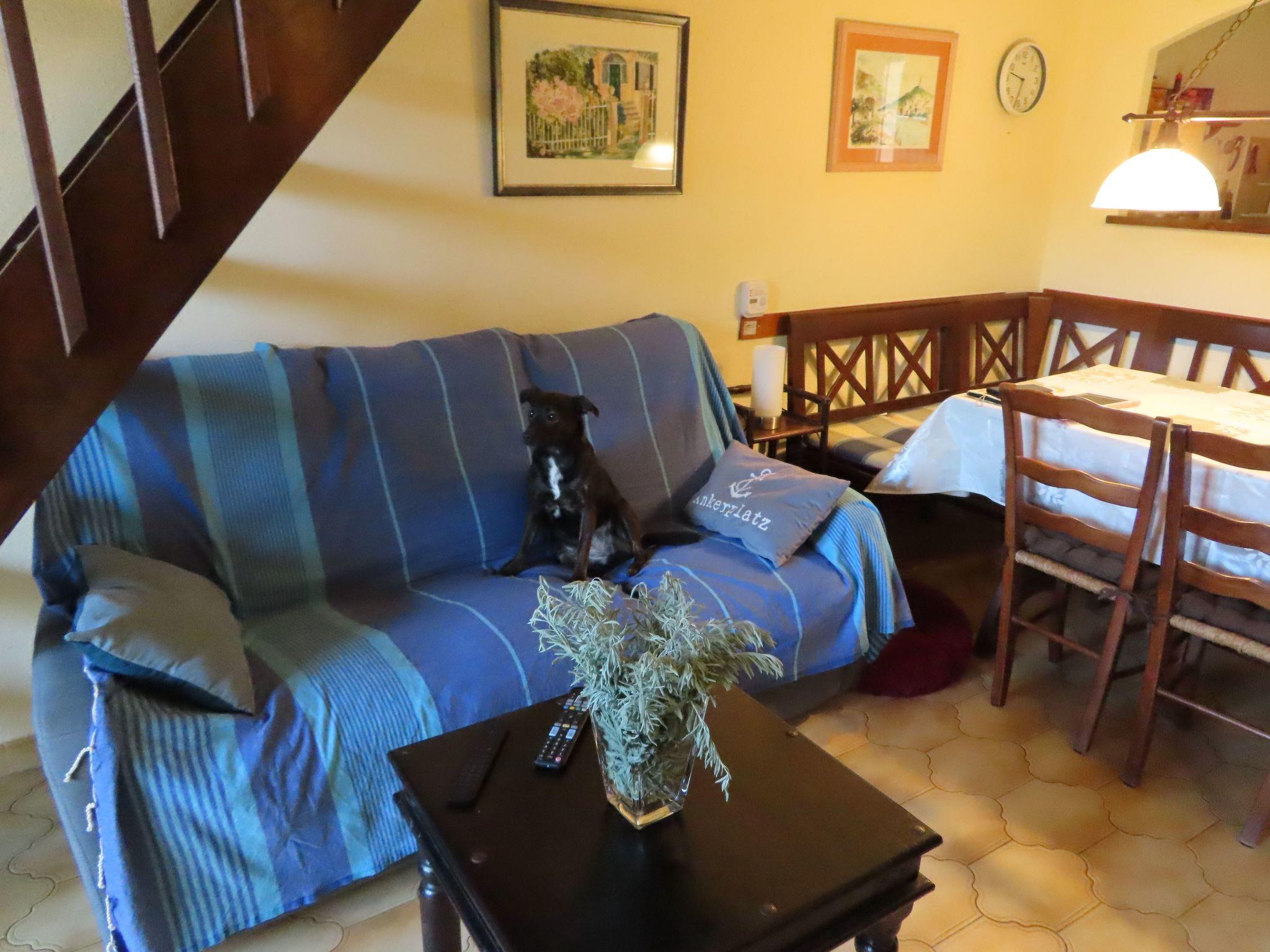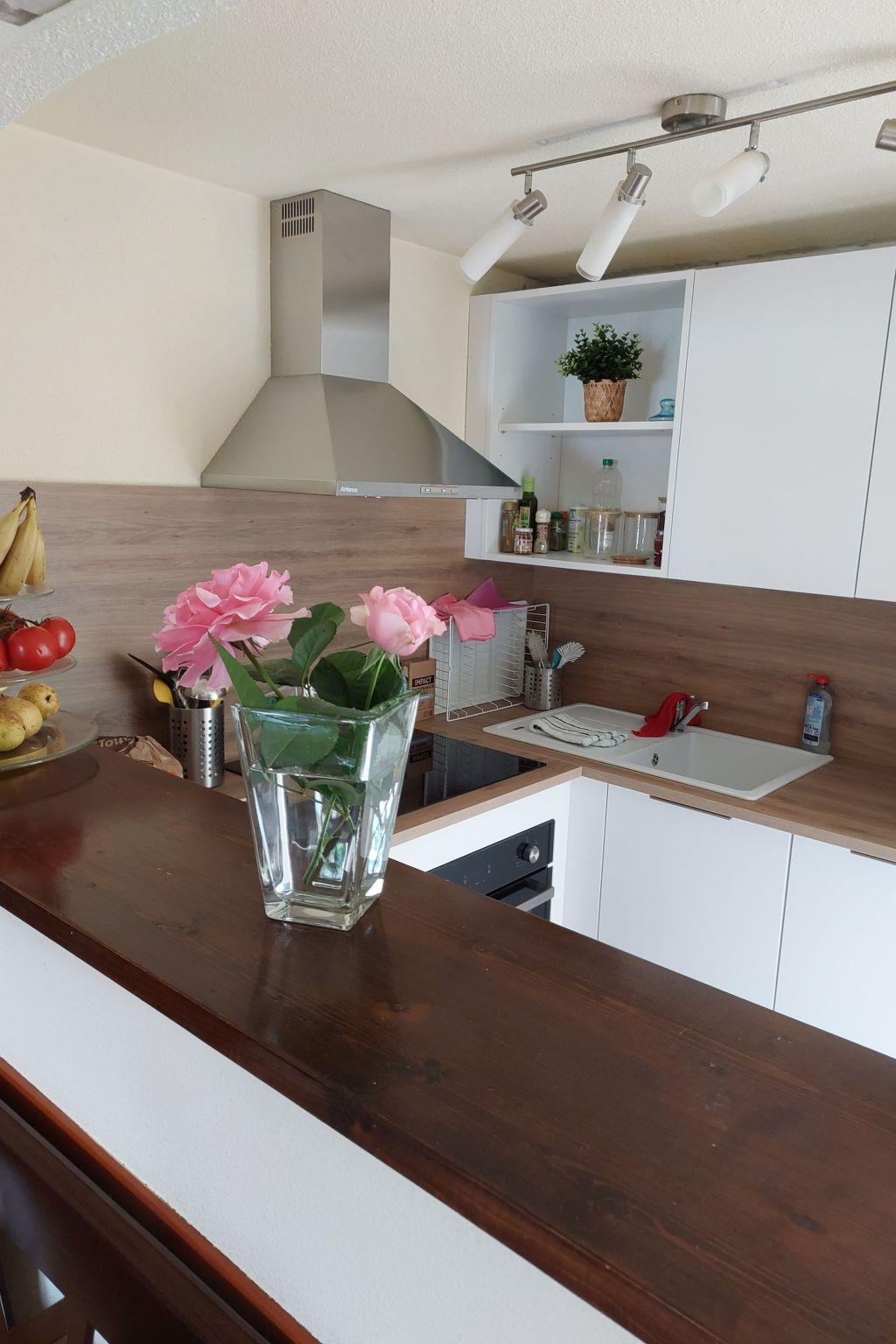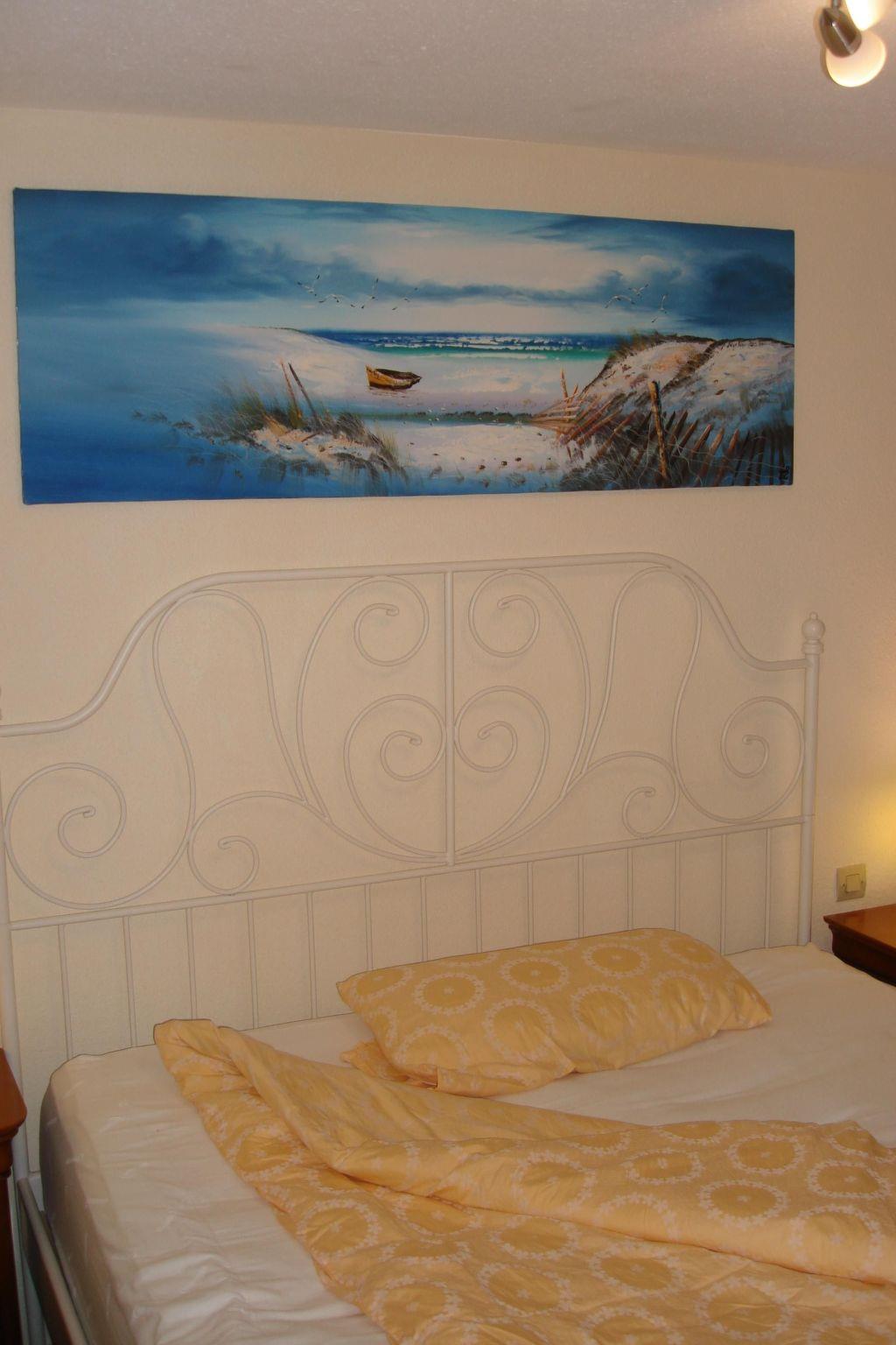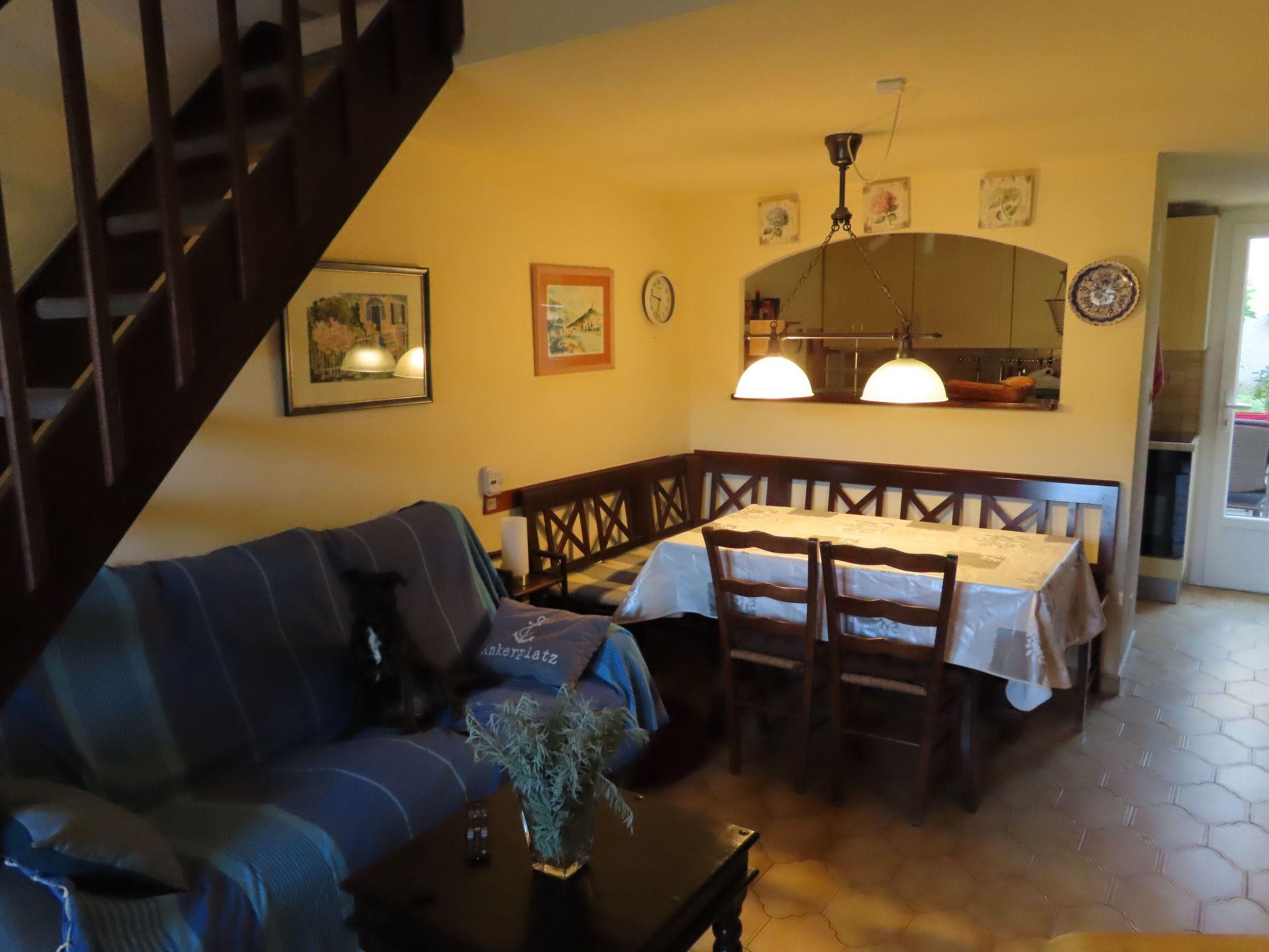 The 68 m² terraced house is cosily furnished and has 3 bedrooms, one with a double bed (1.80 m wide), one with a king-size bed (1.60 m wide) and one with two single beds (0.90 m wide). The comfortable kitchen is equipped with an oven, a large fridge with freezer compartment, a filter coffee machine, a Nespresso machine, a cooker, a dishwasher, a toaster, a kettle and an espresso pot. The semi-open kitchen adjoins the living/dining area with a bench and chairs, as well as a sofa and armchair, satellite TV (Astra) and Internet TV (Orange), a music system, a telephone and a fan. The bathroom, renovated in 2016, is equipped with a large shower, a washbasin and a hairdryer. The toilet is located in the guest WC. There are electric Heinz radiators in all rooms. WLAN (450 MBit) is available in all rooms and can be used free of charge.