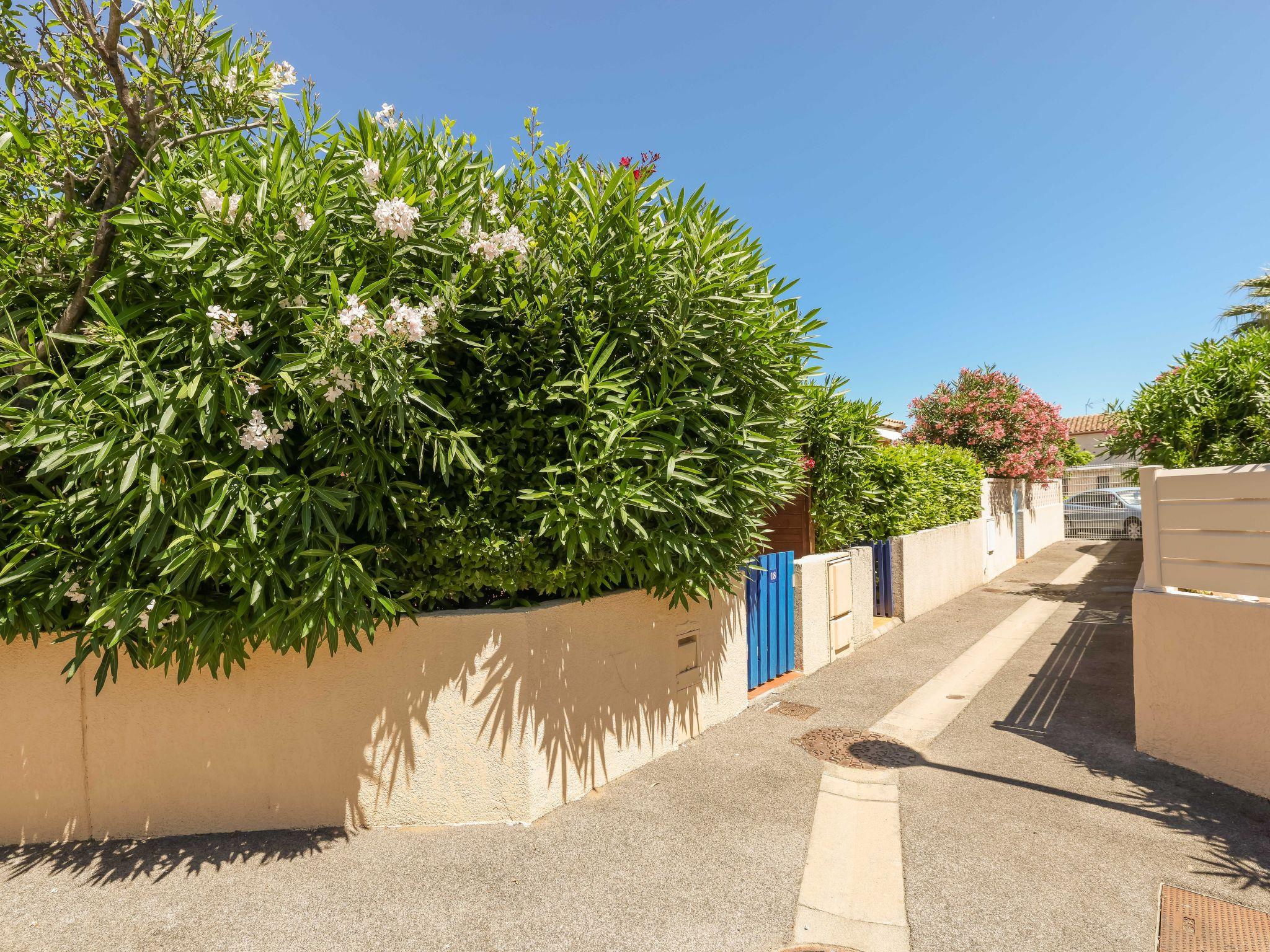 Residence "Les mas Bleus". In the district of Les Capellans, 1 km from the sea, 1 km from the beach. For shared use: swimming pool (depth 65 - 130 cm, seasonal availability: 01.Jul. - 31.Aug.). Shop 450 m, supermarket 1 km, restaurant, bus stop 450 m, railway station "Elne" 7 km, sandy beach "Plage du pont tournant" 1 km. Sports harbour 1.7 km, golf course (27 hole) 4.5 km, sailing school 1.2 km, minigolf 3.5 km, riding stable 1.6 km, sports centre 1 km. Nearby attractions: Aqualand 2.3 km, Centre Commercial 400 m.